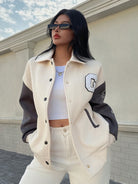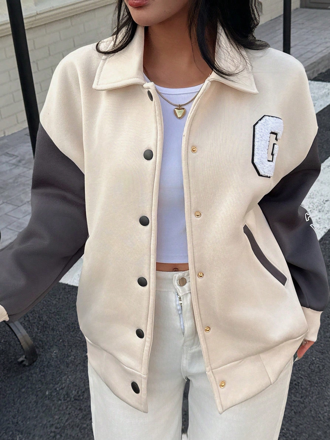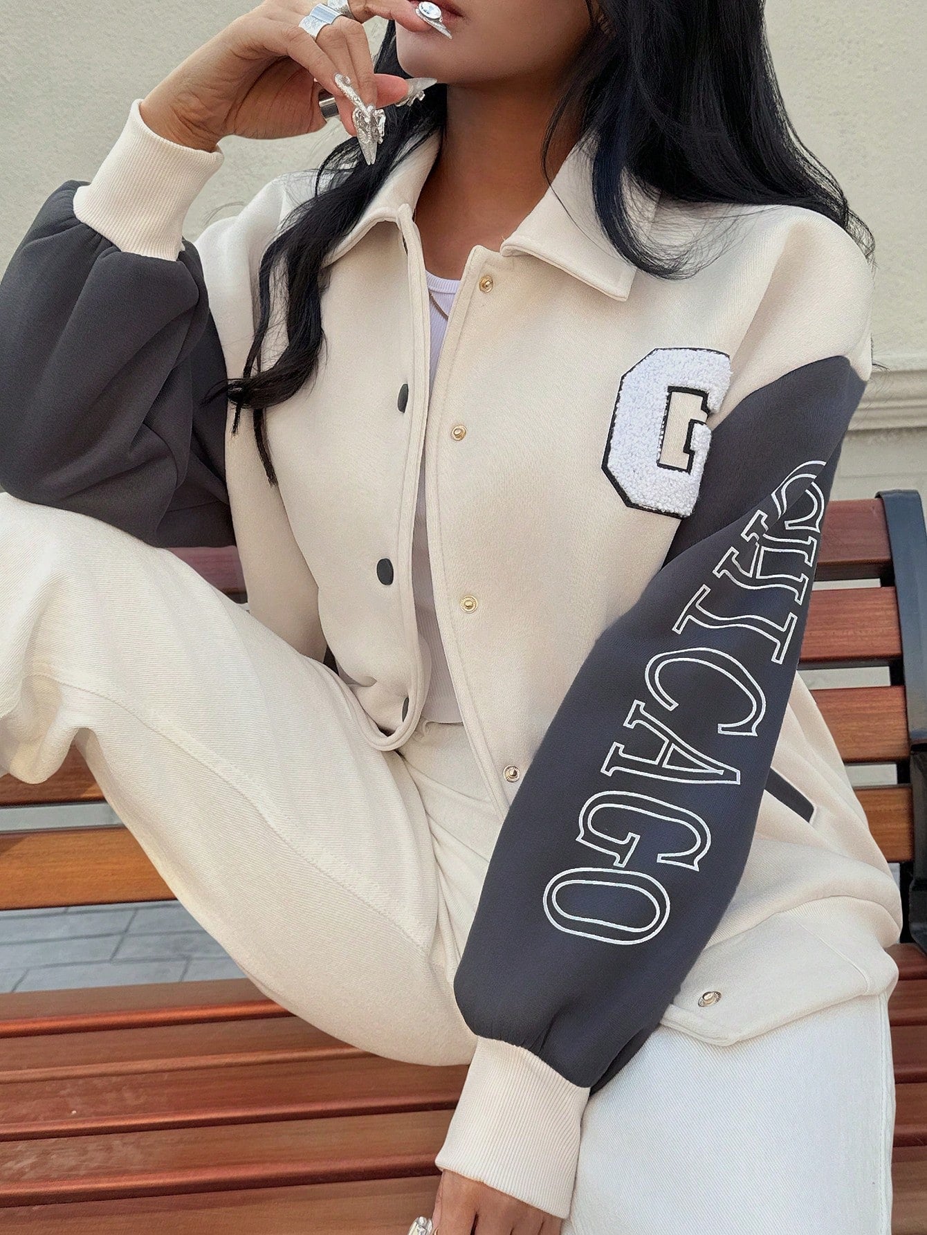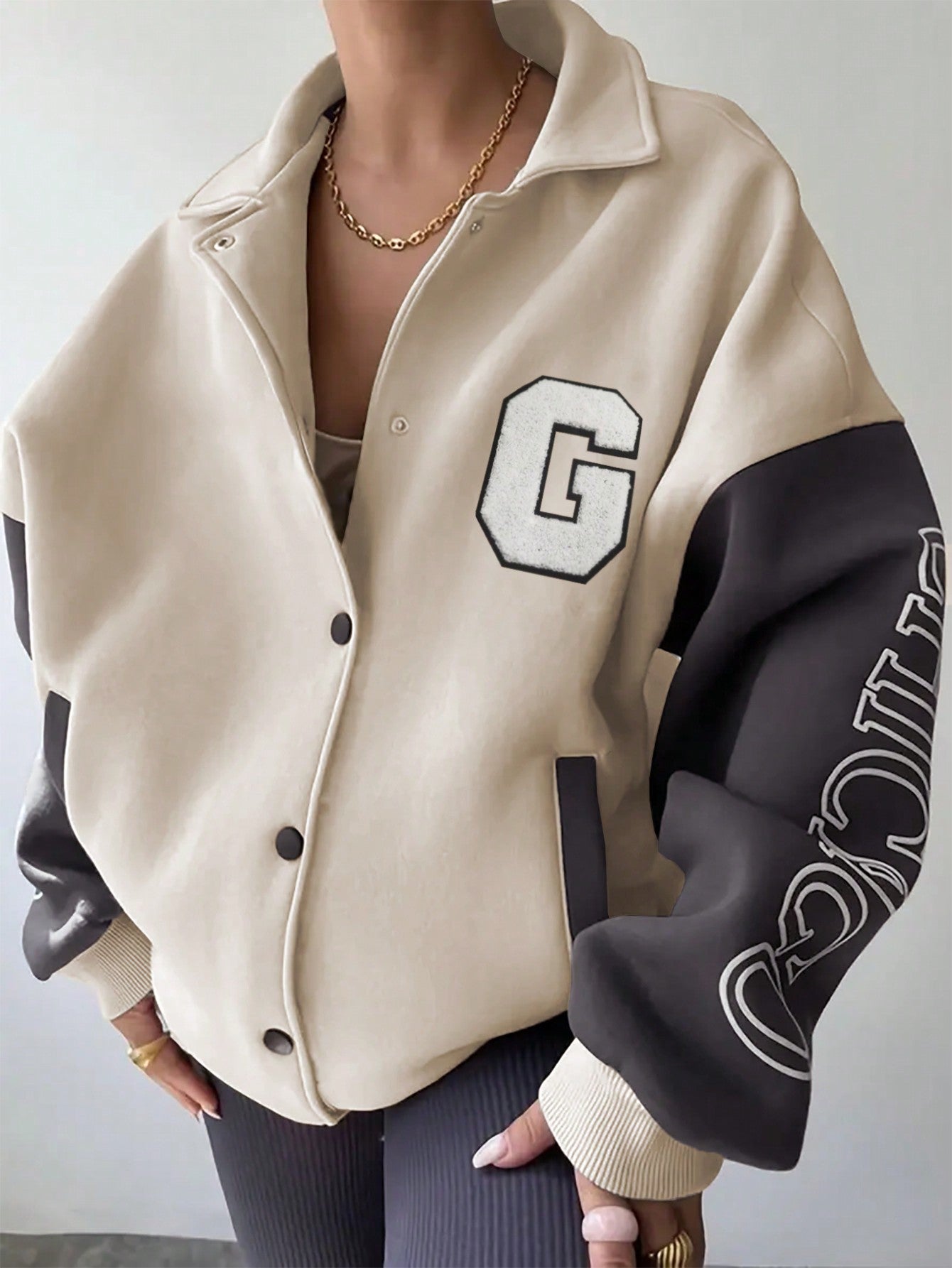 women INAWLY Women's Casual Long Sleeve Letter Print Single-Breasted Jacket