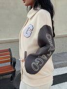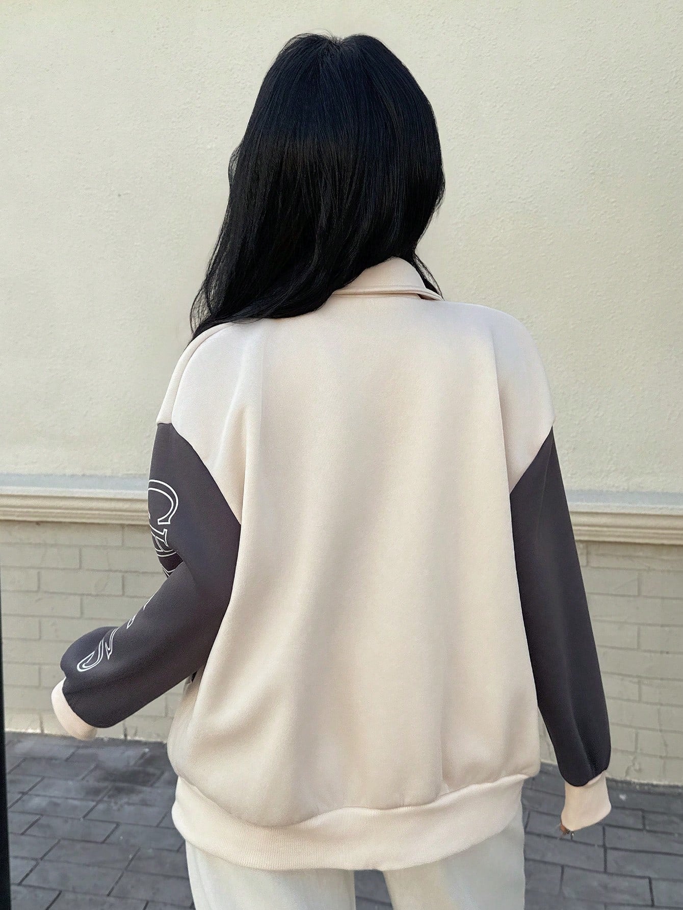 سترة نسائية كاجوال بأكمام طويلة وطبعة حروف وصدر واحد من INAWLY