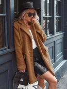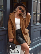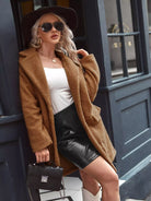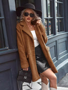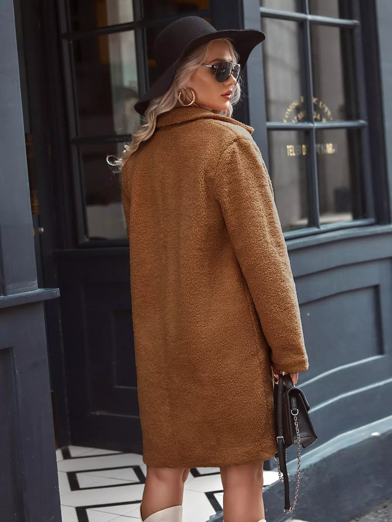 معطف تيدي مع ياقة طية صدر السترة وأزرار أمامية