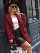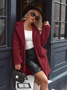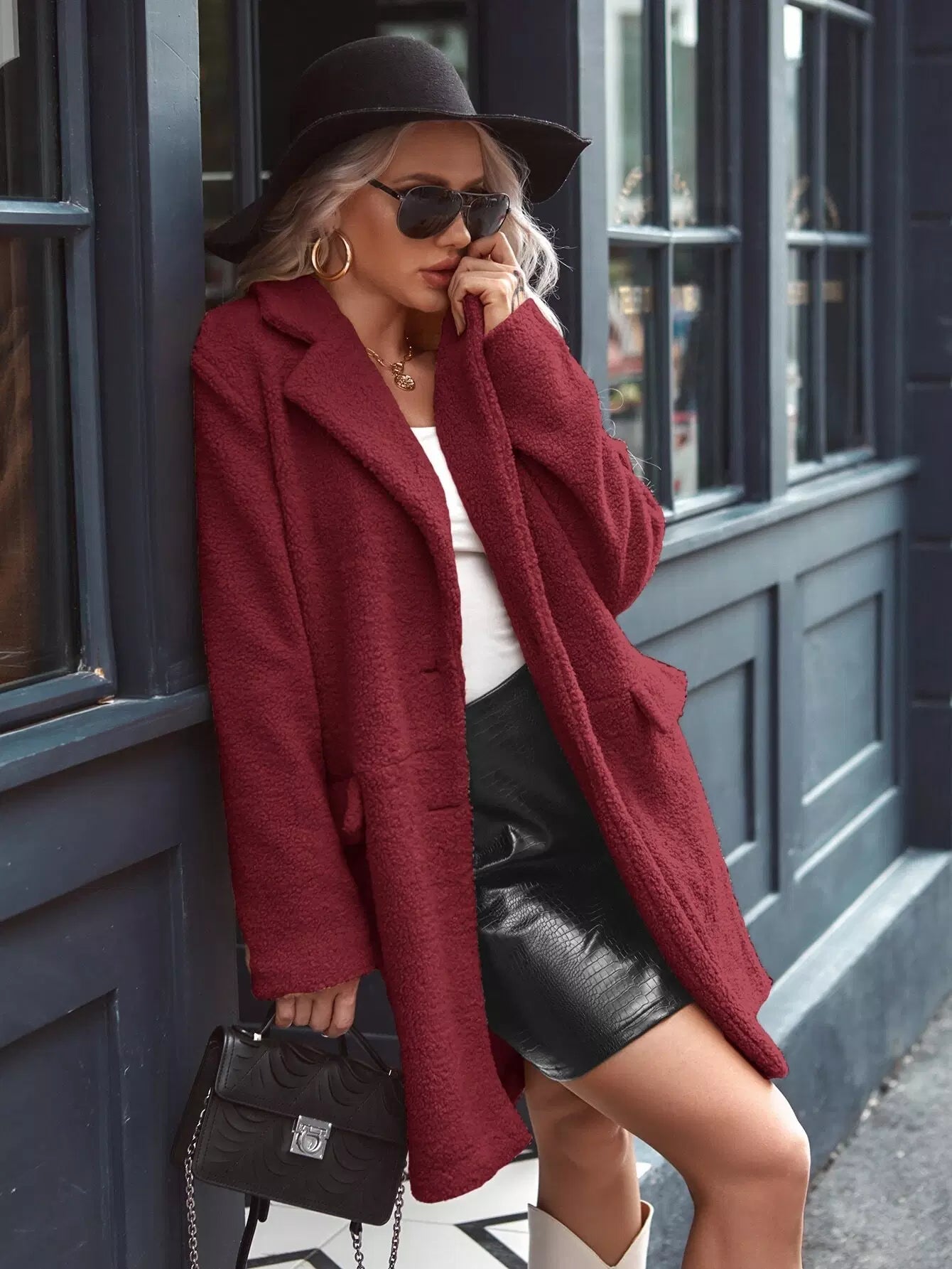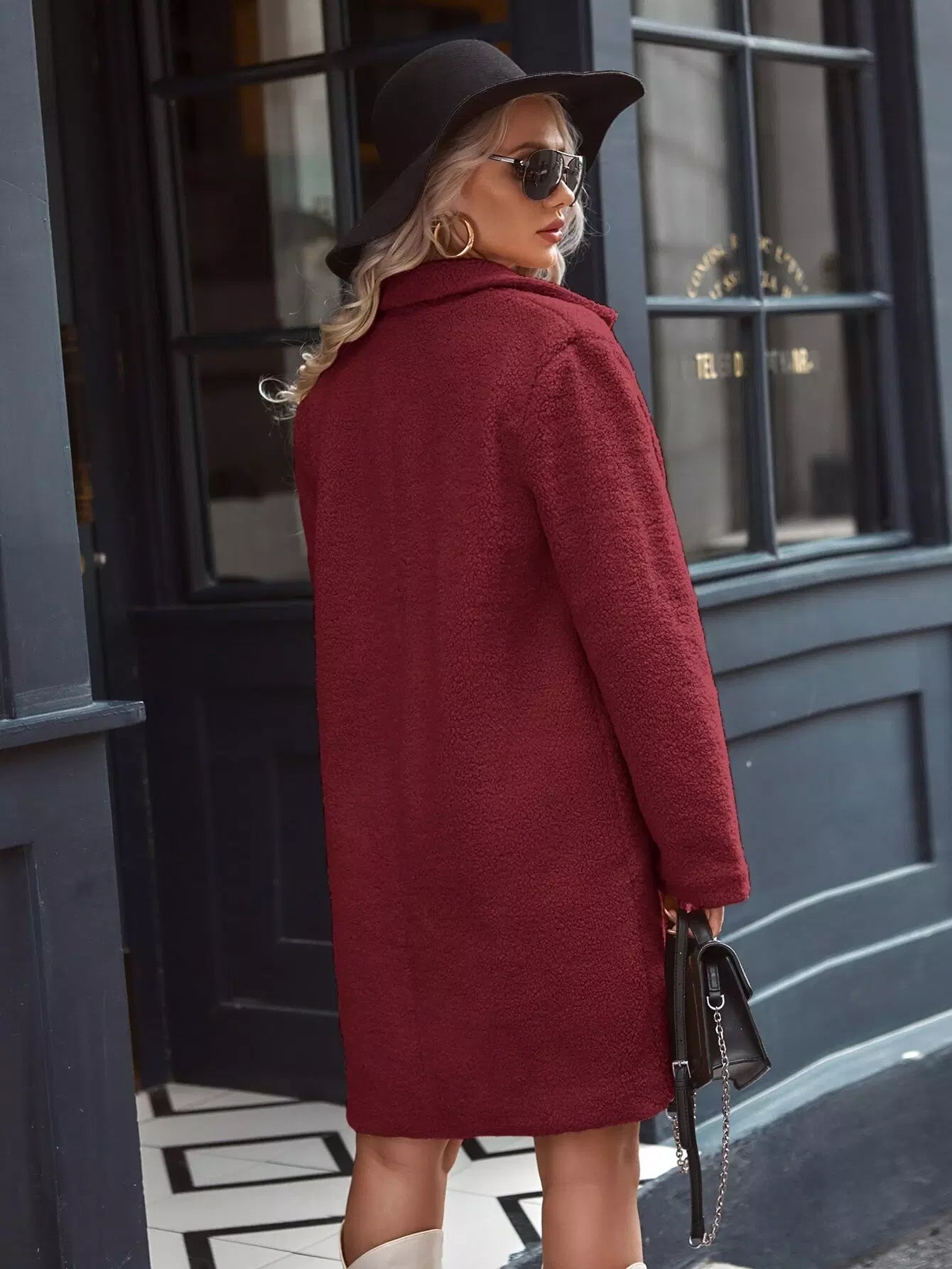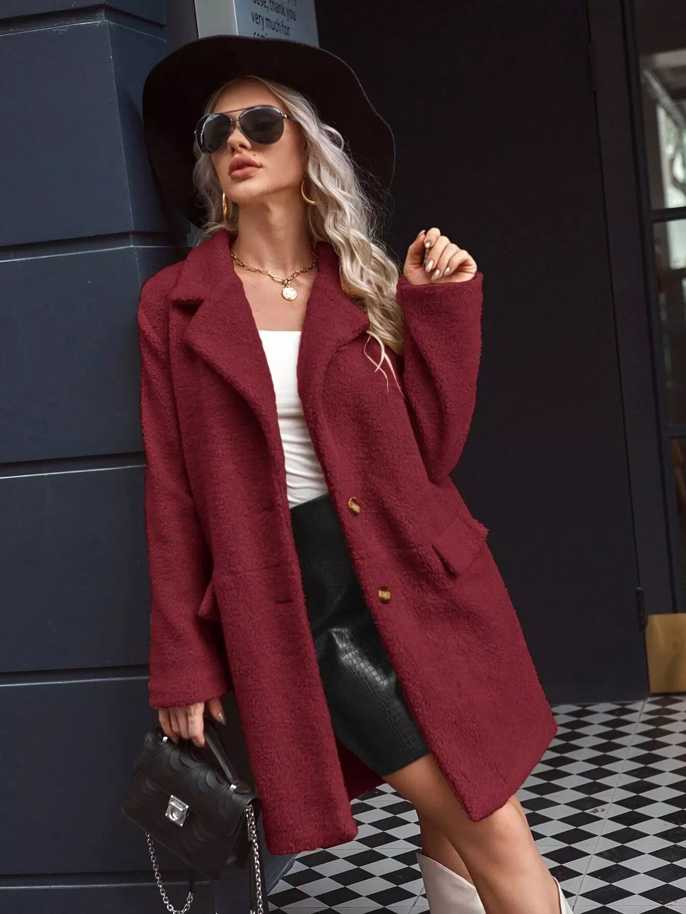 للنساء - معطف تيدي بياقة طية صدر السترة وأزرار أمامية