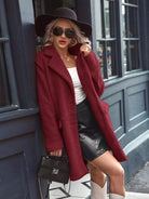 معطف تيدي بياقة على الياقة وأزرار أمامية