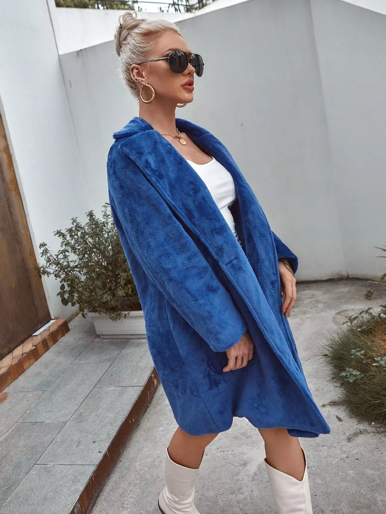 معطف تيدي بياقة على الياقة وأزرار مزدوجة