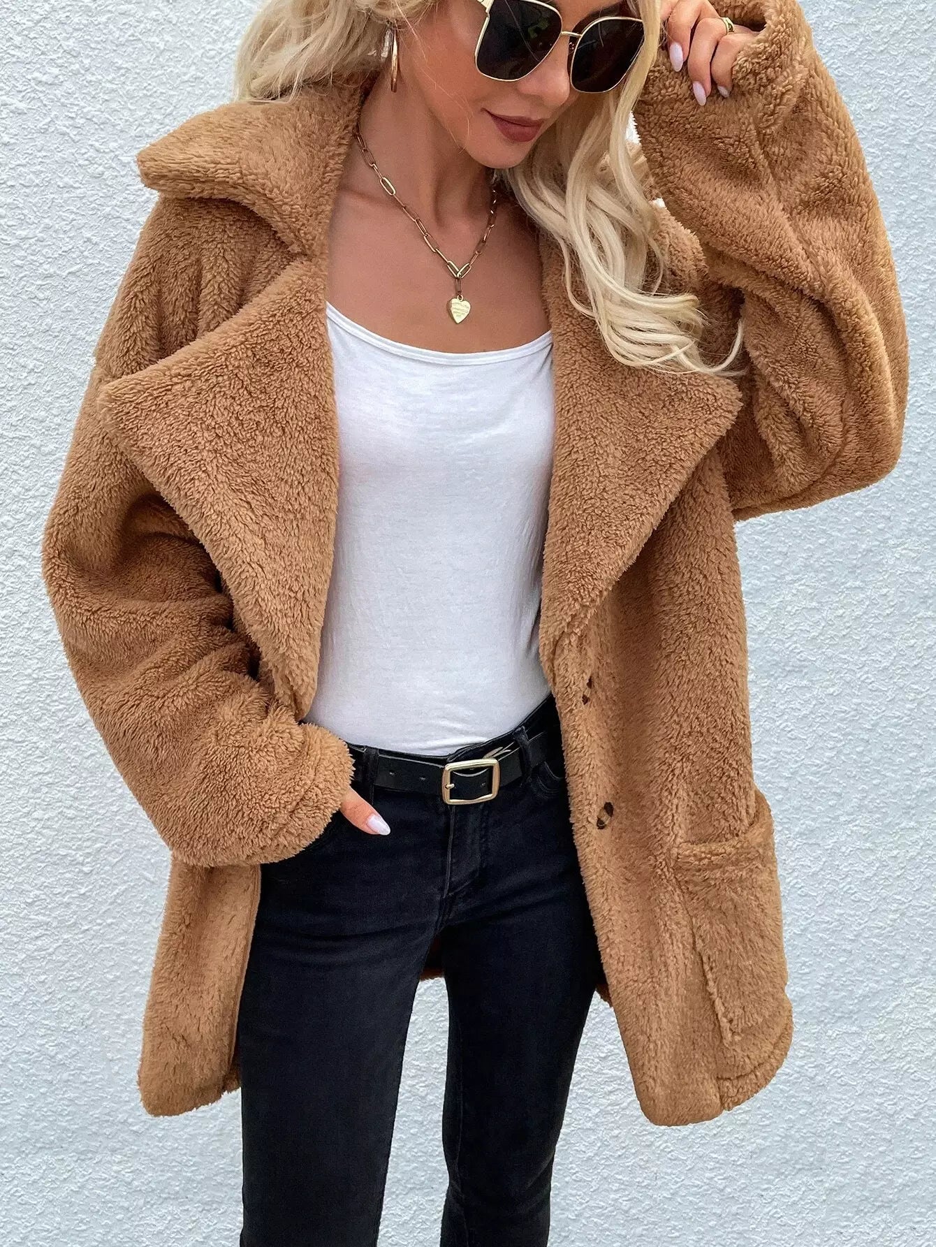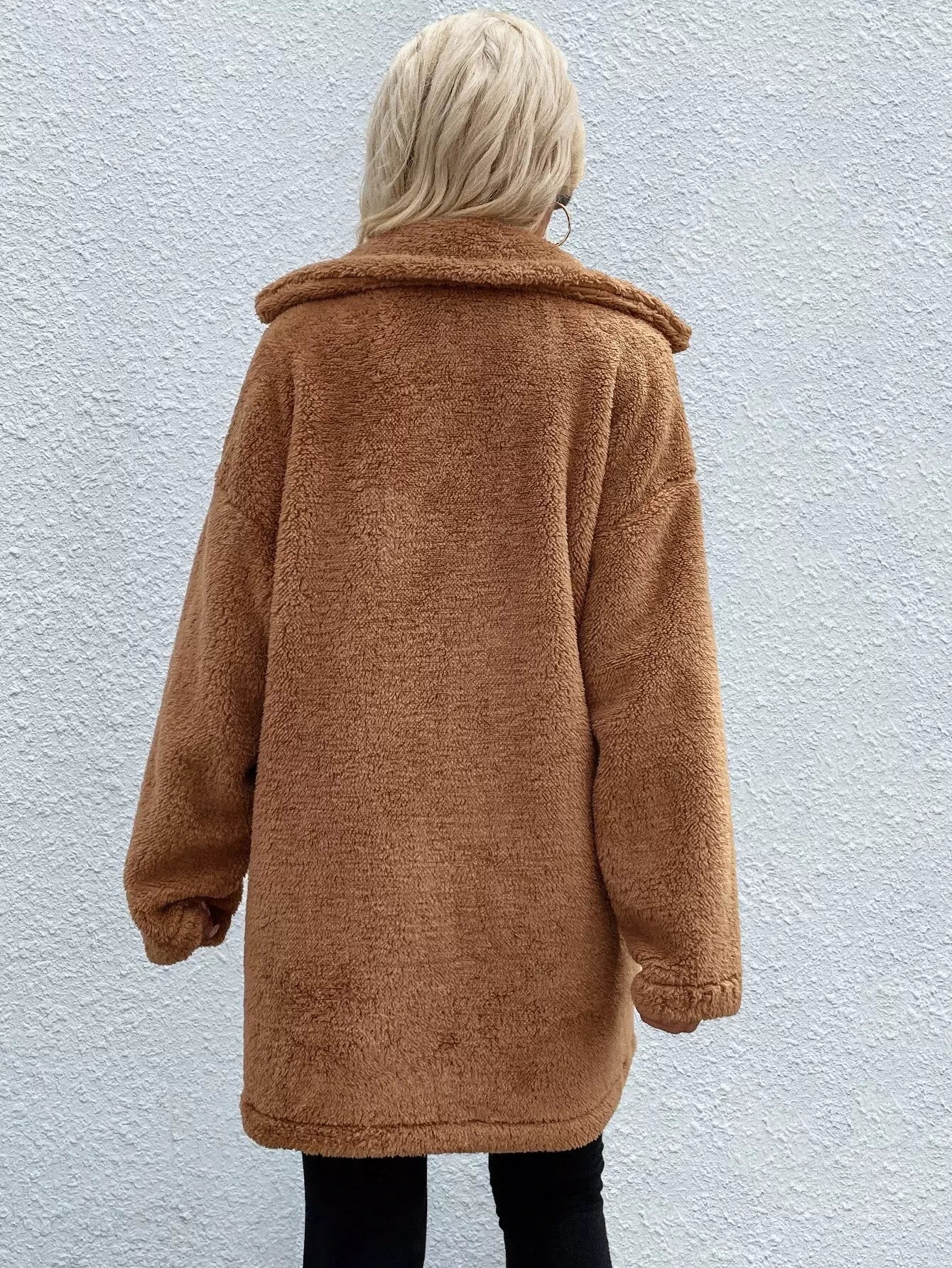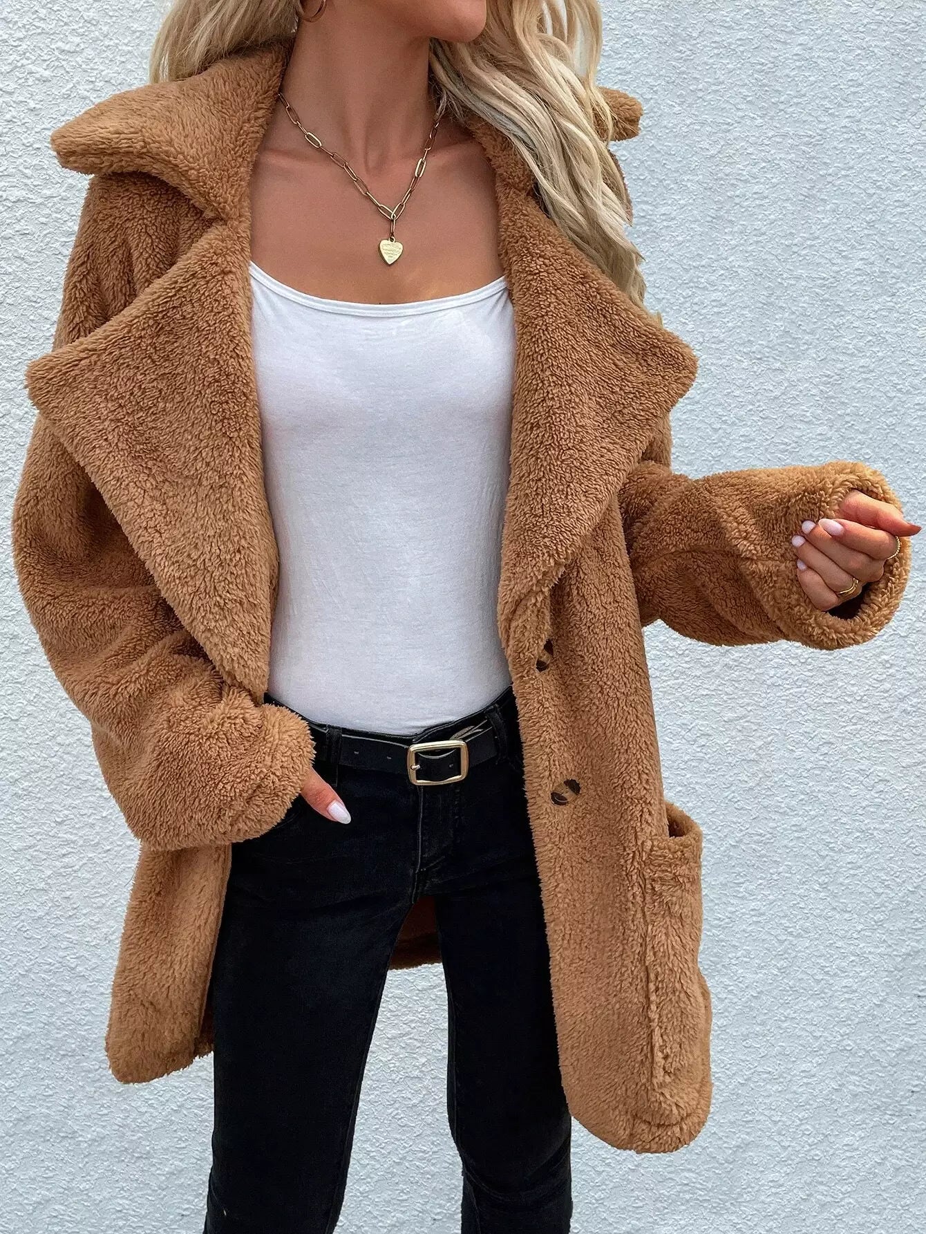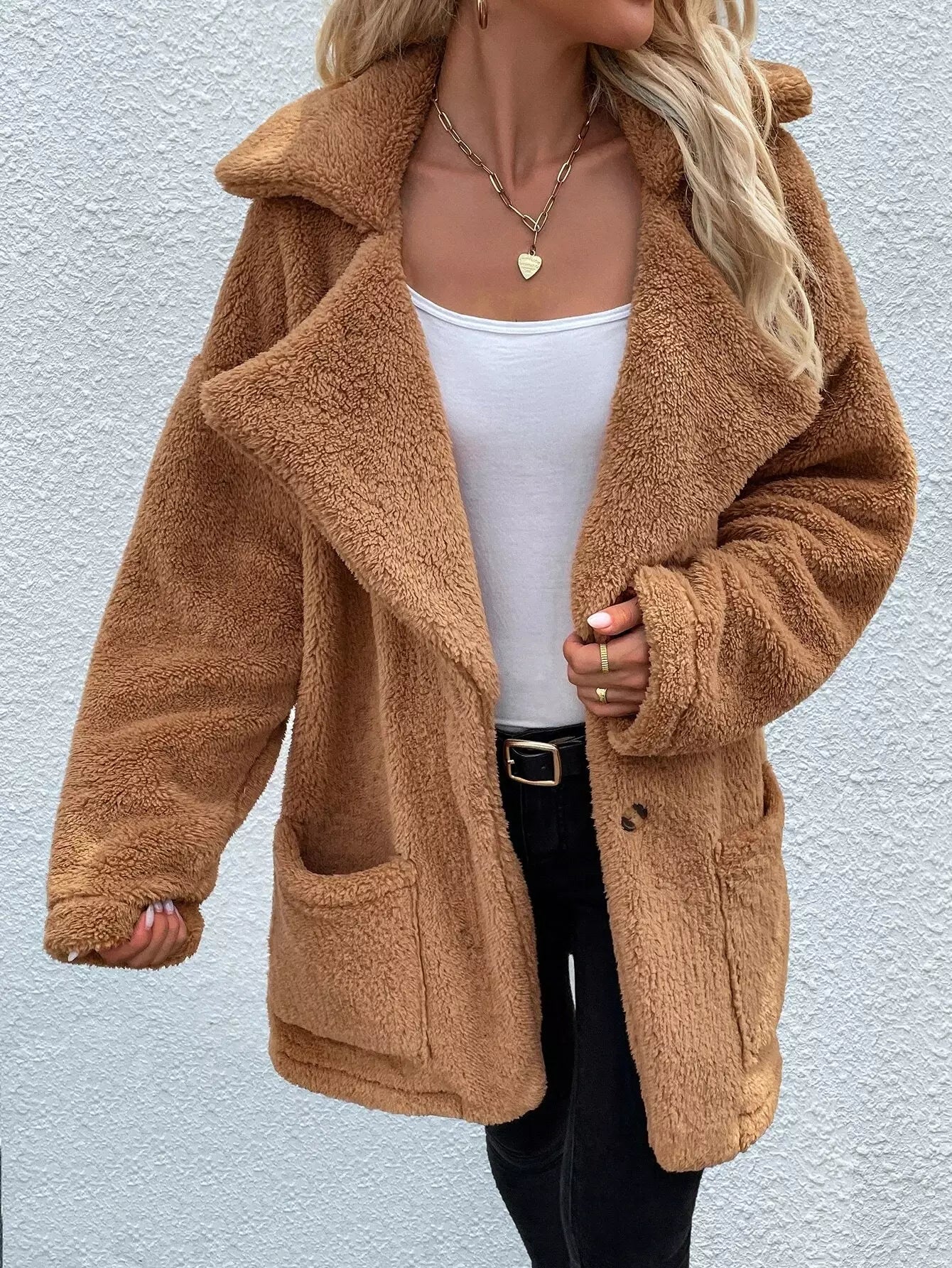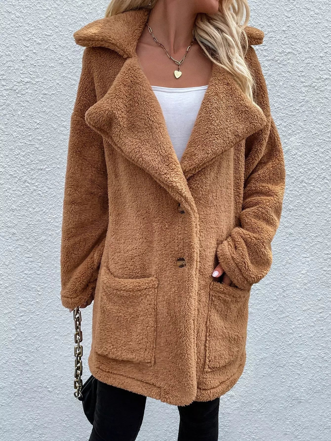معطف بياقة بياقة منسدلة على الكتف وجيبين من الفانيلا