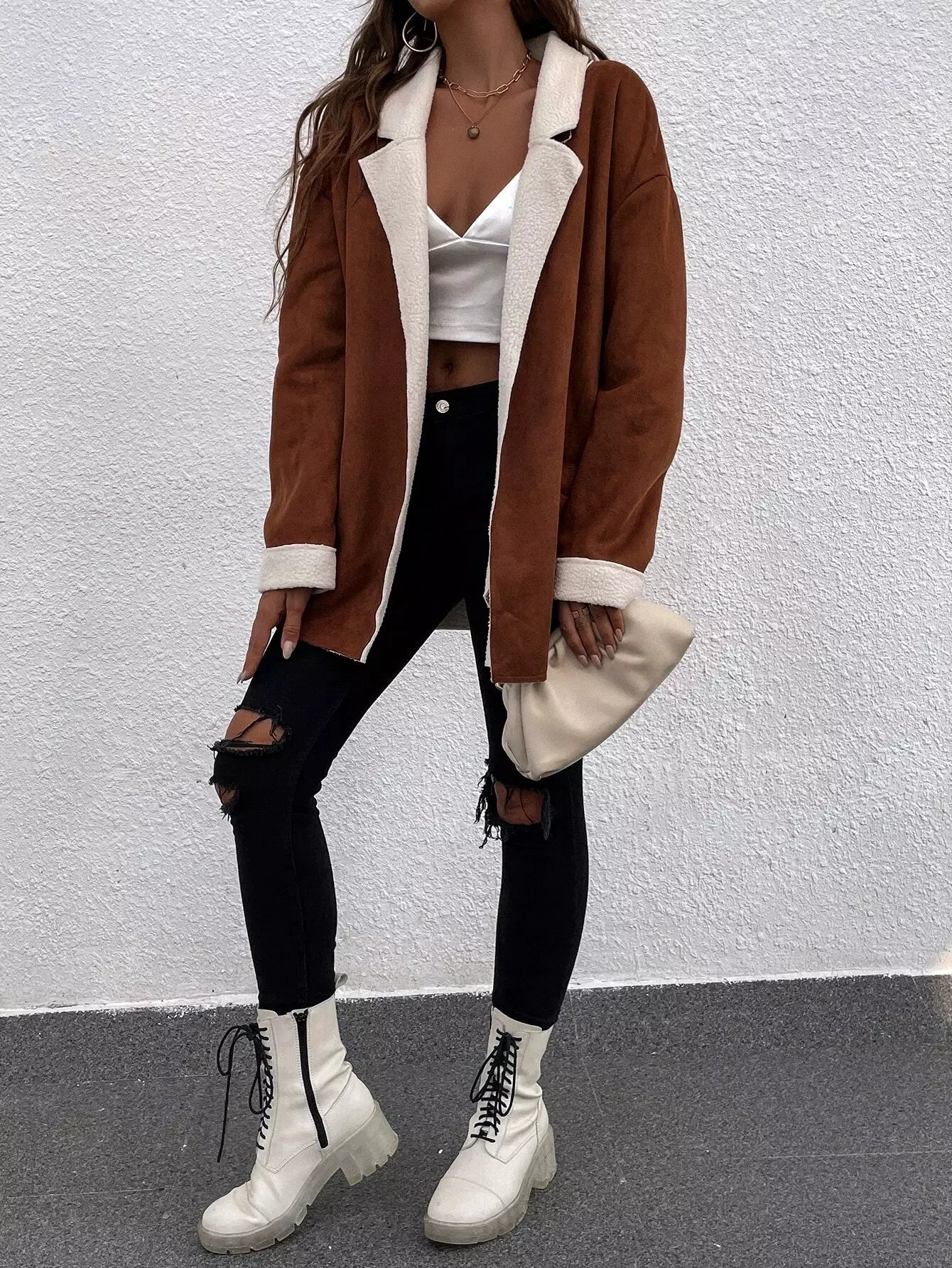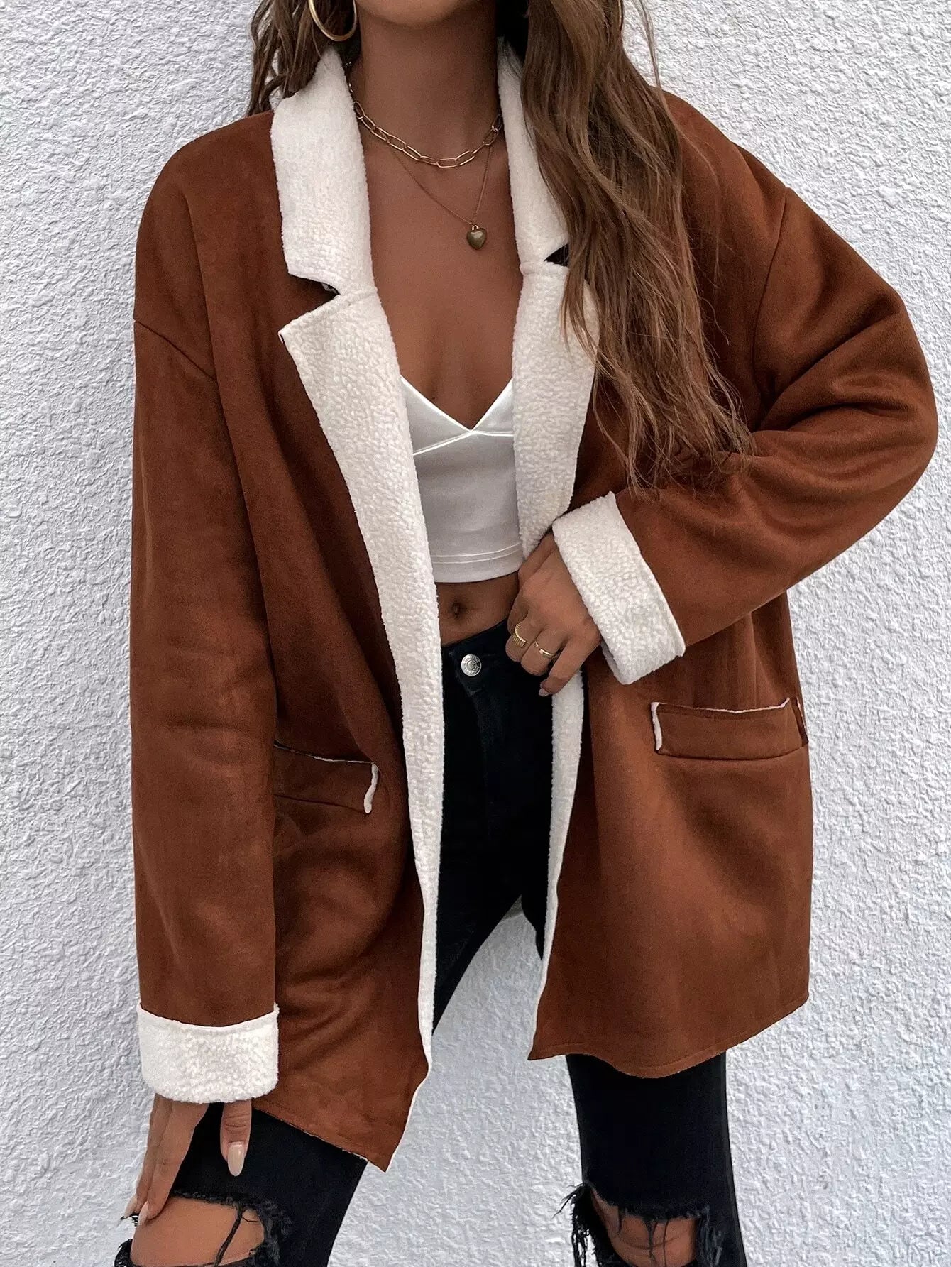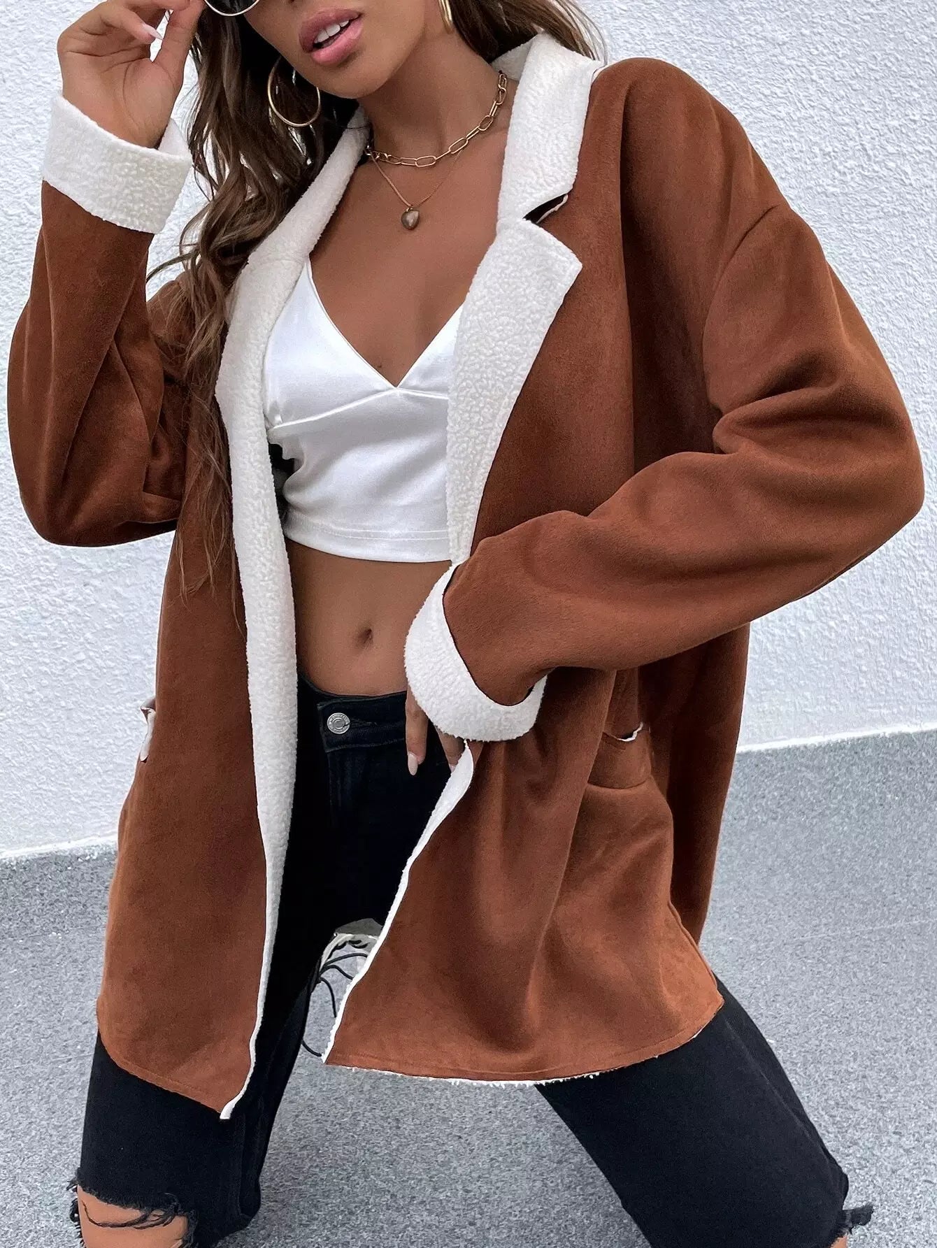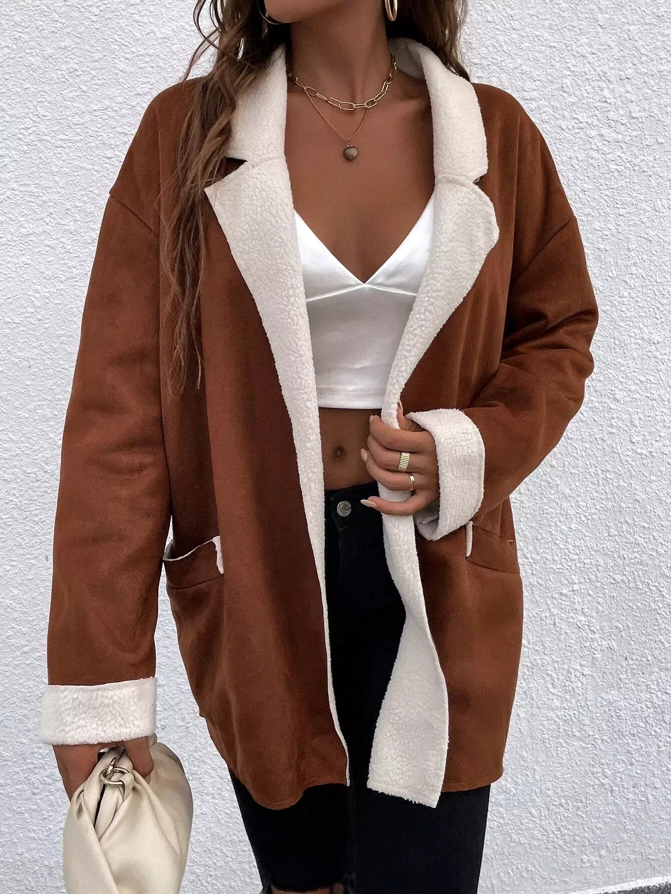 معطف سوتيه مبطّن برقبة على الرقبة ومنسدل الكتفين