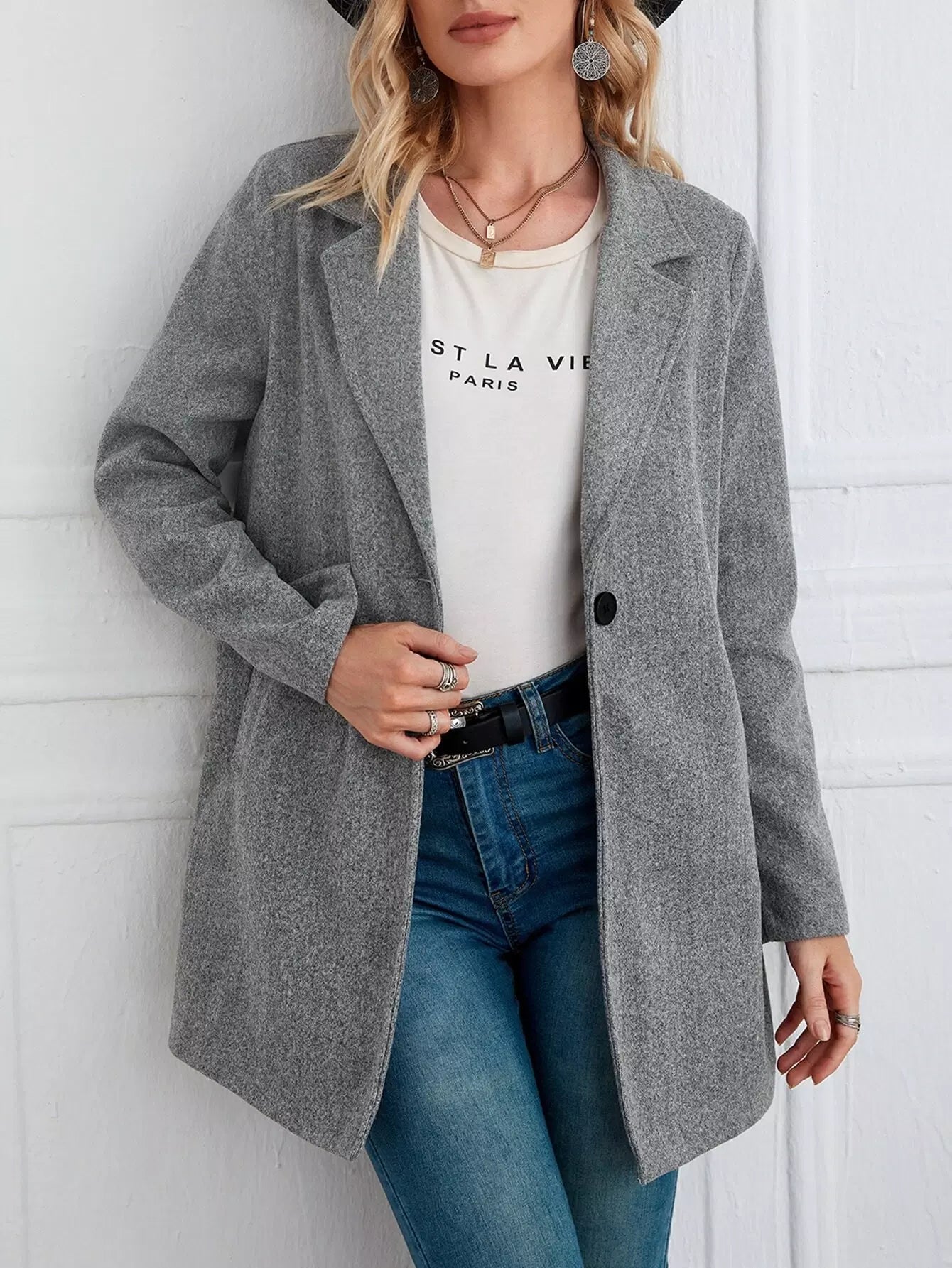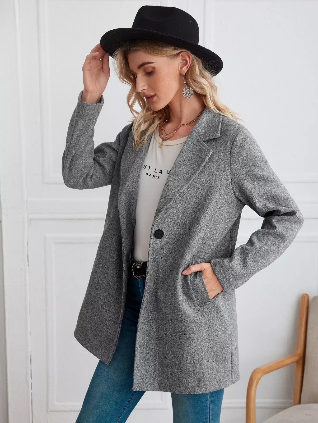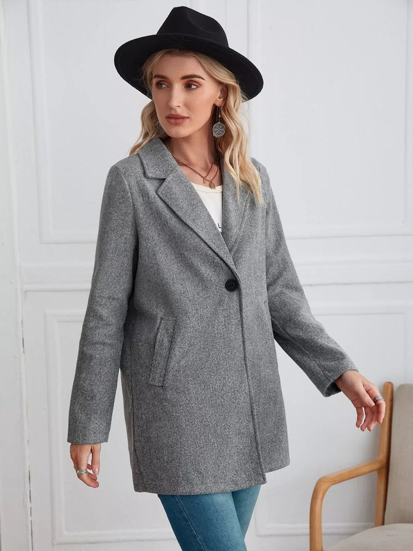 معطف بياقة مطوية وجيب مائل