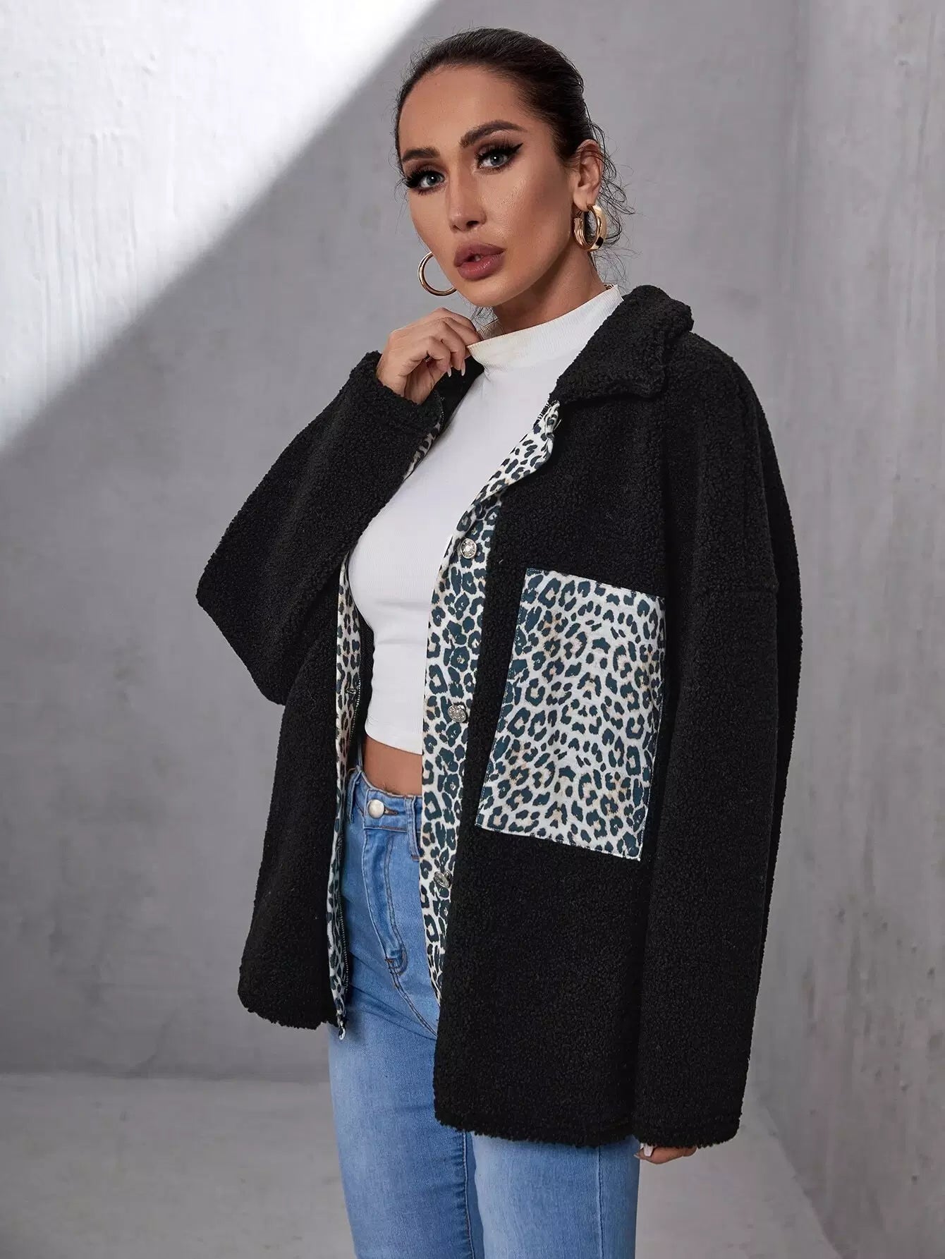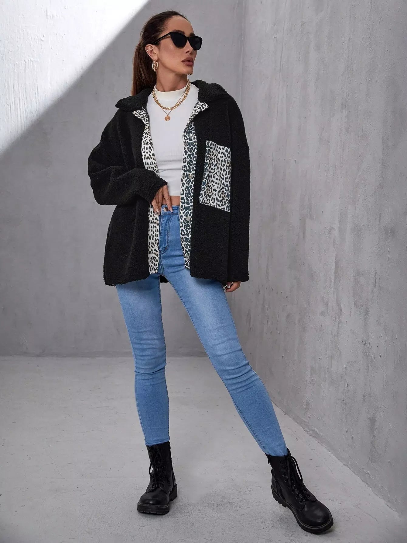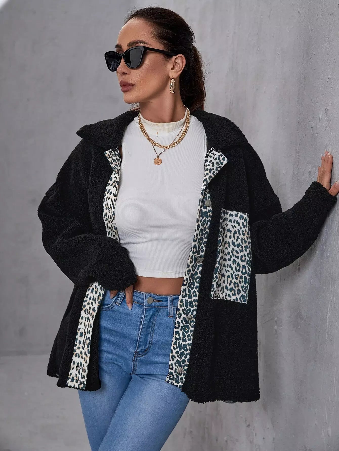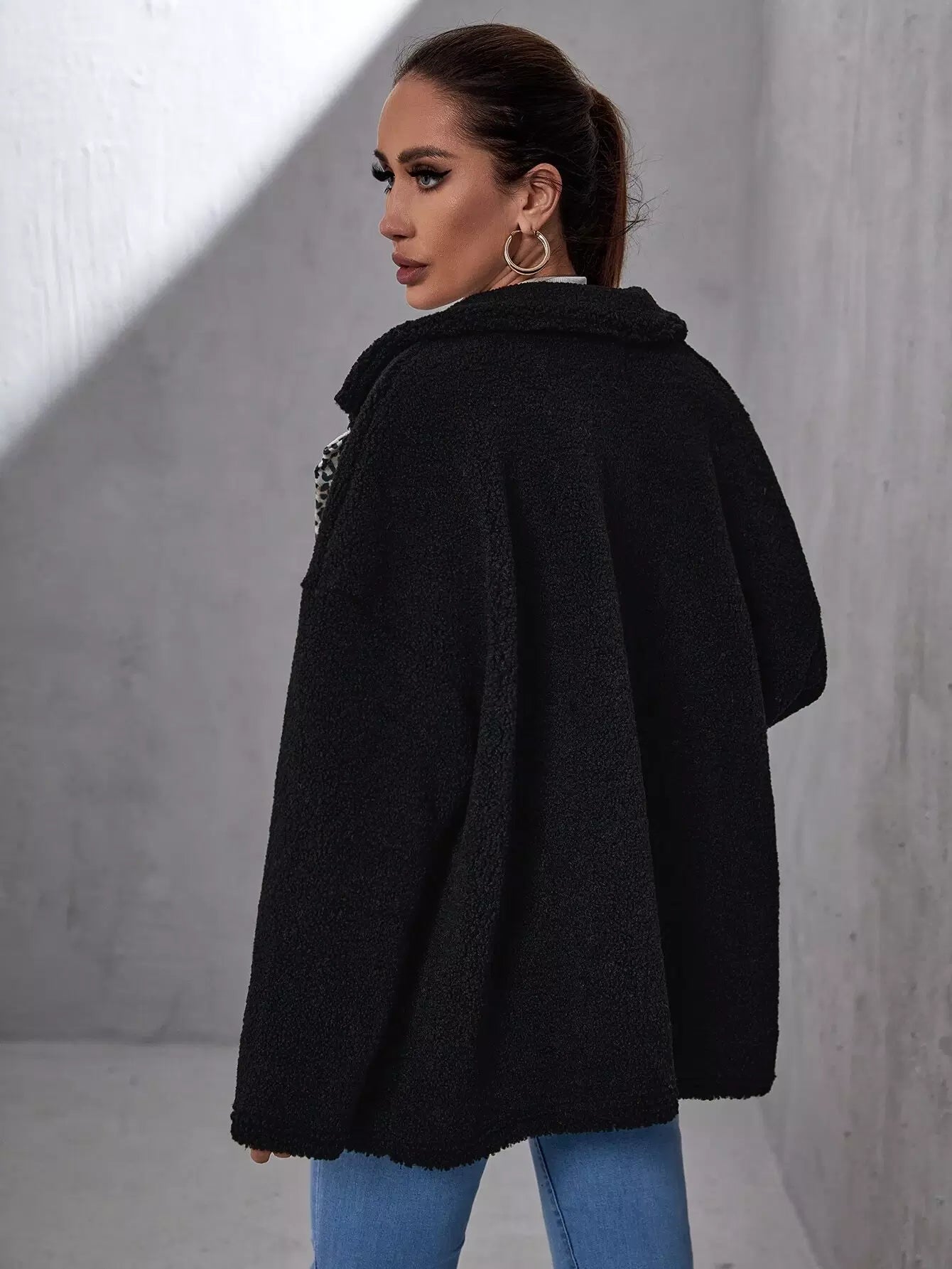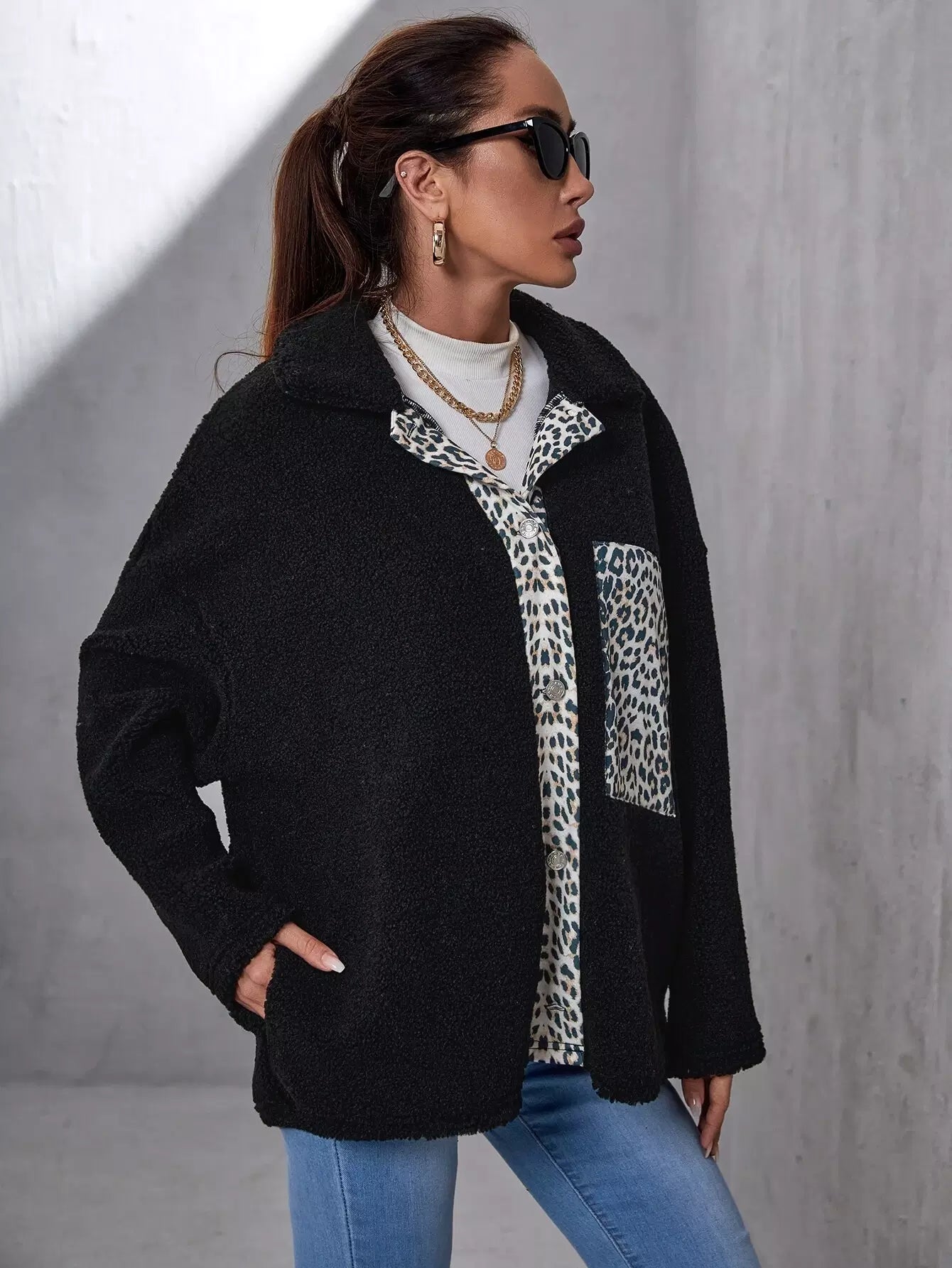 معطف ليوبارد منسدل الكتفين منسدل الكتفين