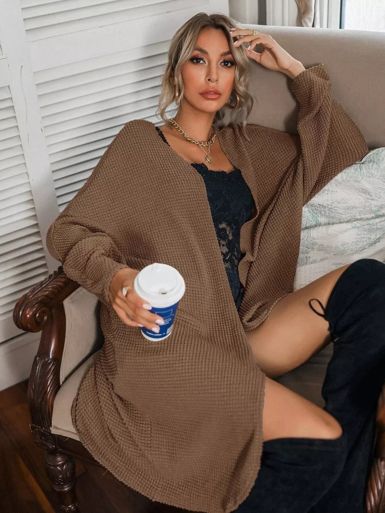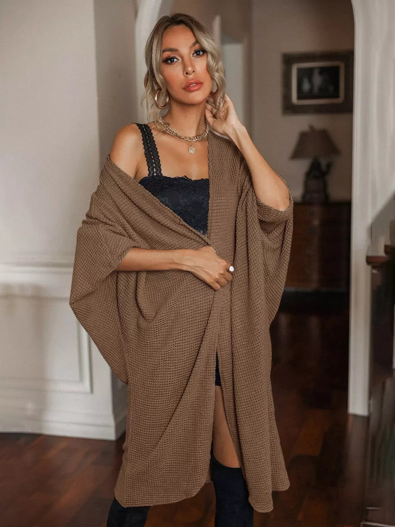 معطف بأكمام باتوينغ مفتوحة من الأمام