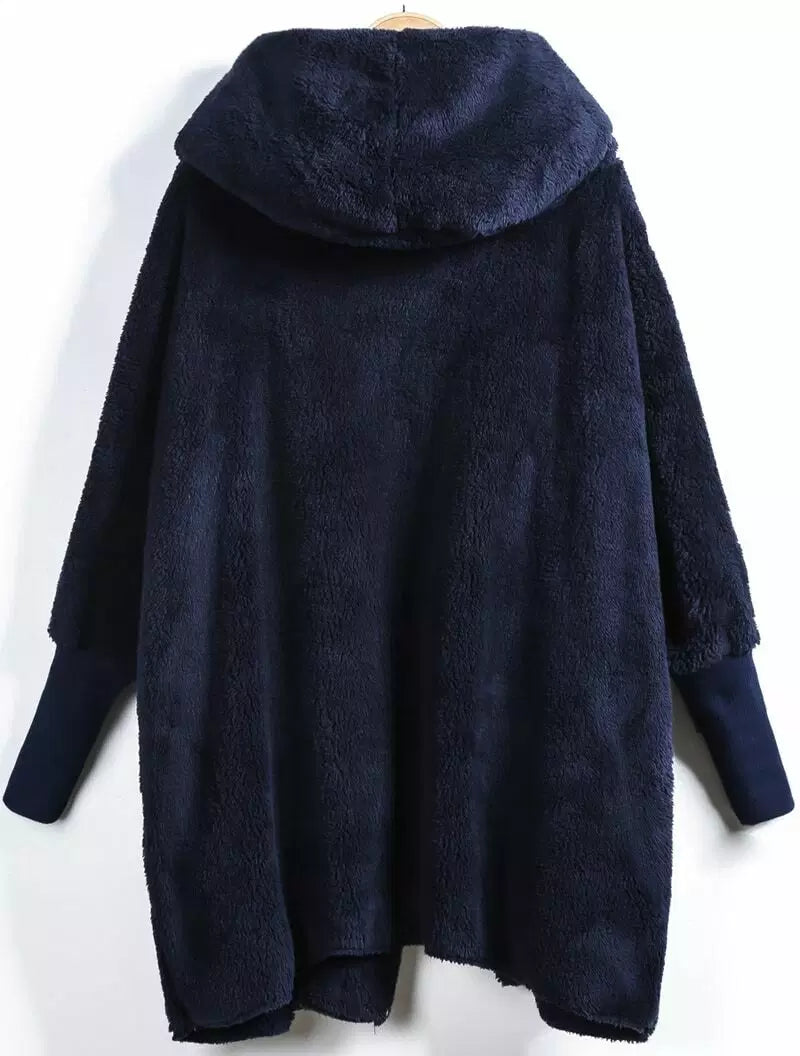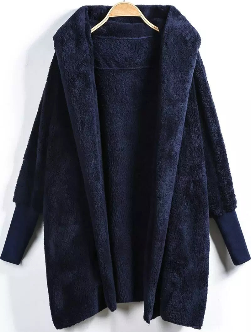 معطف تيدي مفتوح من الأمام مع غطاء للرأس
