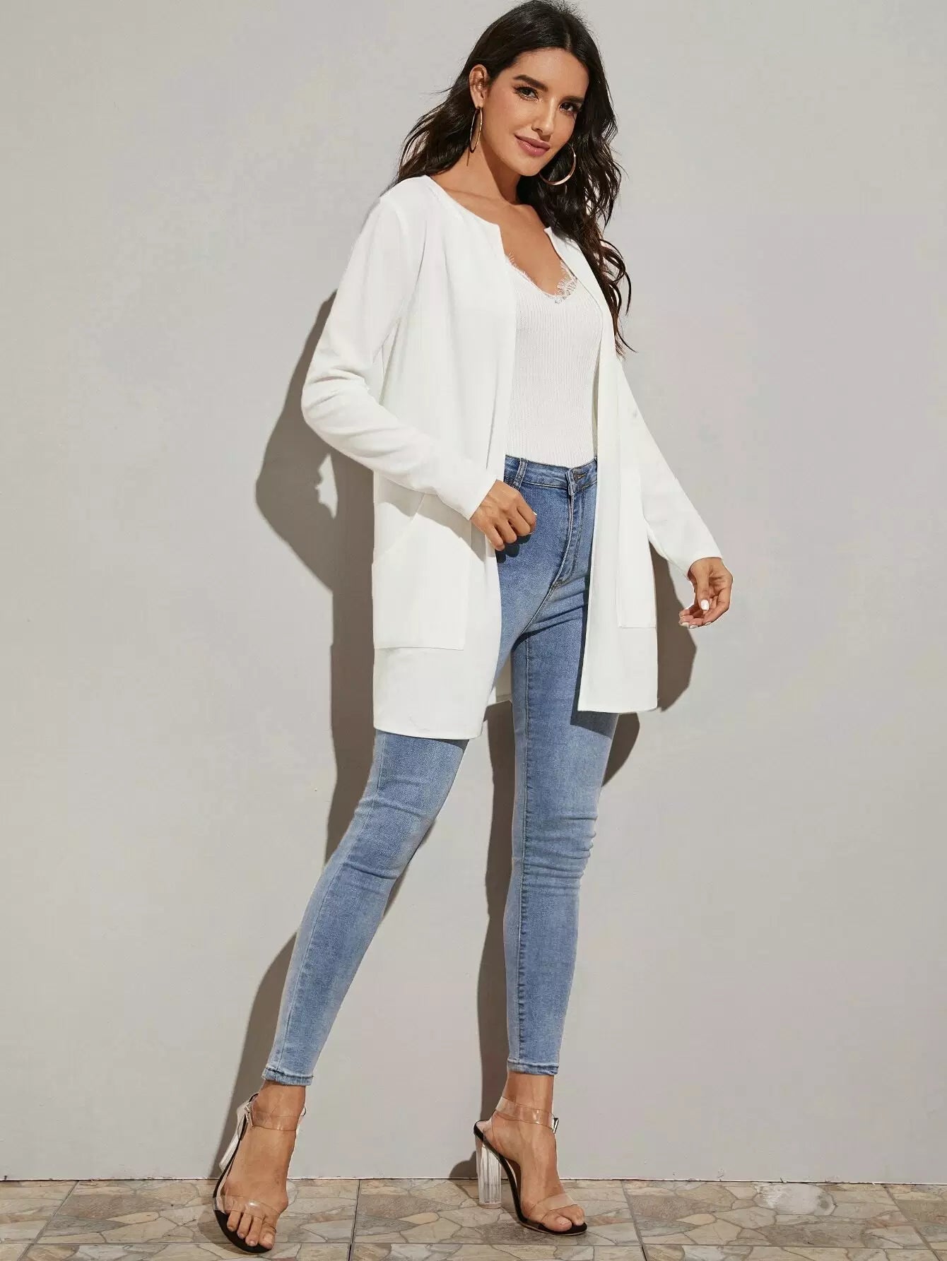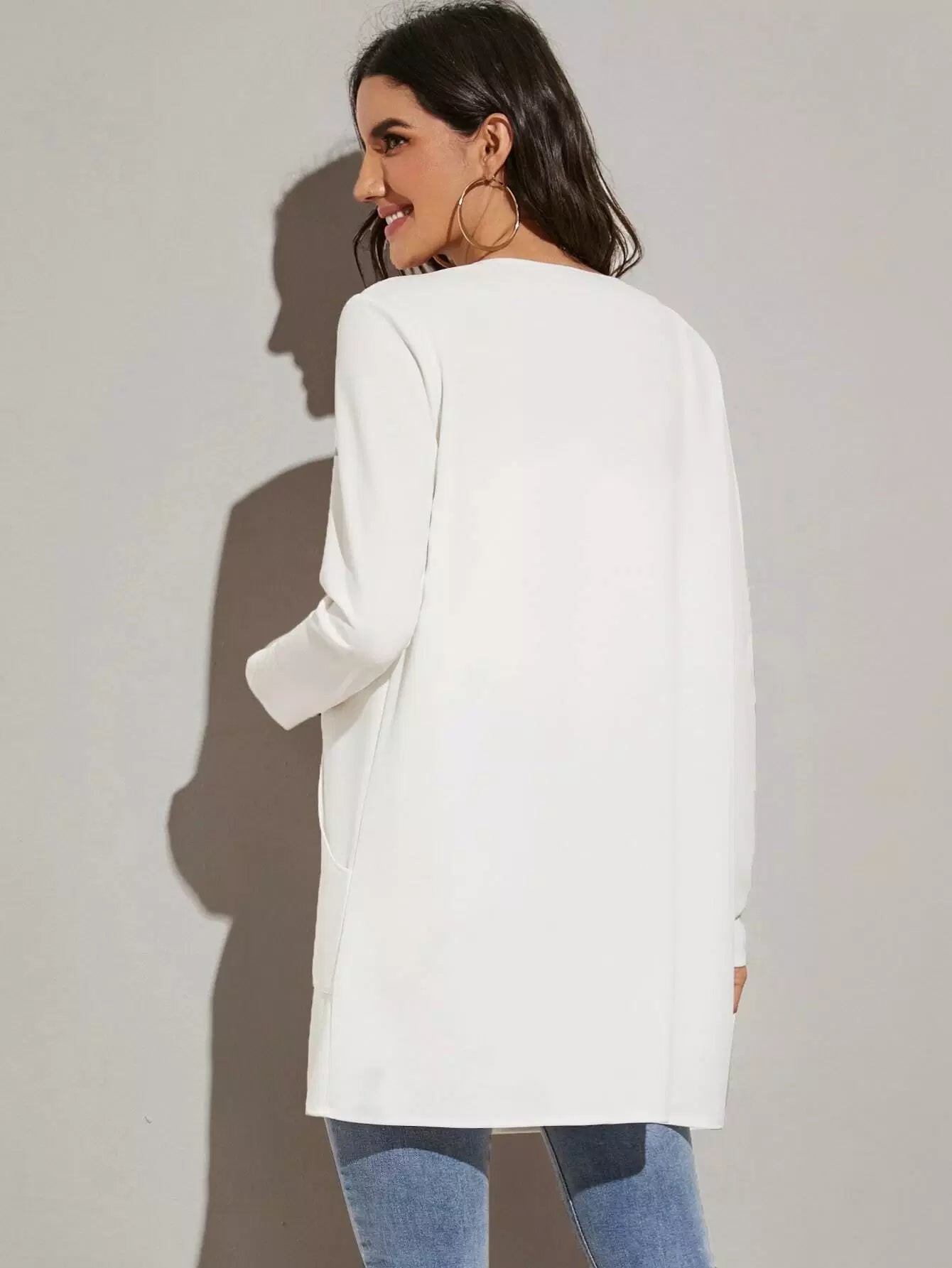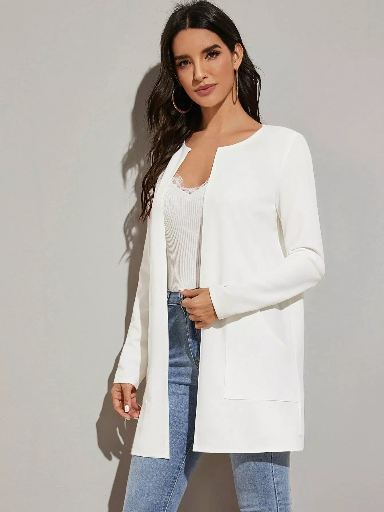 معطف ذو جيب مفتوح من الأمام مفتوح التفاصيل