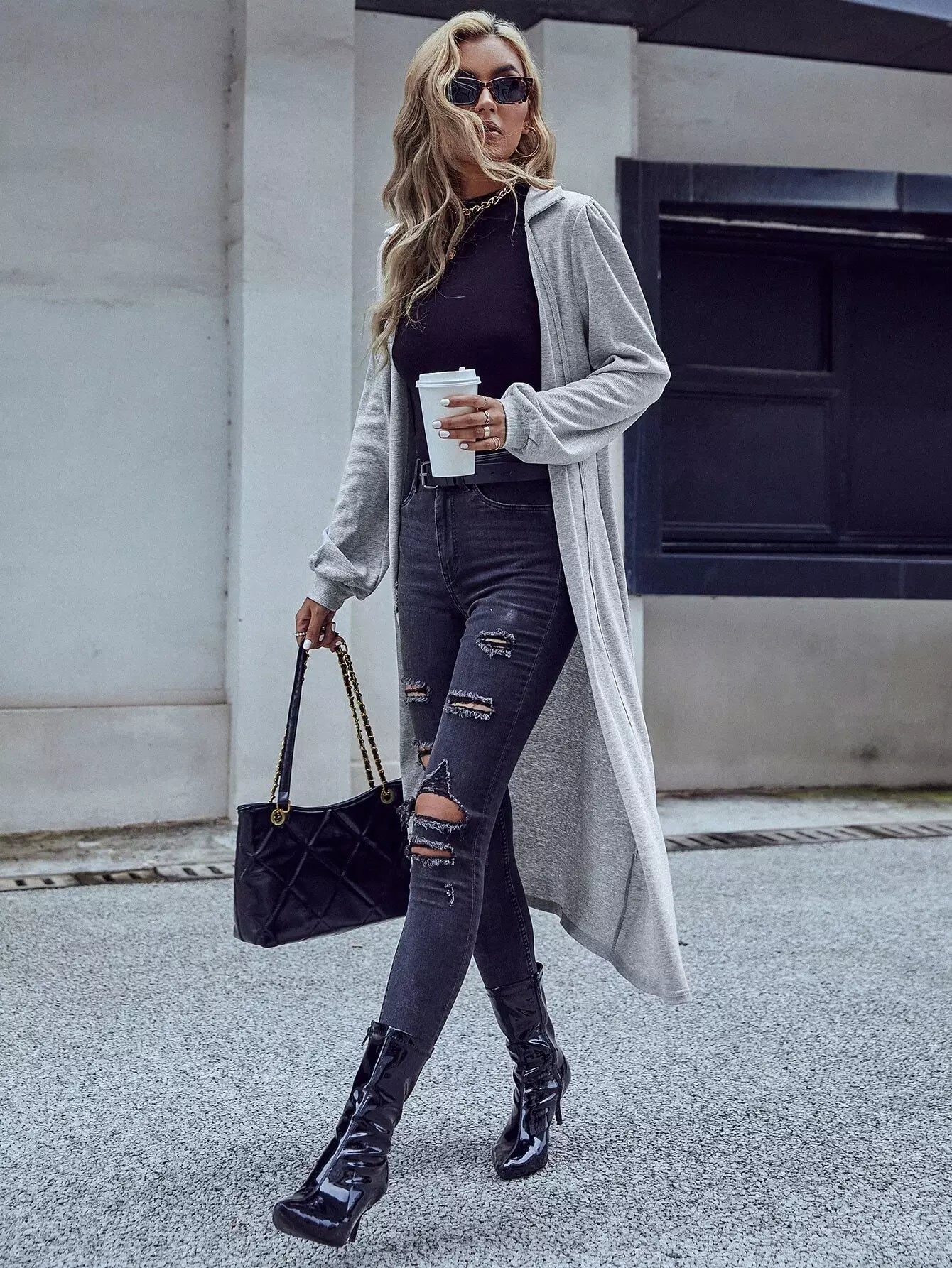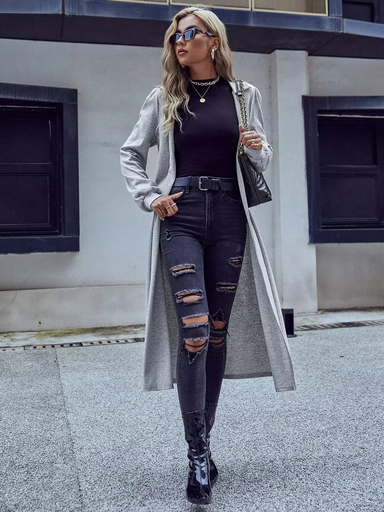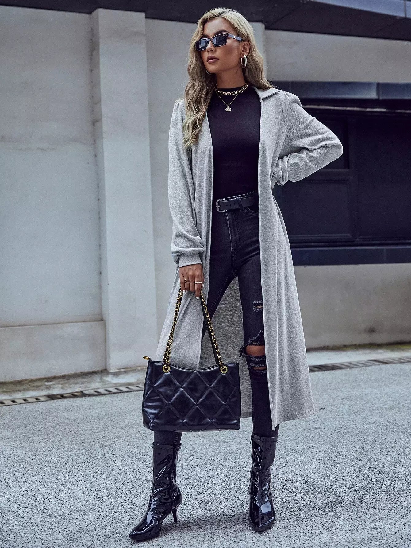 معطف بأكمام منفوخة مفتوحة من الأمام بأكمام طويلة