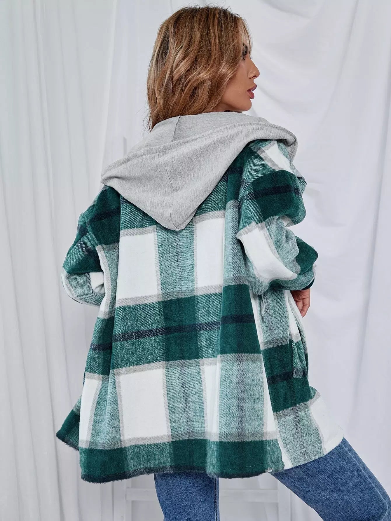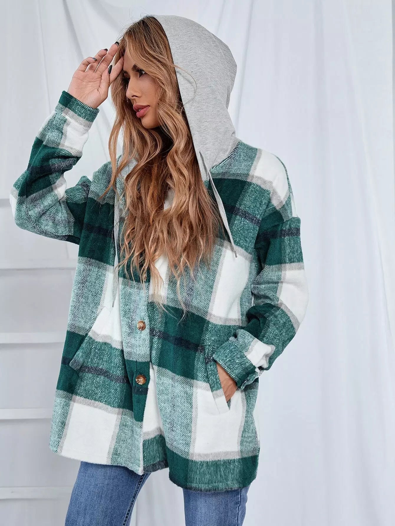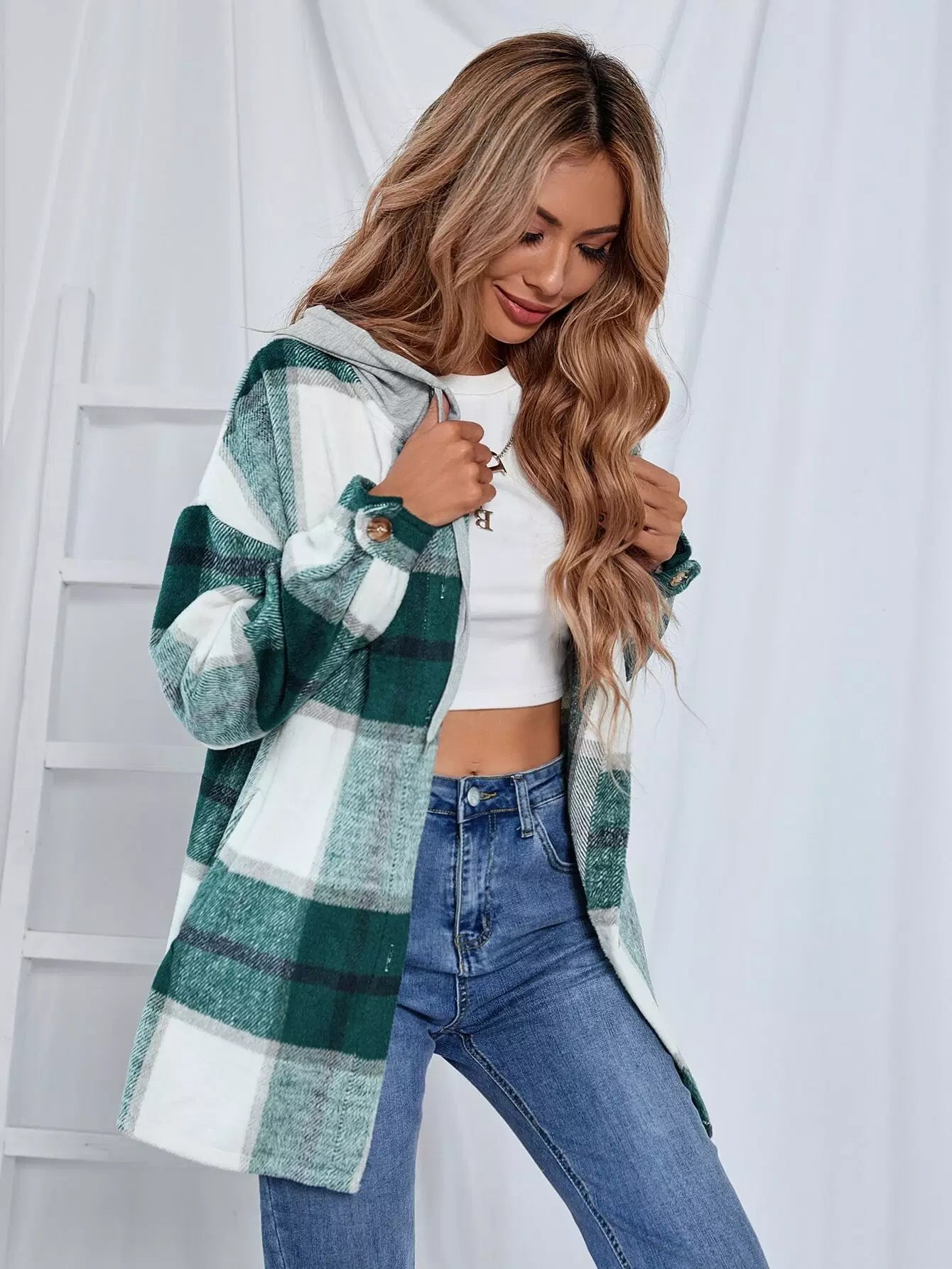 معطف منقوش بأزرار أمامية منقوشة برباط أمامي بغطاء رأس