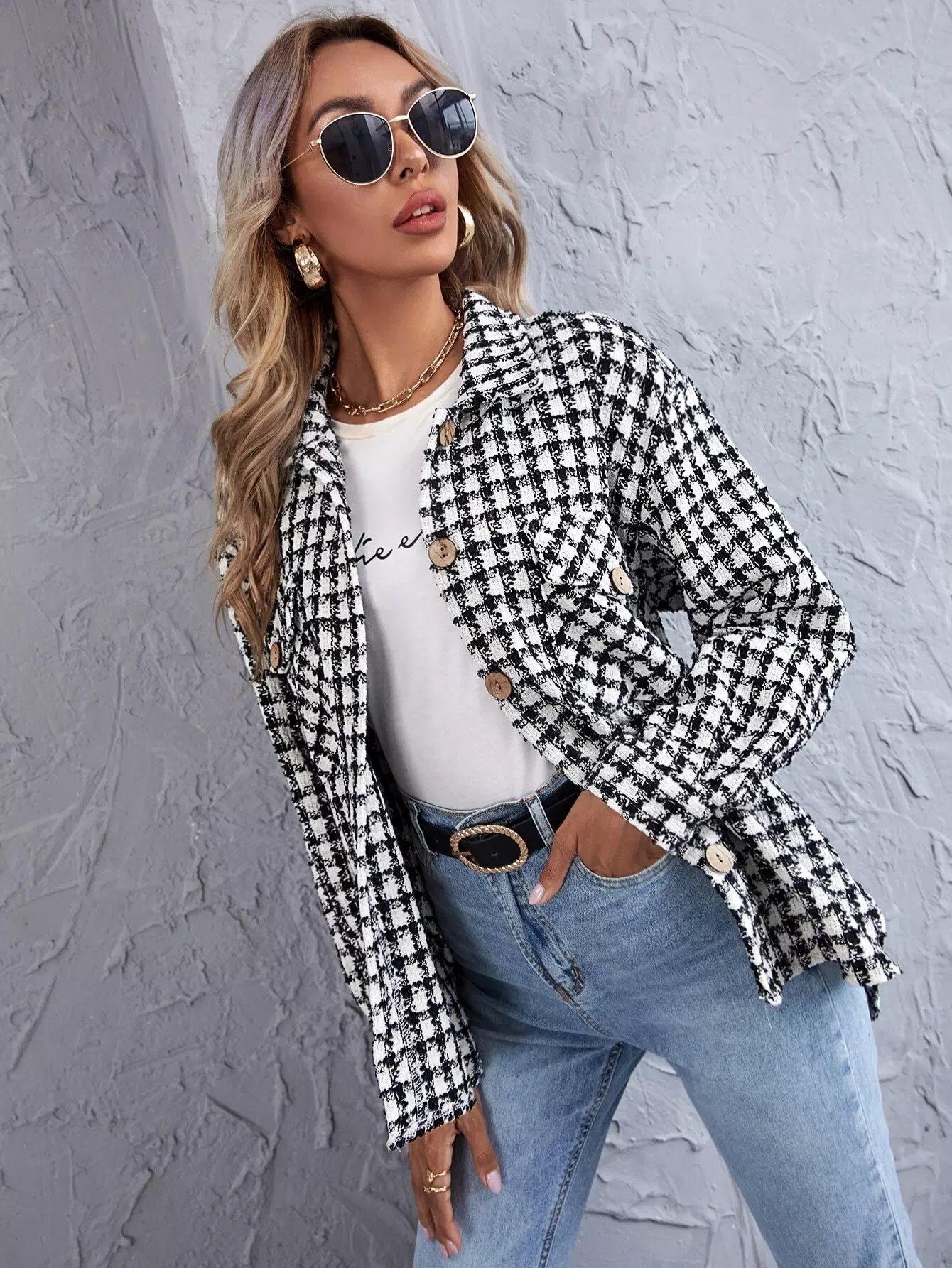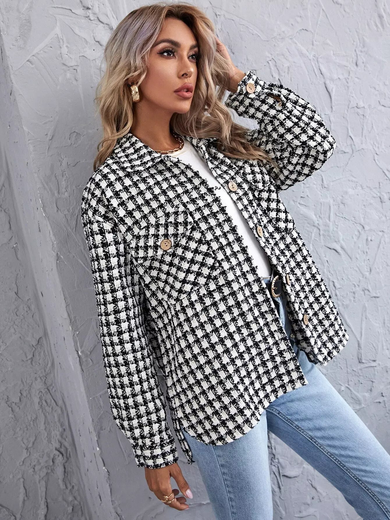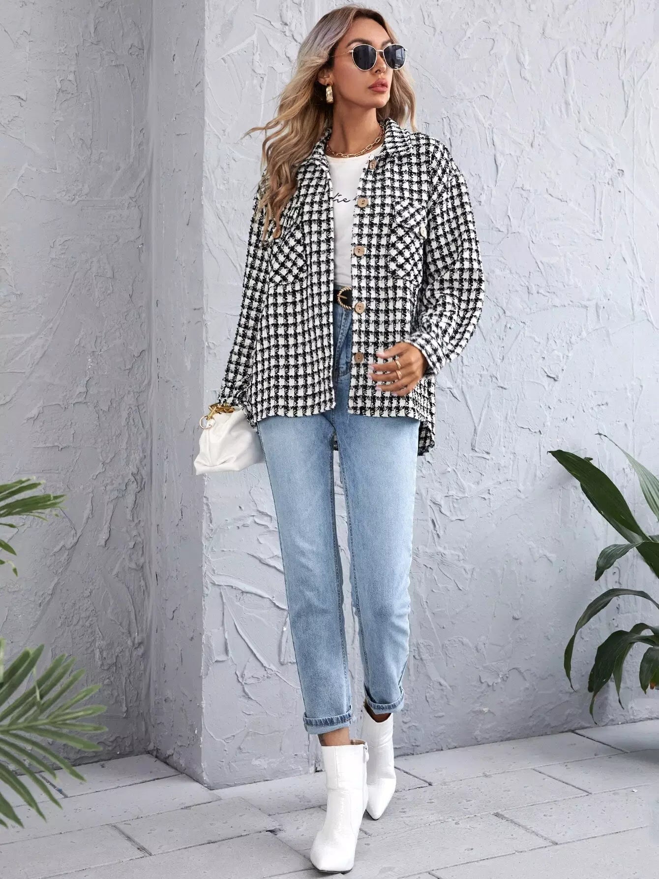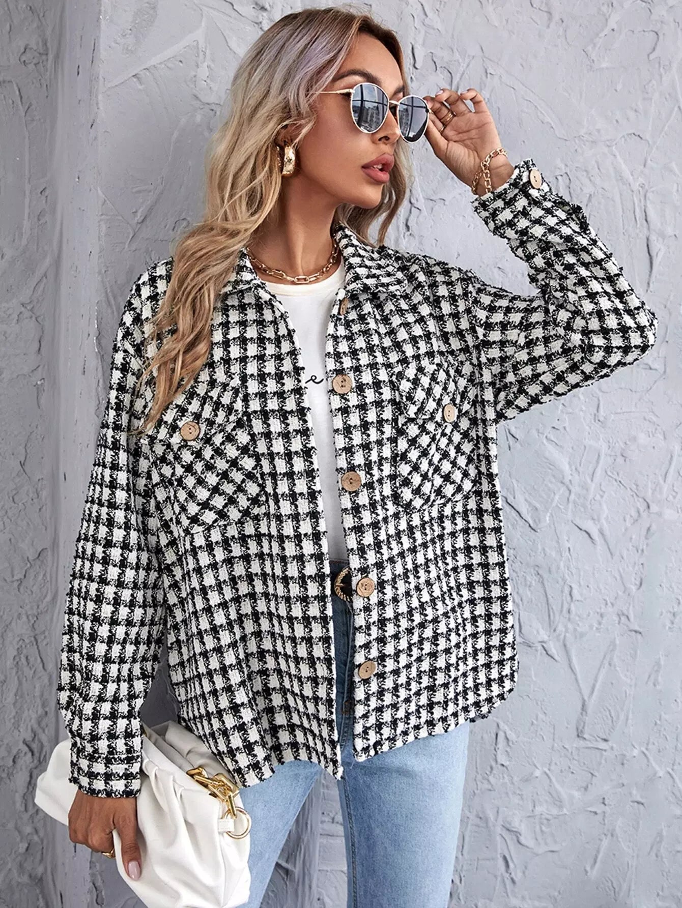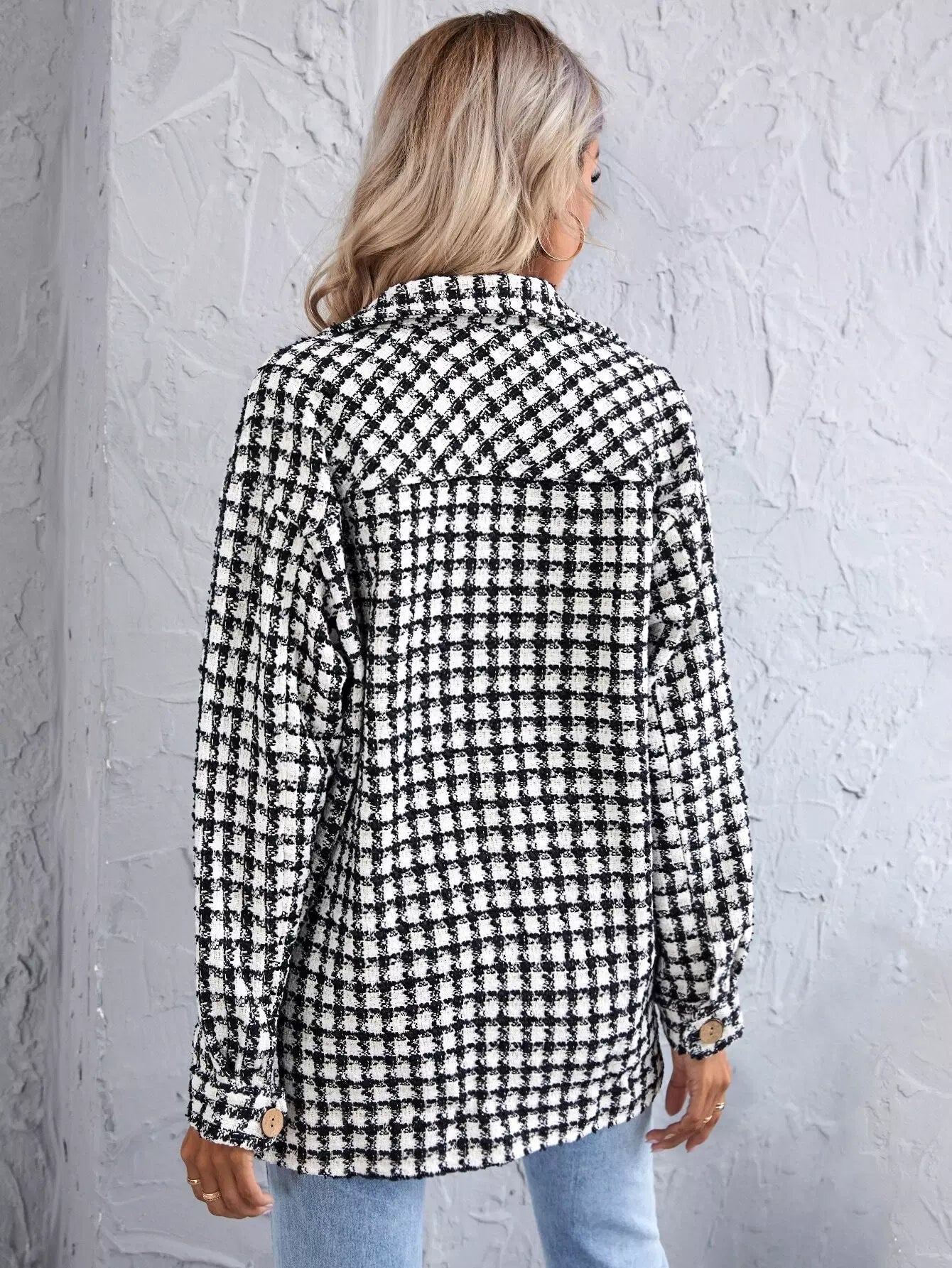 قميص تويد بحافة منقوشة منقوشة منقوشة من التويد