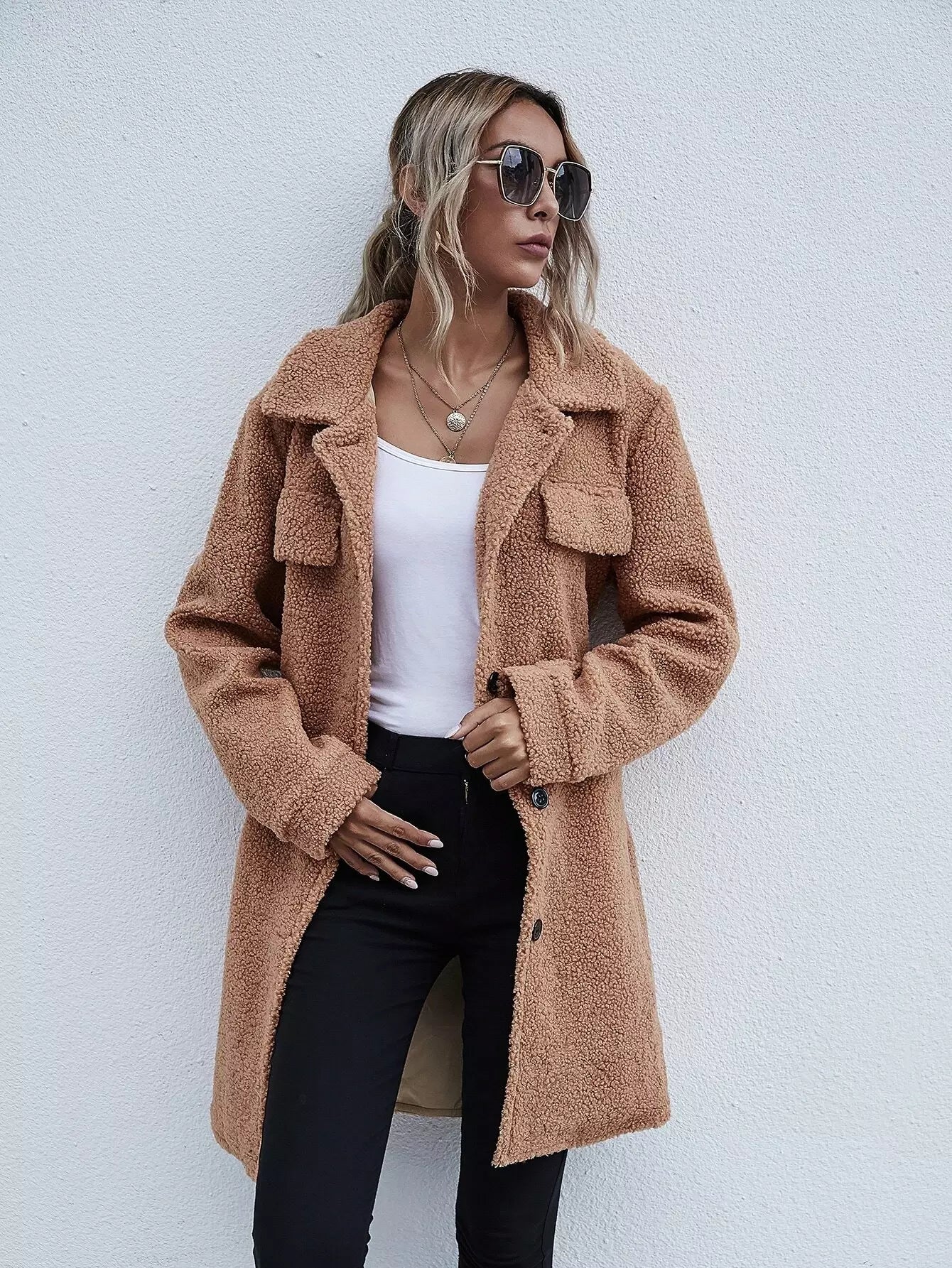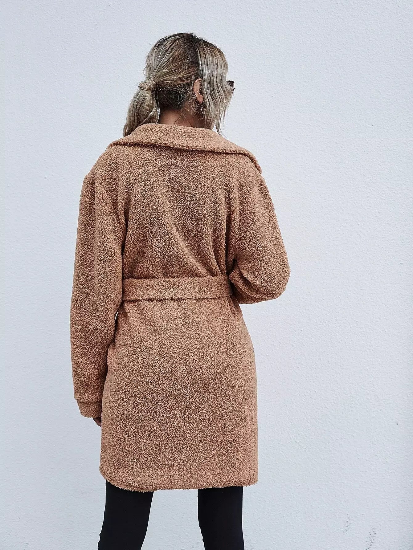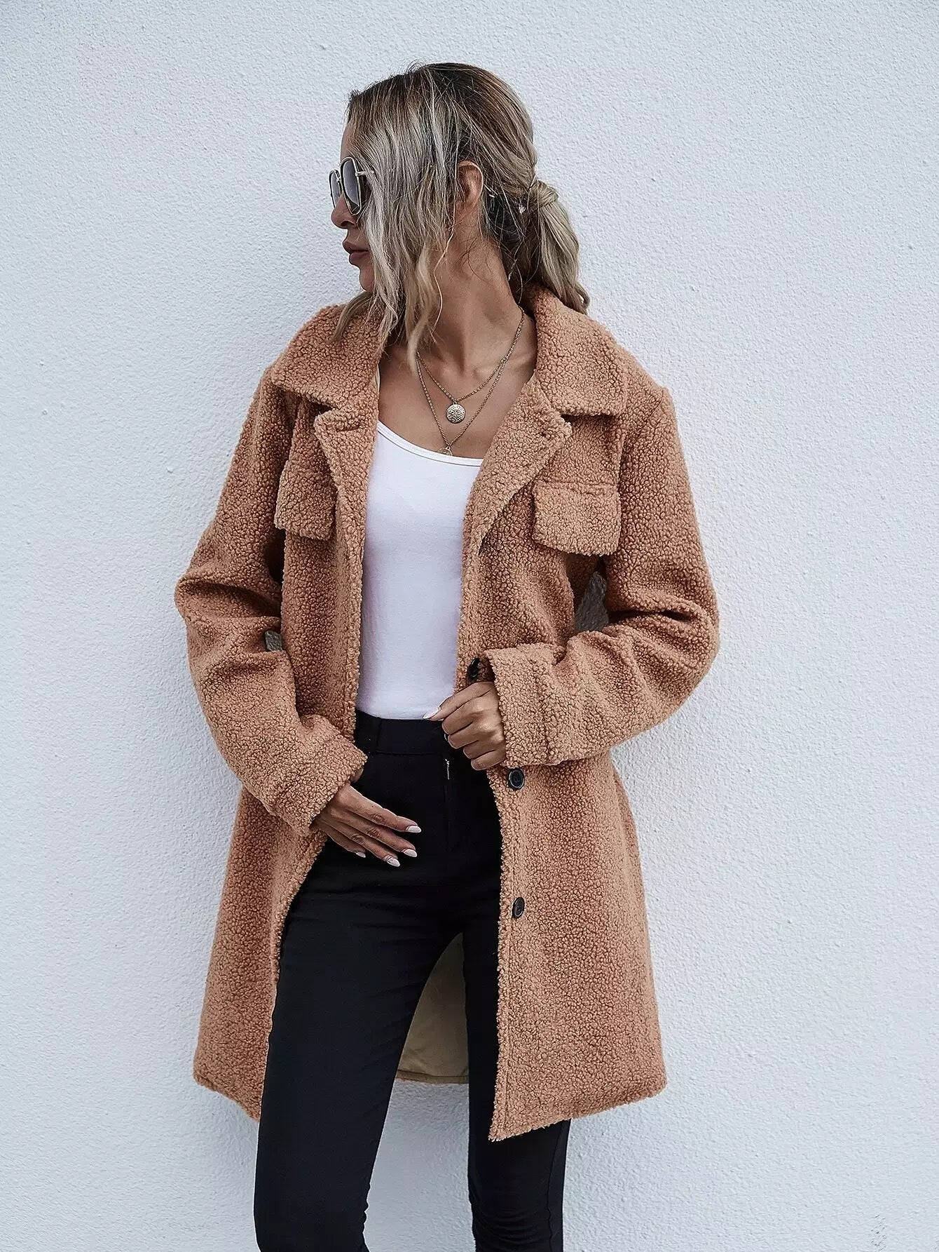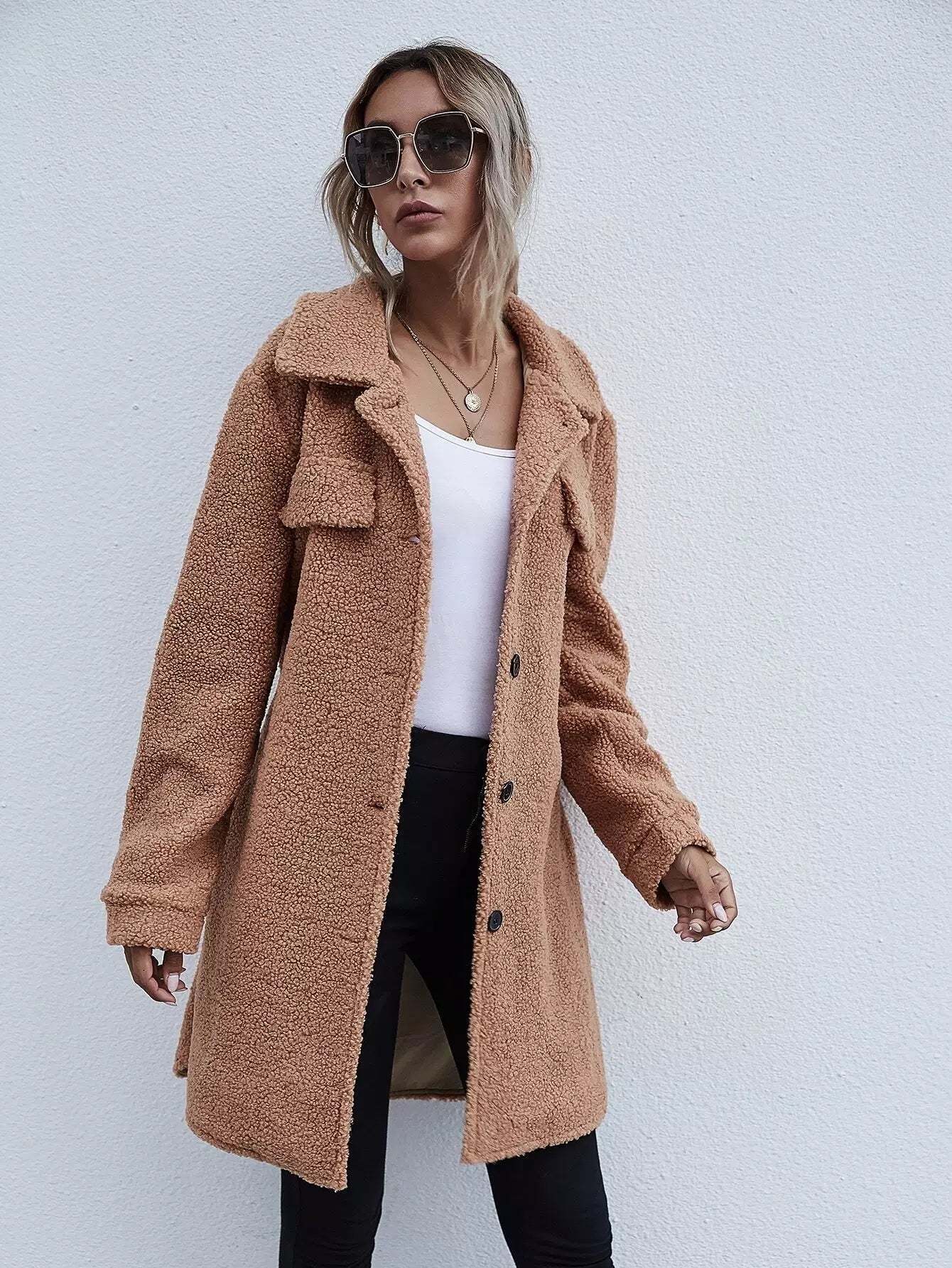 معطف تيدي مخملي بأزرار من الأمام بأزرار طويلة