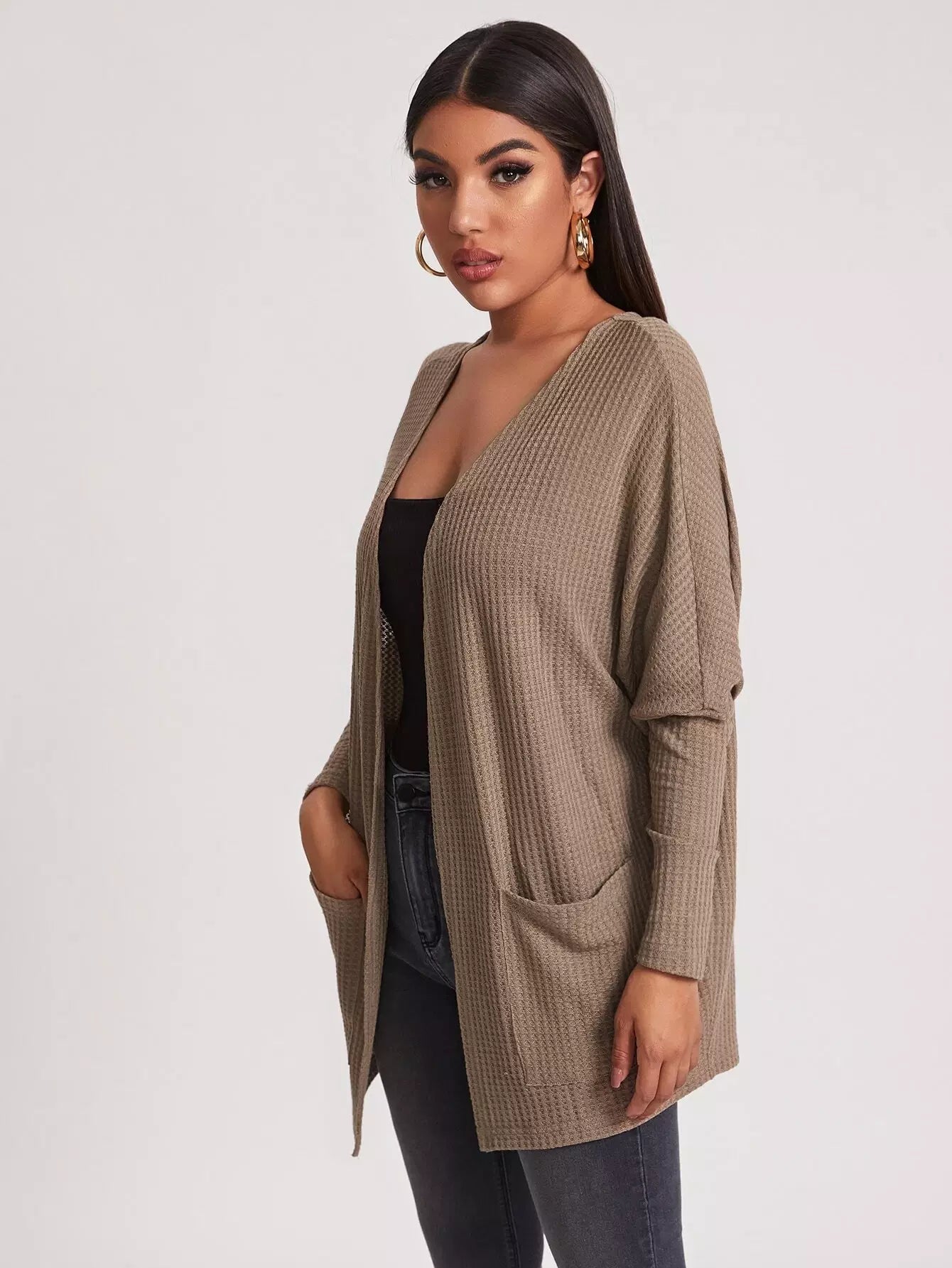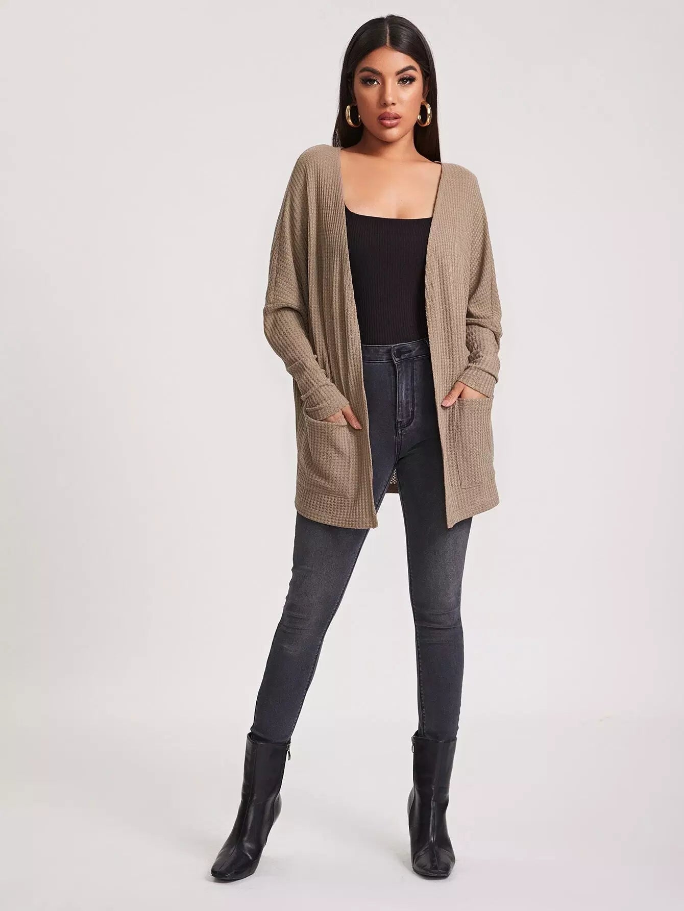 معطف محبوك بجيب أمامي من نسيج الوافل
