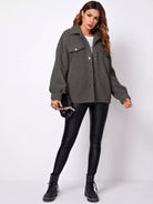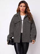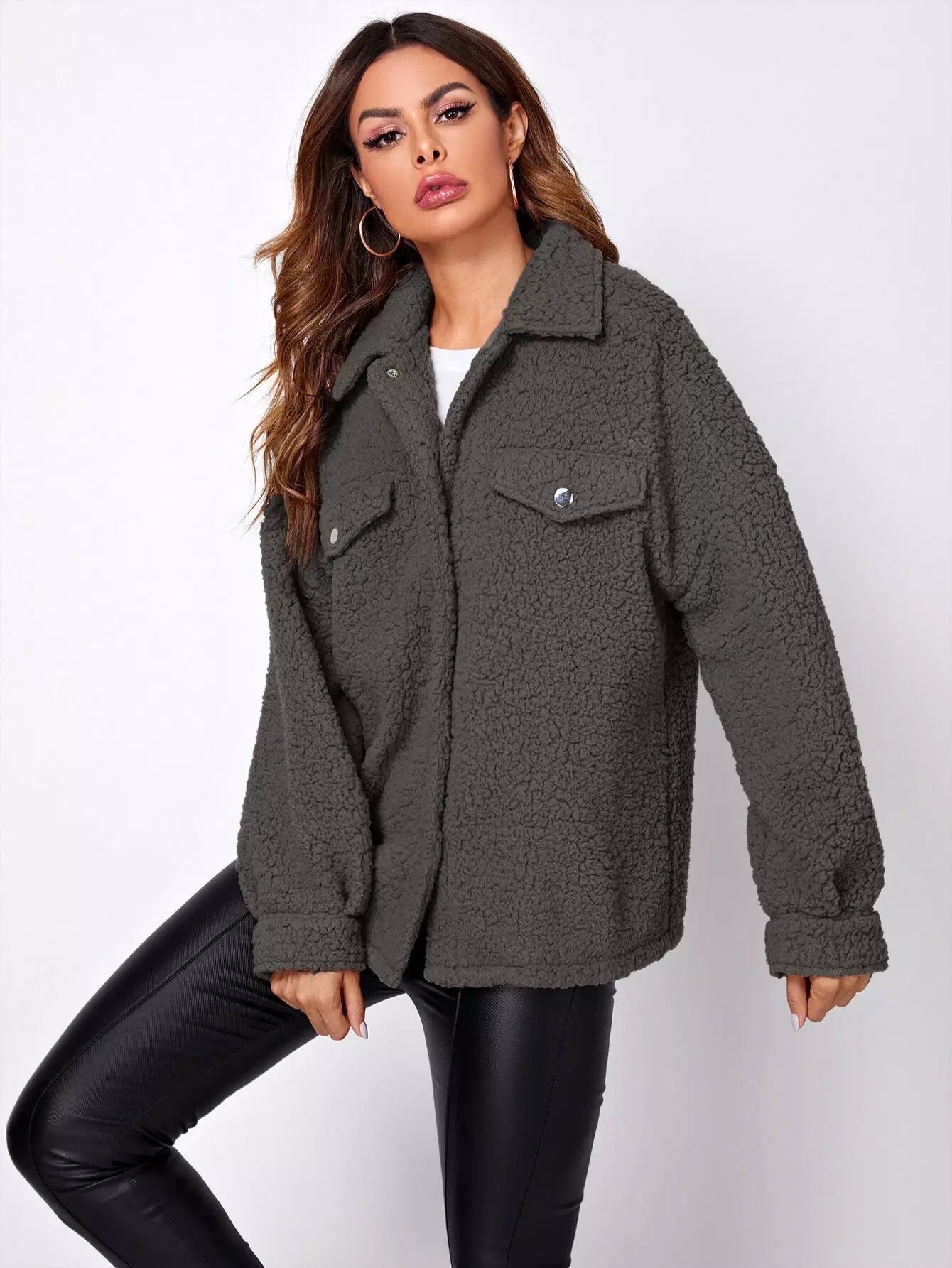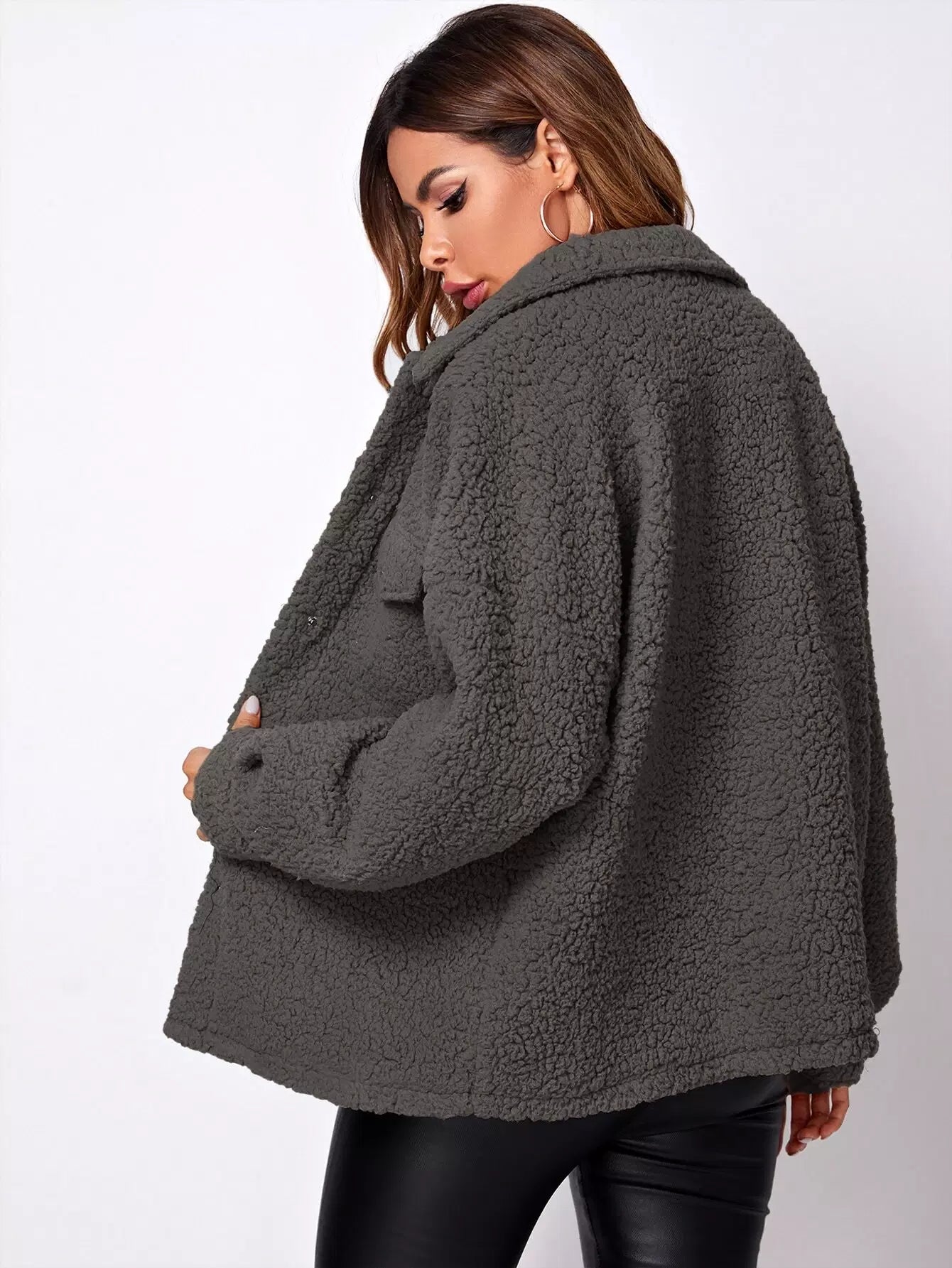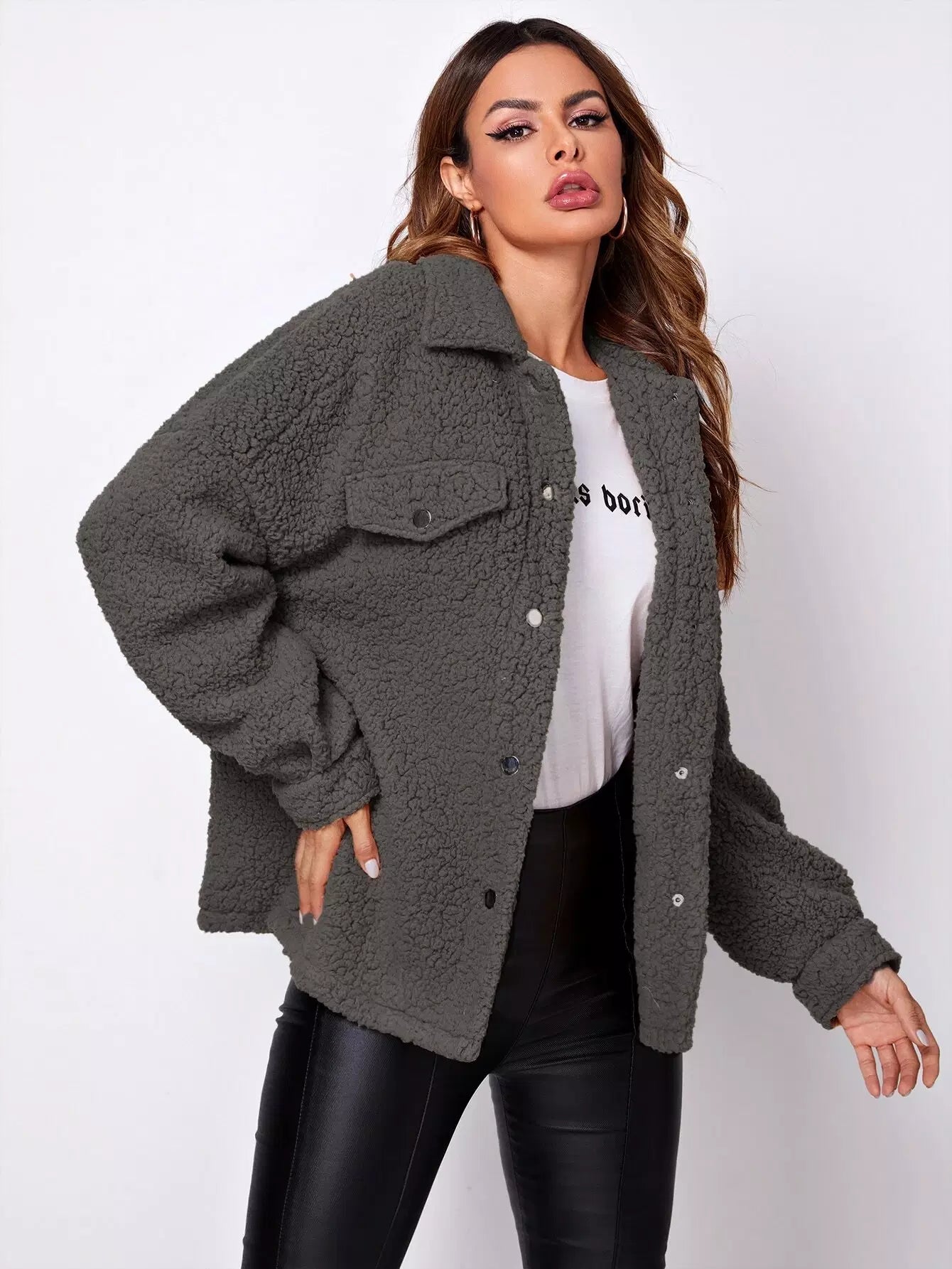 معطف تيدي منسدل الكتف بأزرار مضغوطة