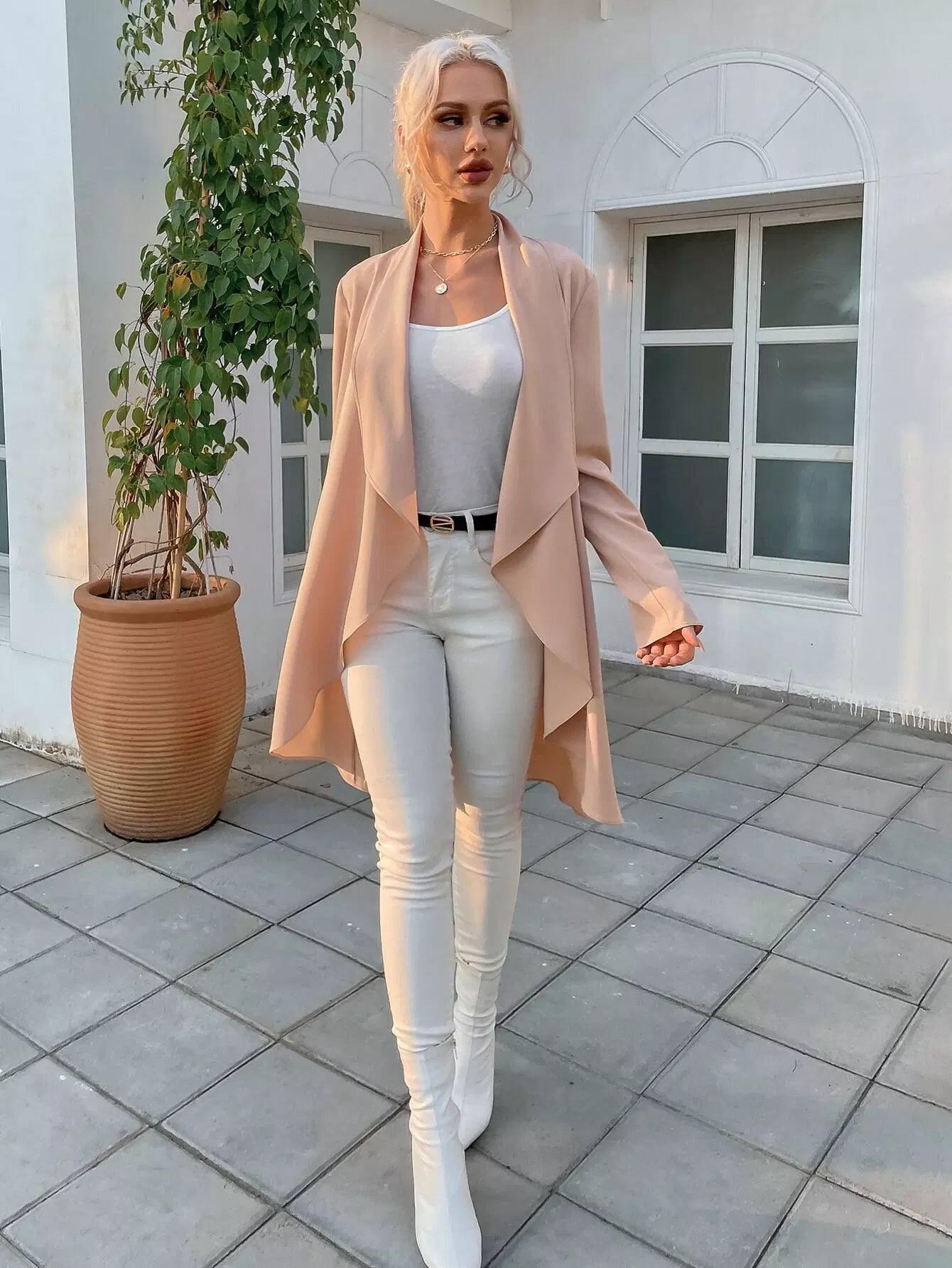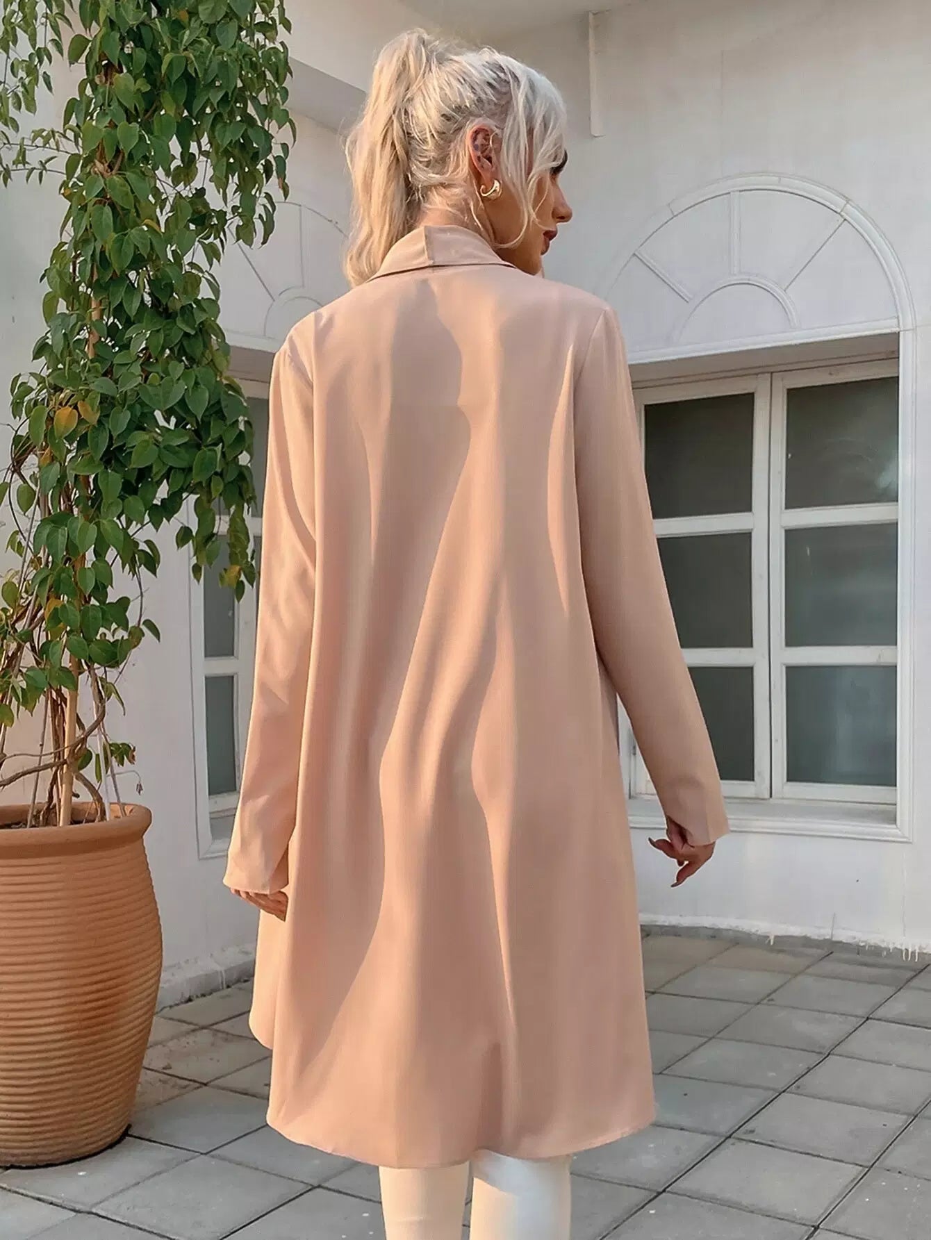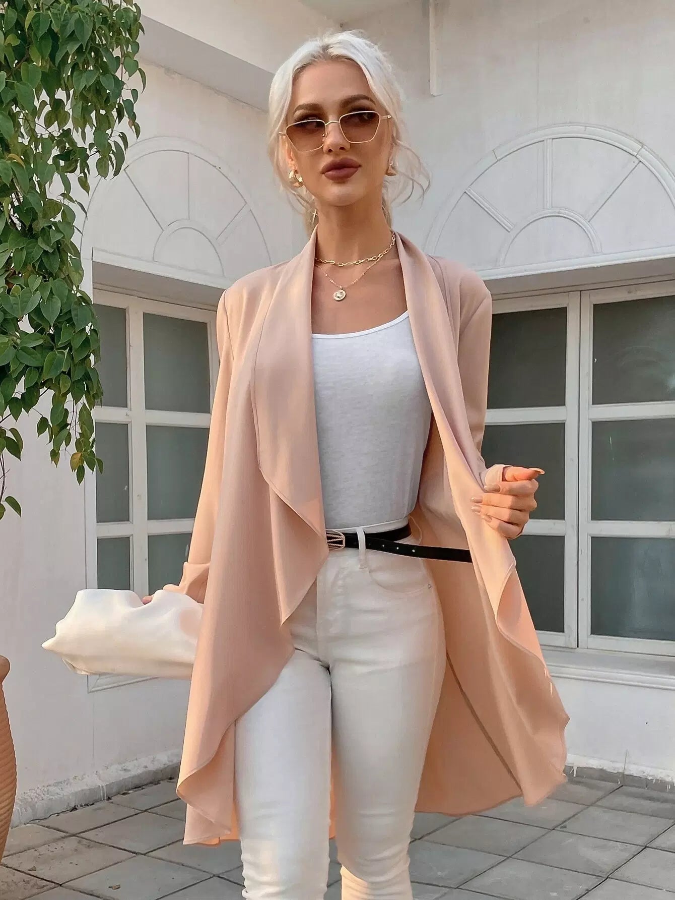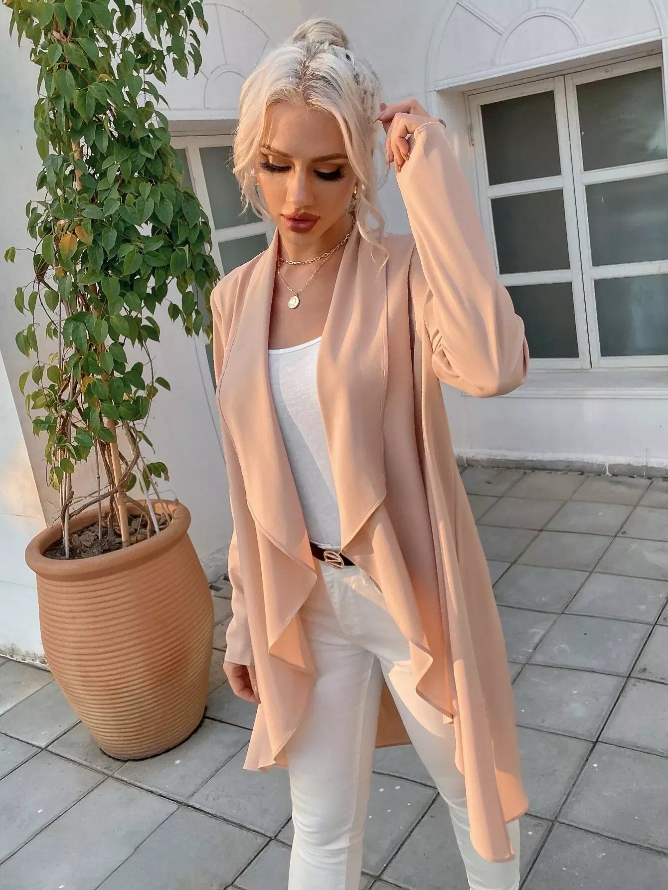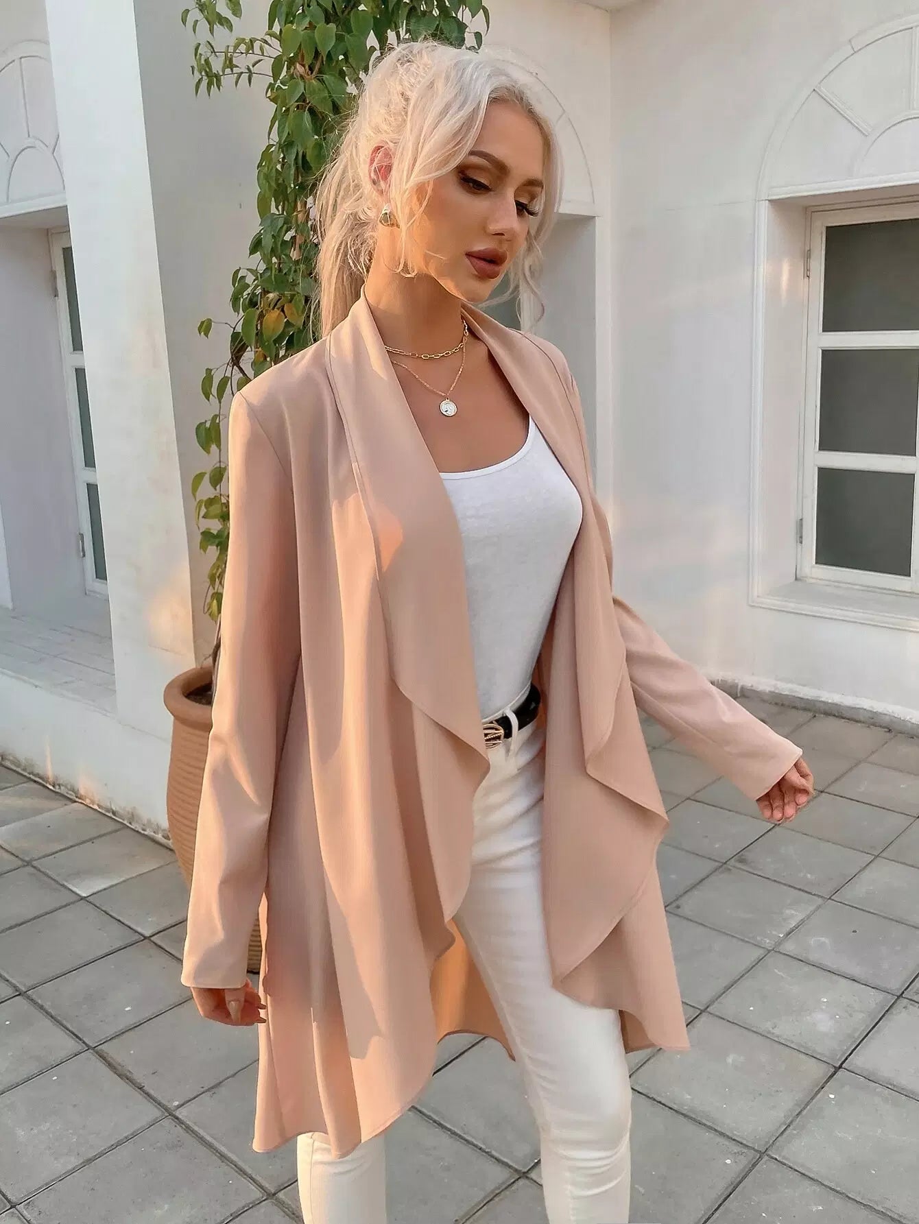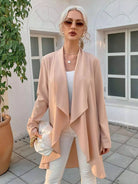 النساء - معطف سادة مفتوح من الأمام مكشكش