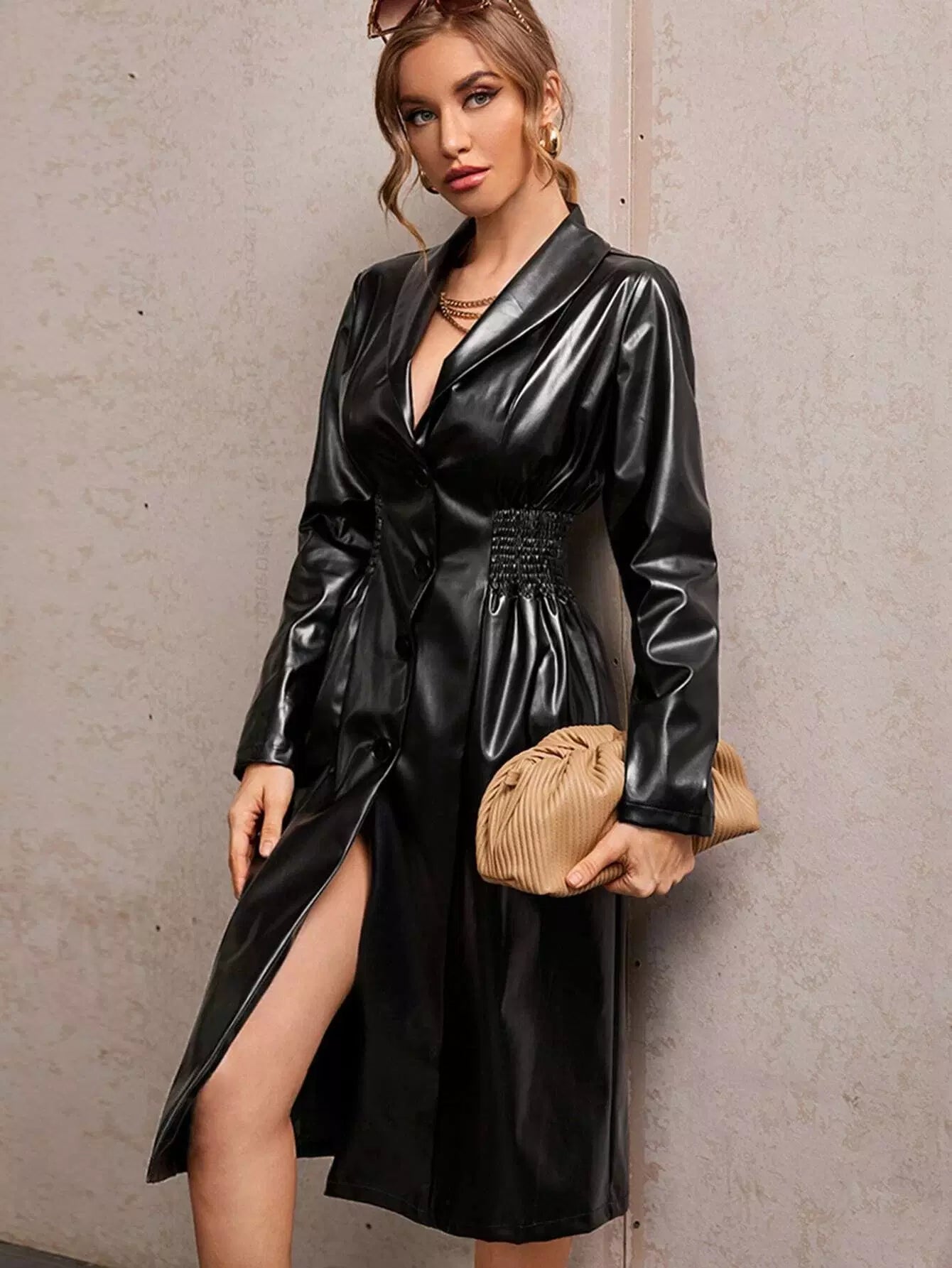 معطف جلدي من البولي يوريثان مع ياقة شال