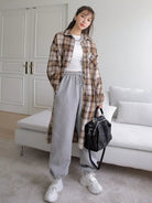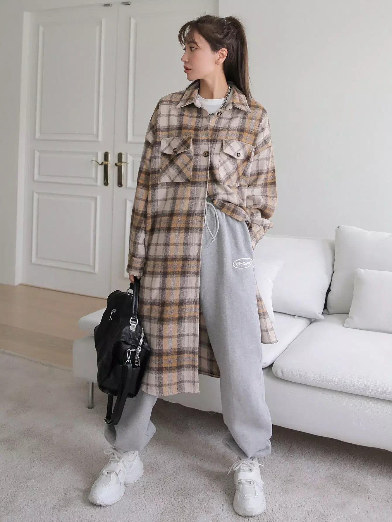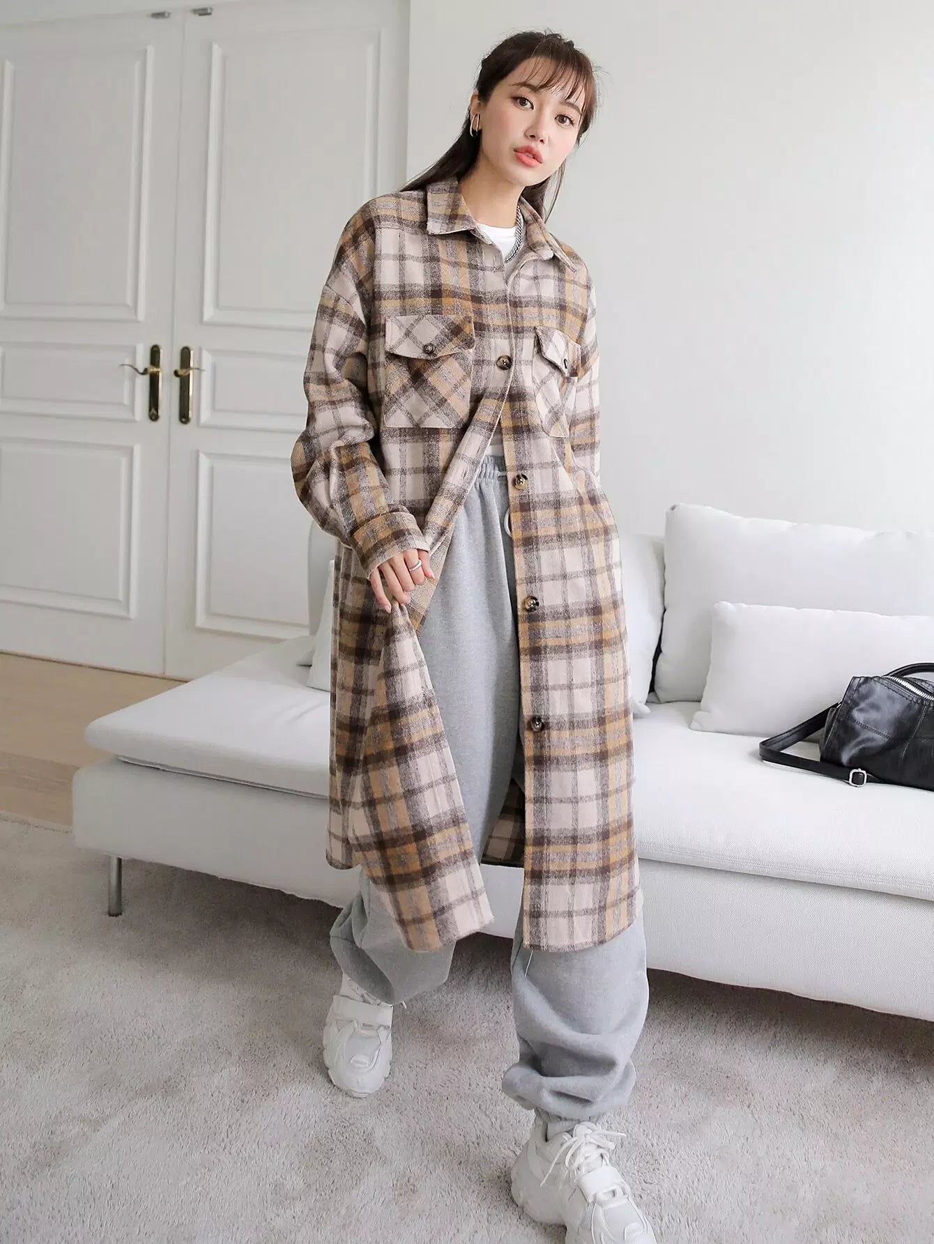 معطف بغطاء كتف منسدل بجيب منسدل من الترتان