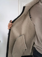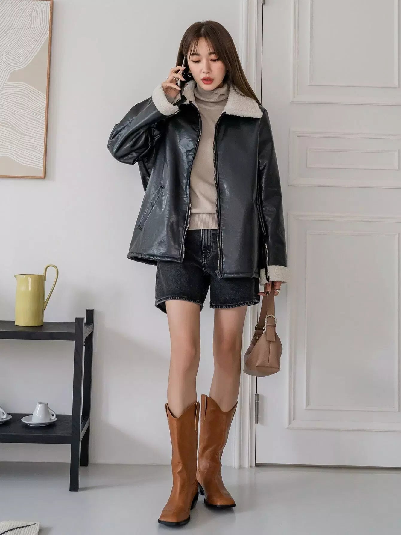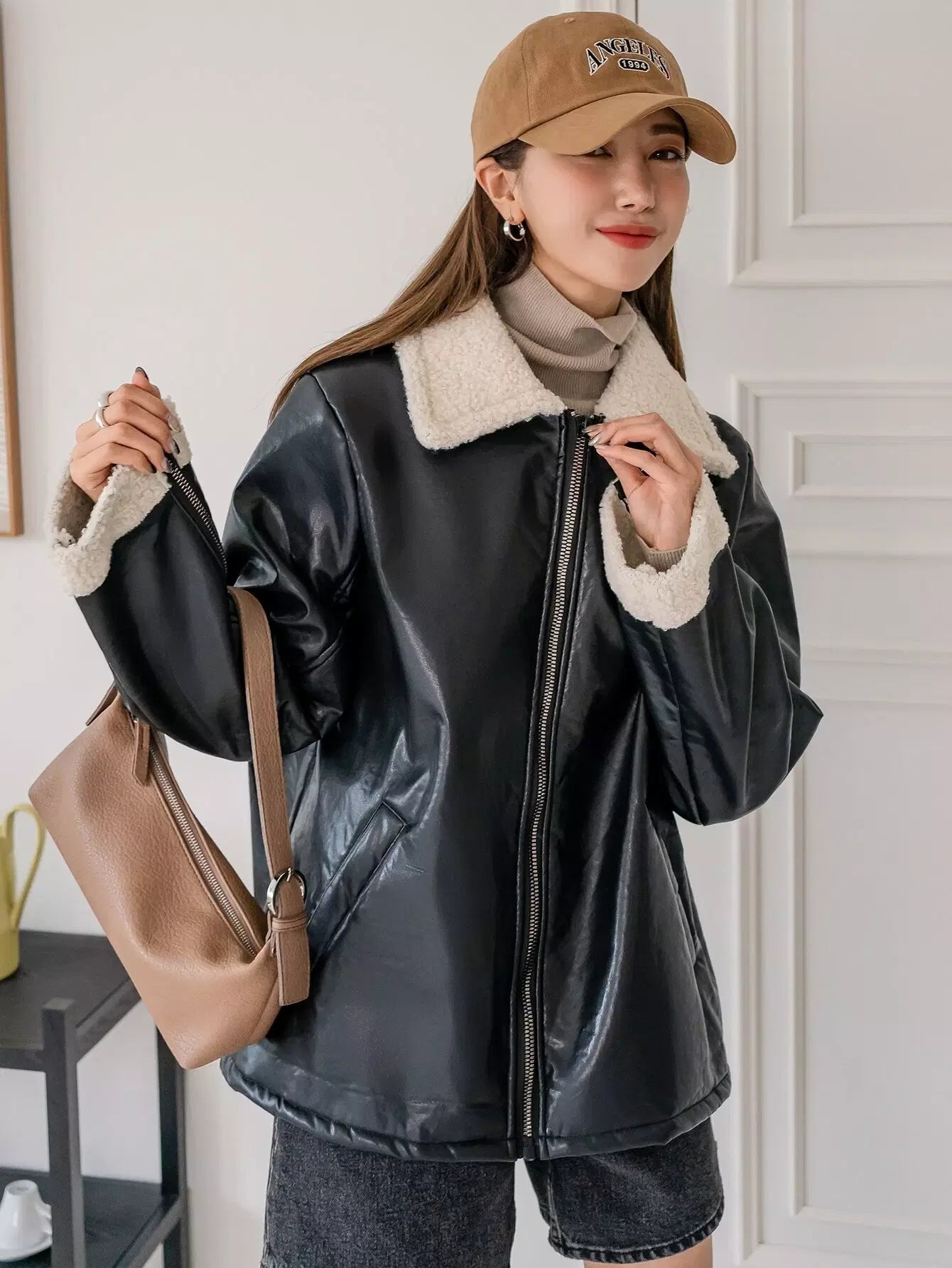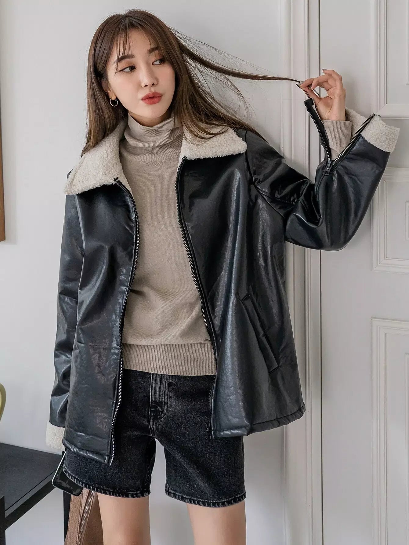 معطف من جلد البولي يوريثان مبطن بالجلد