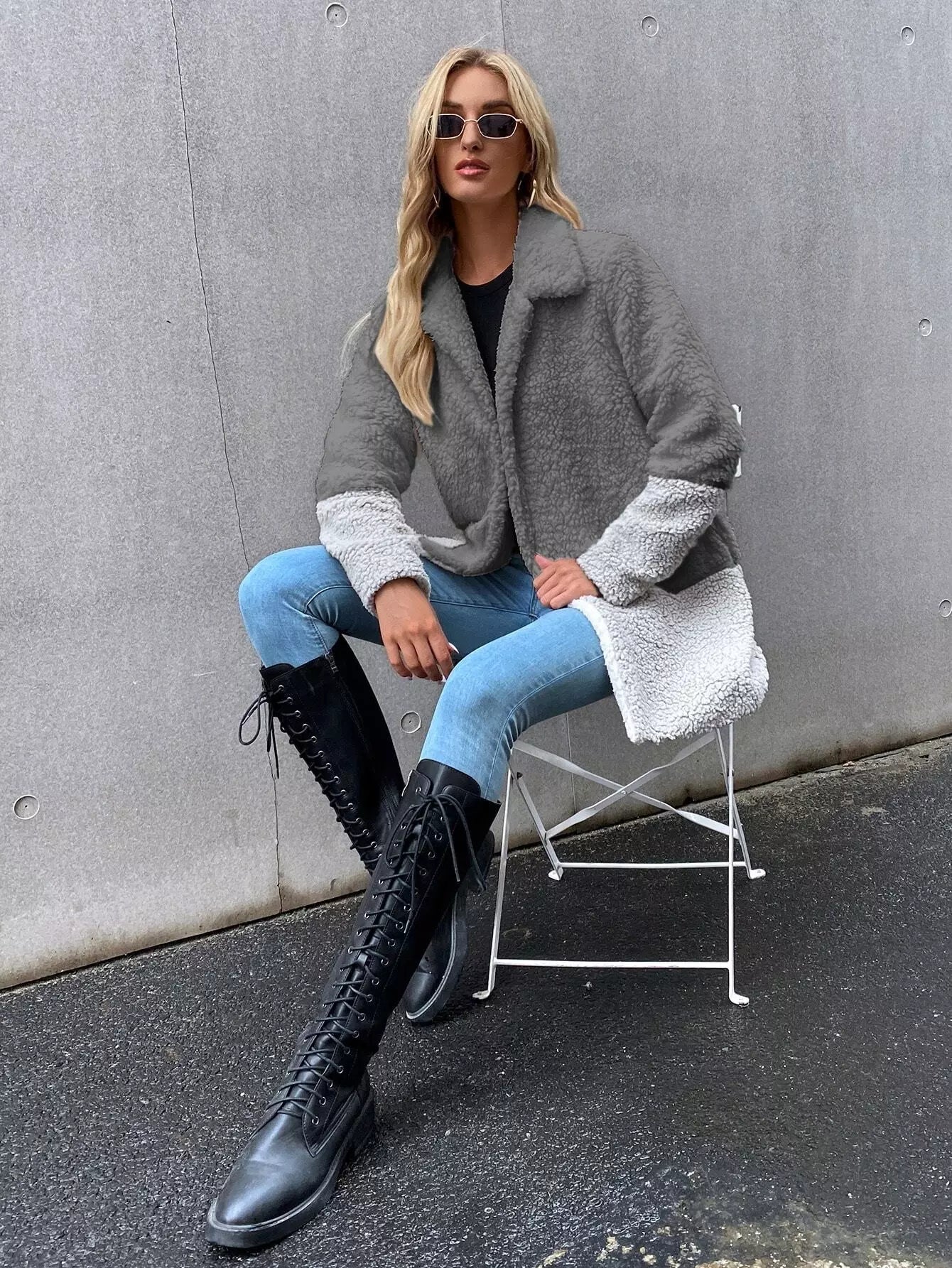 معطف مفتوح من الأمام بلونين مفتوح من الأمام