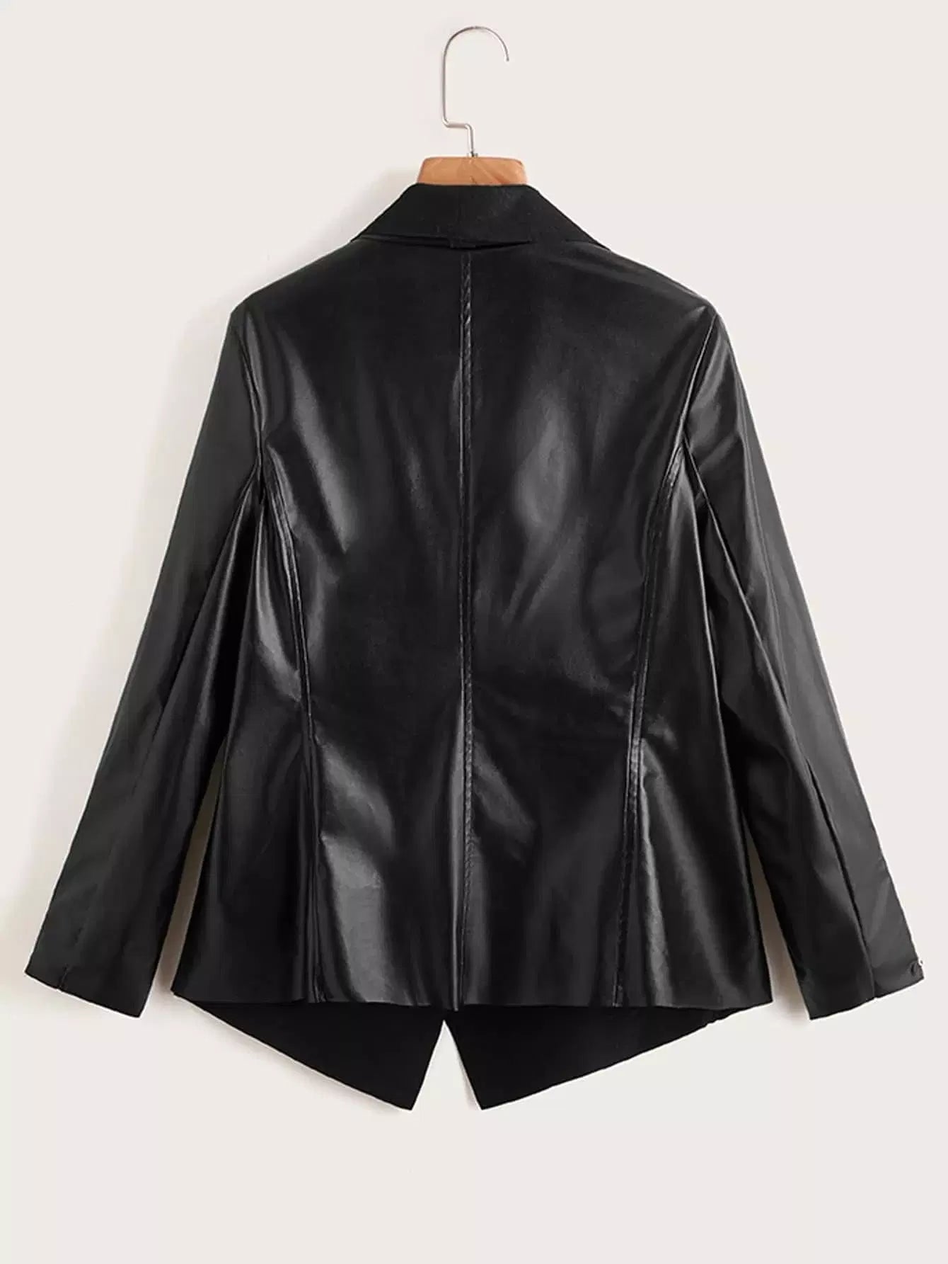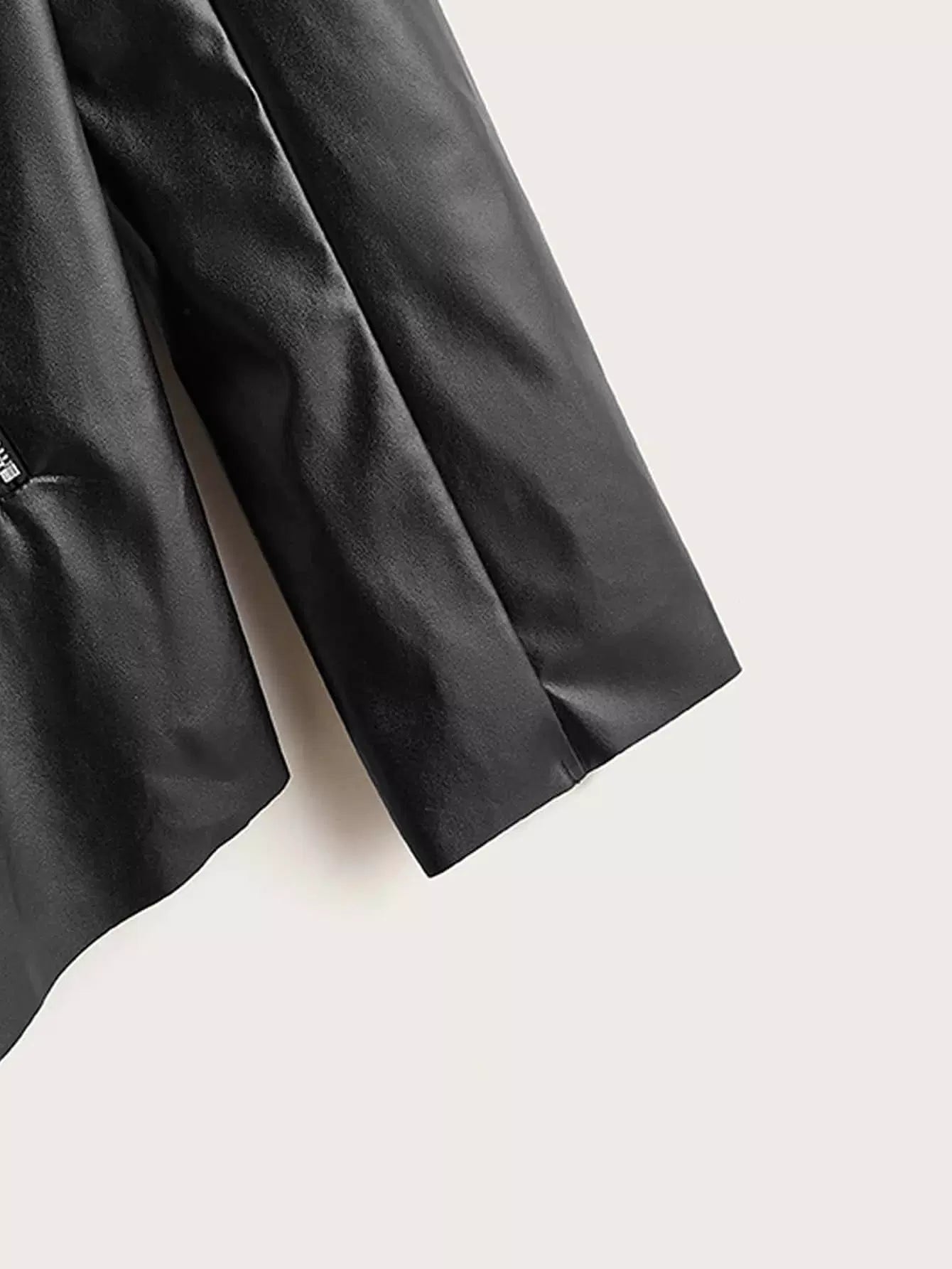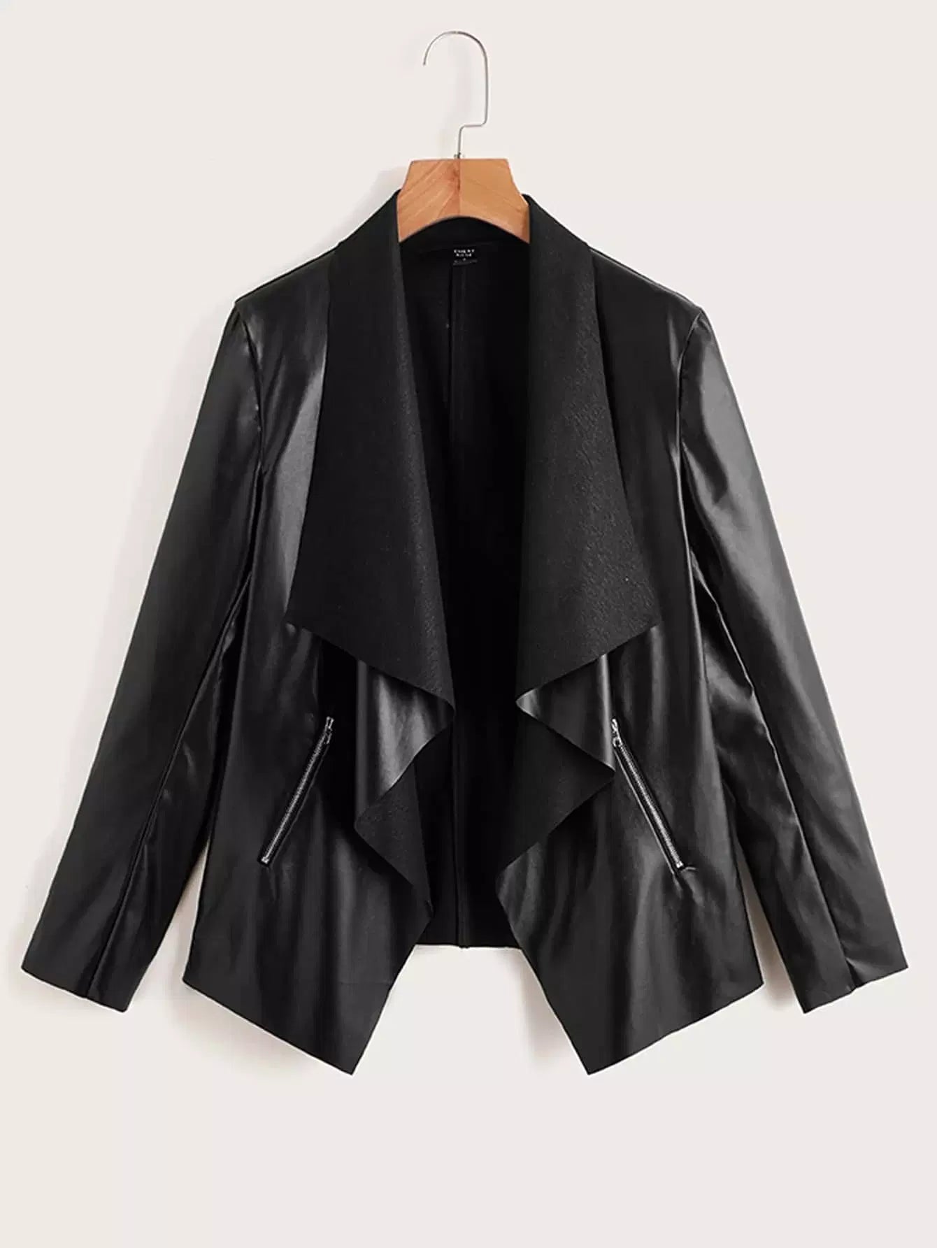 معطف من جلد البولي يوريثان بياقة شلال مفتوحة من الأمام