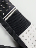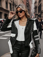 Women's Fall/Winter Faux Leather Biker Jacket - Diamond Studded, Asymmetric Zip For Edgy Cold-Weather