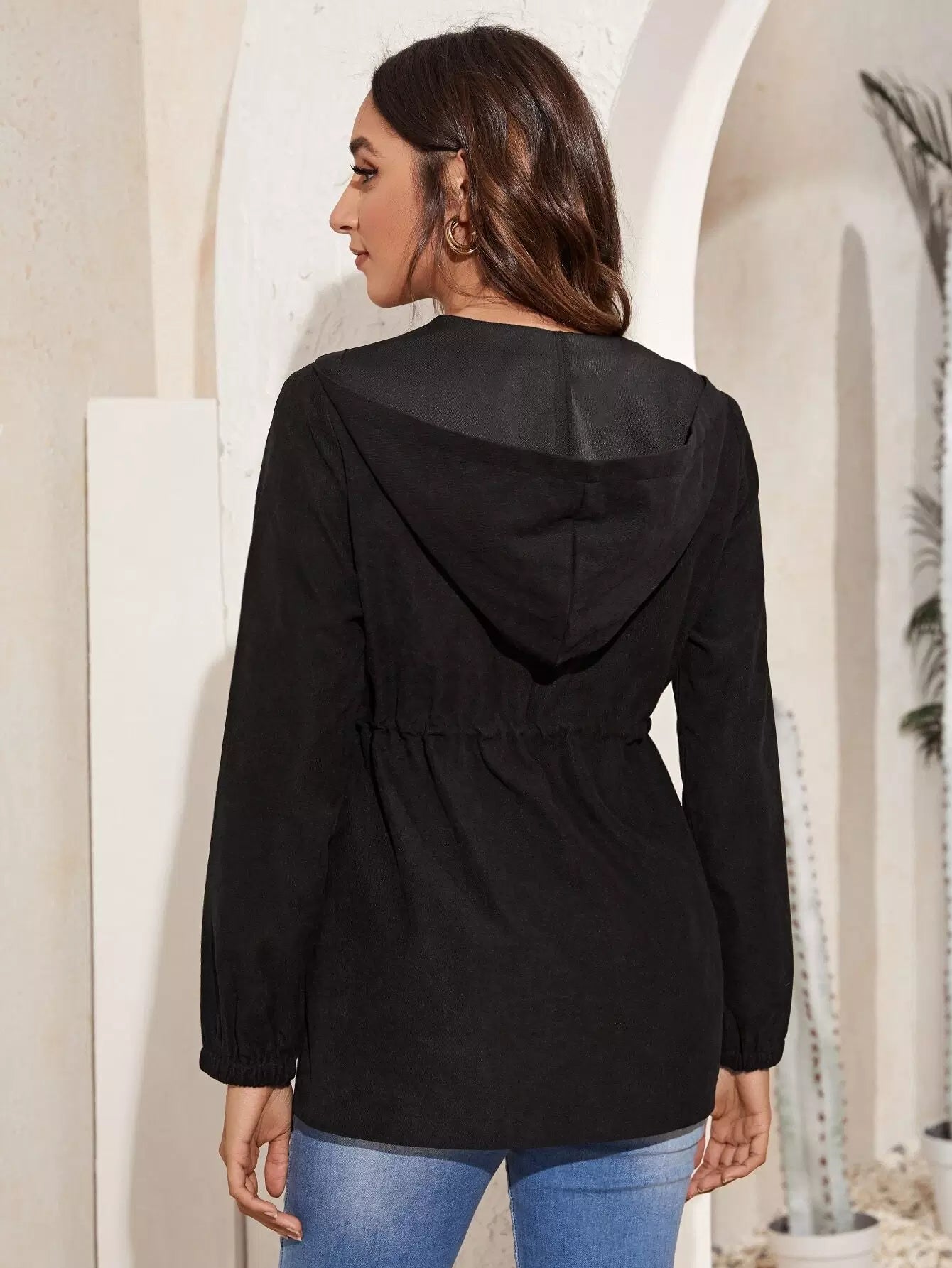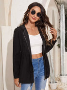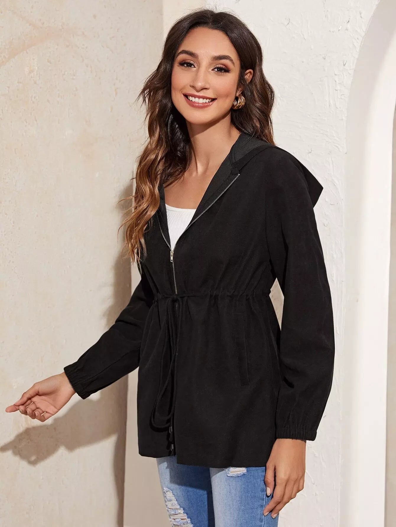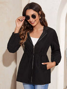 معطف بقبعة برباط على الخصر بسحاب