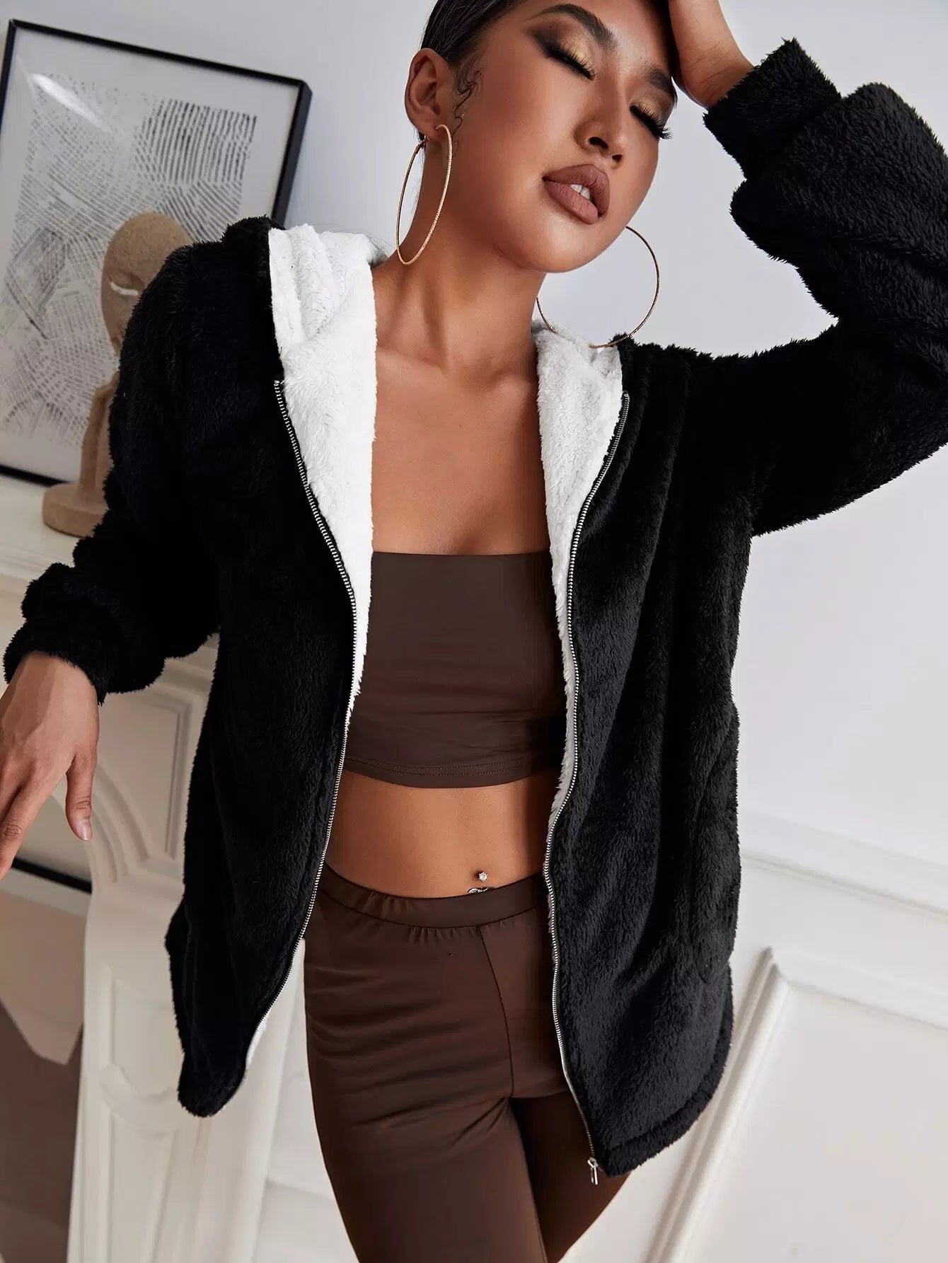 معطف تيدي بقلنسوة بسحاب