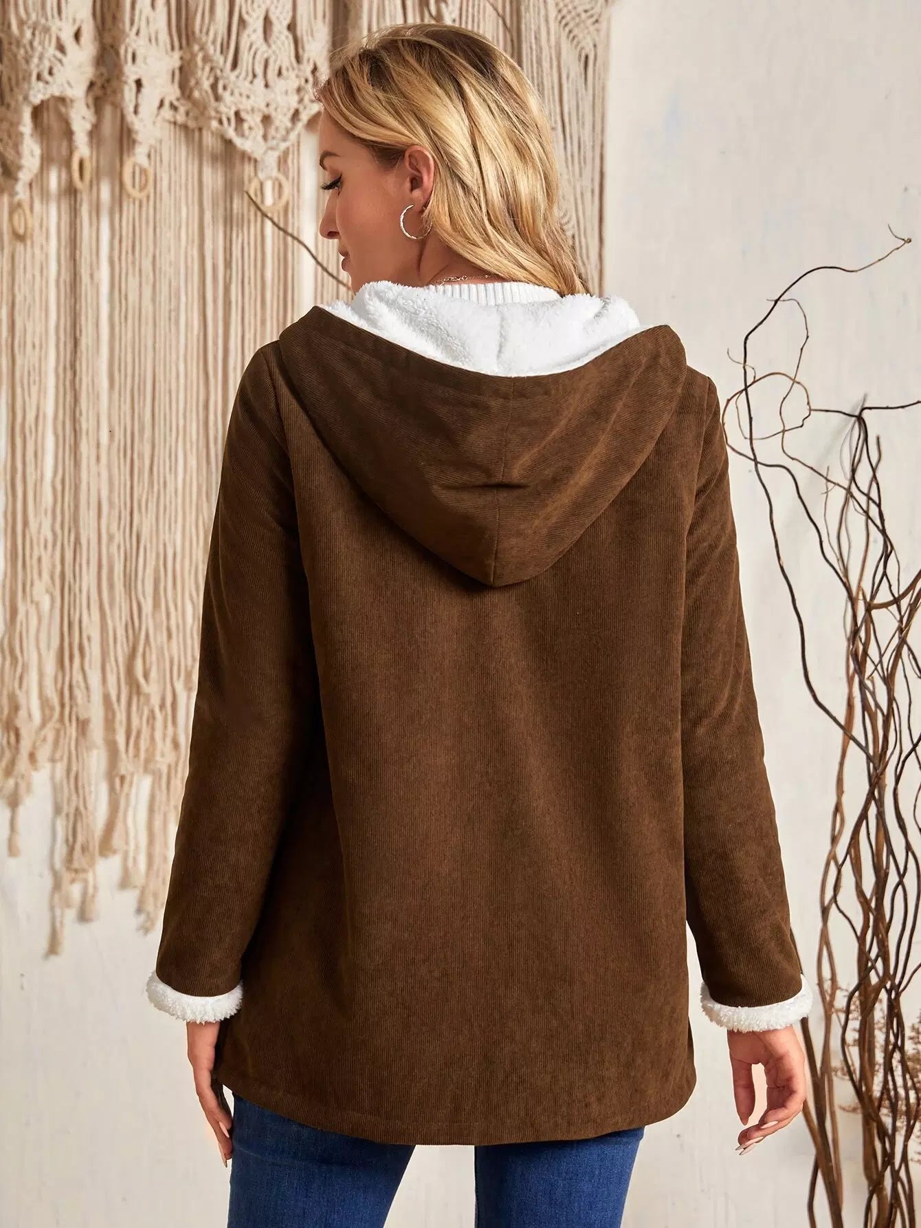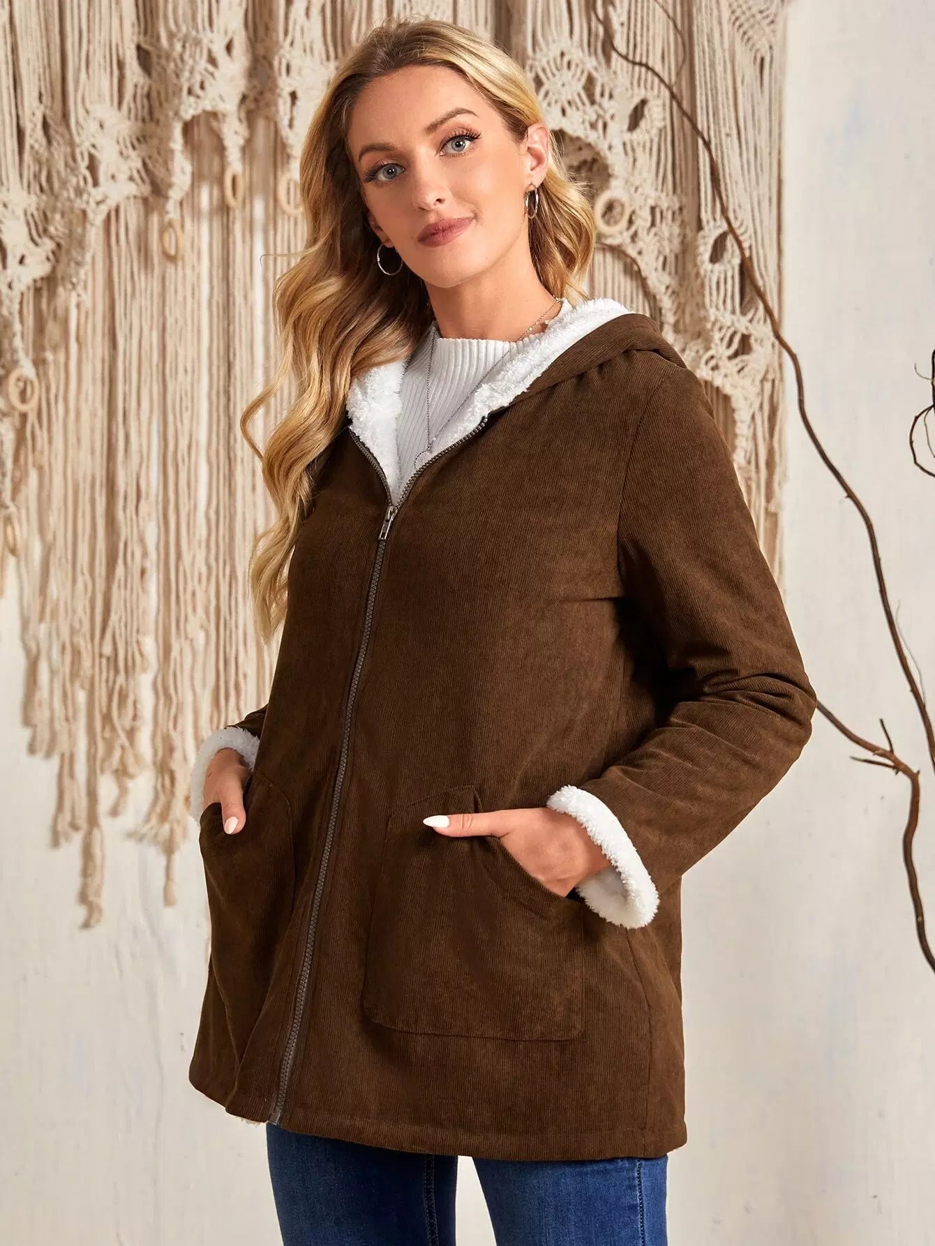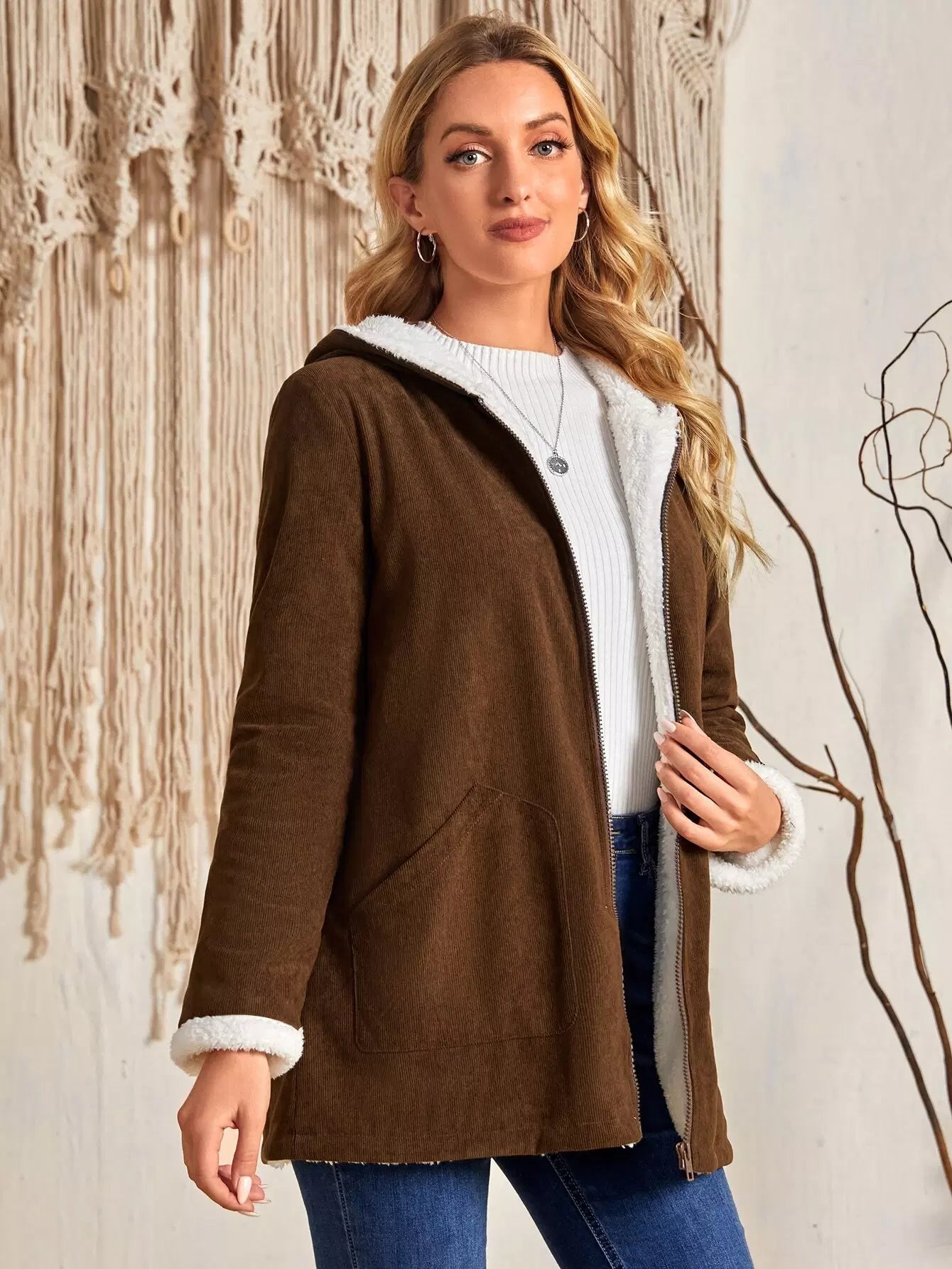 معطف فانيلا مبطن بسحاب بغطاء للرأس مبطّن بغطاء من الفانيلا
