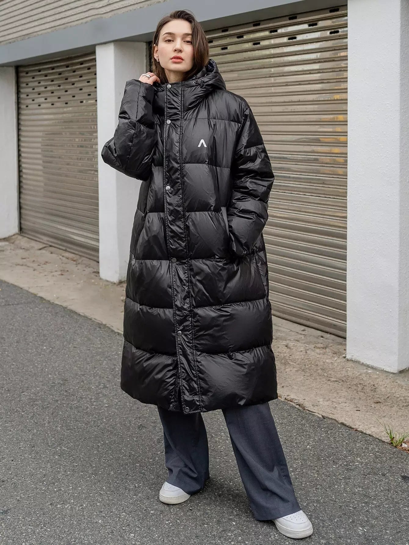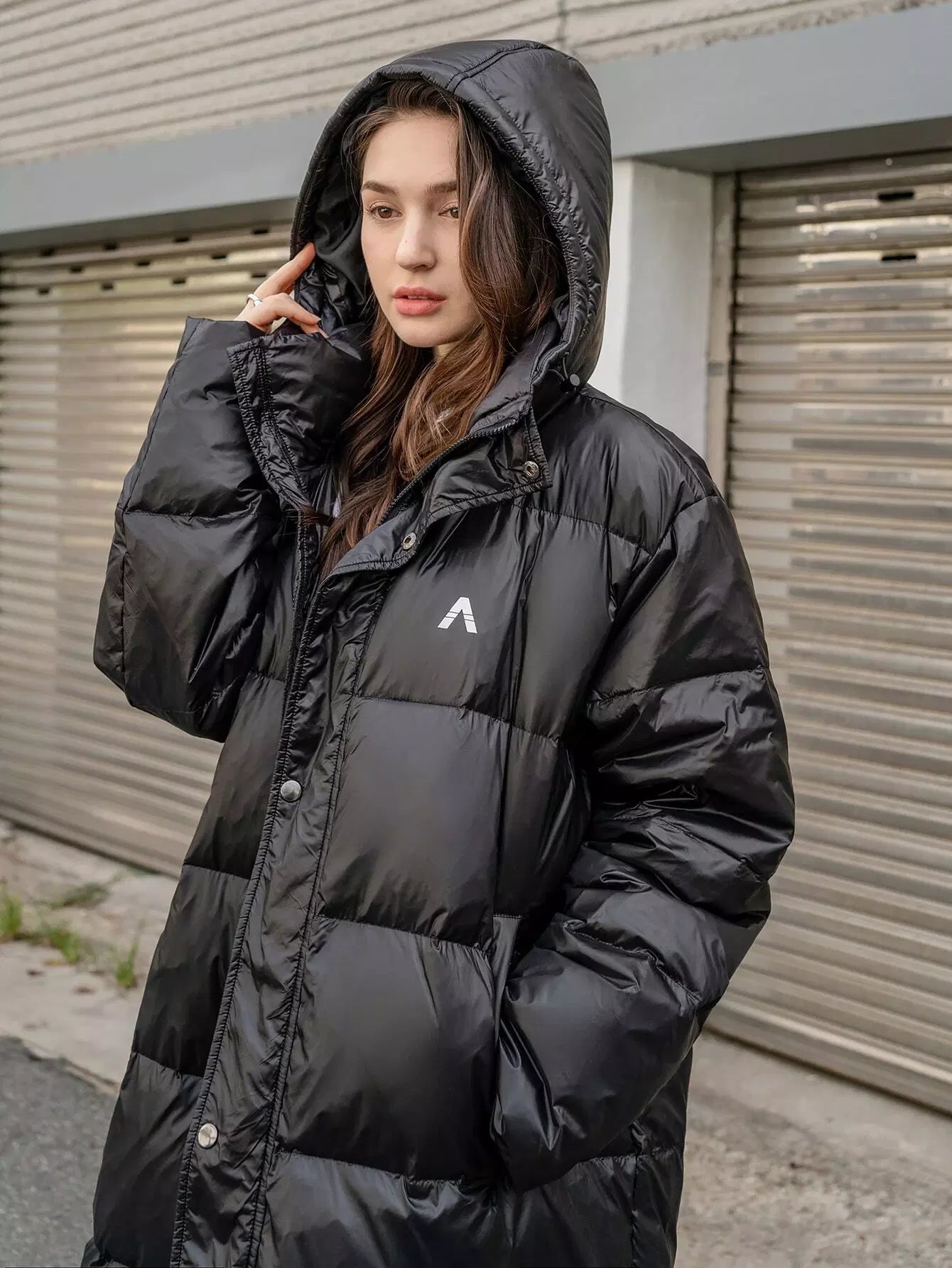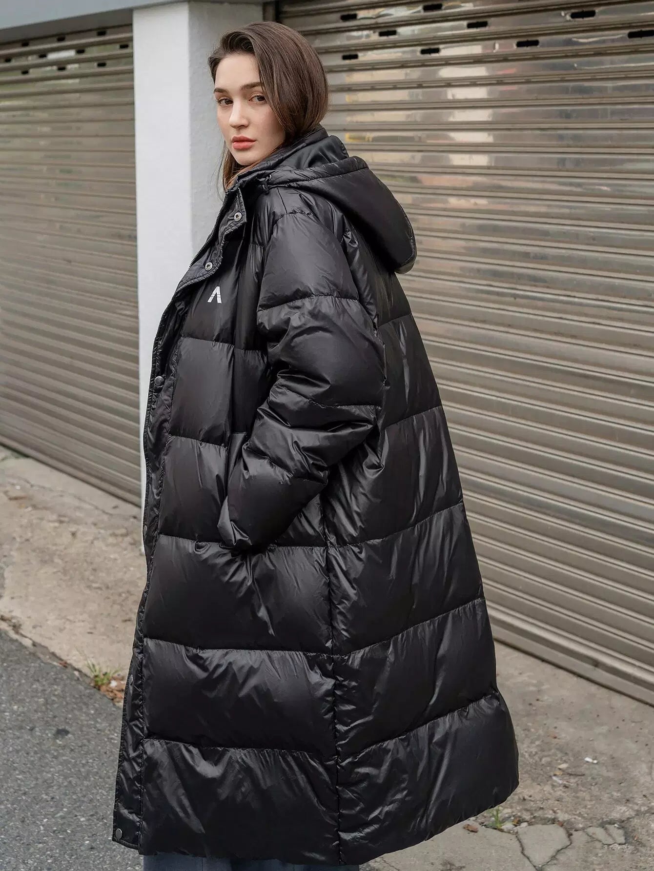 معطف بغطاء طويل منفوخ بقلنسوة برسومات حروف