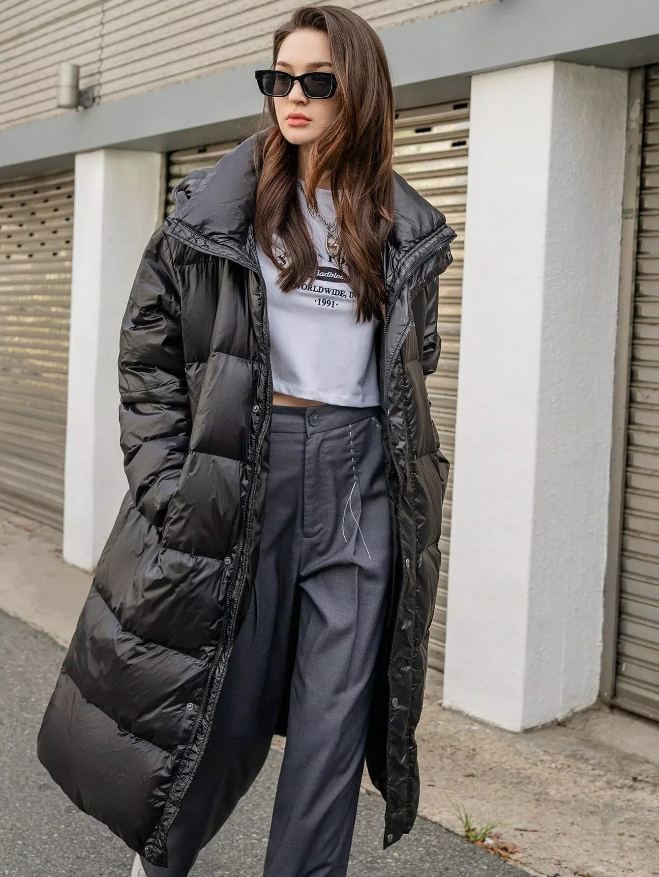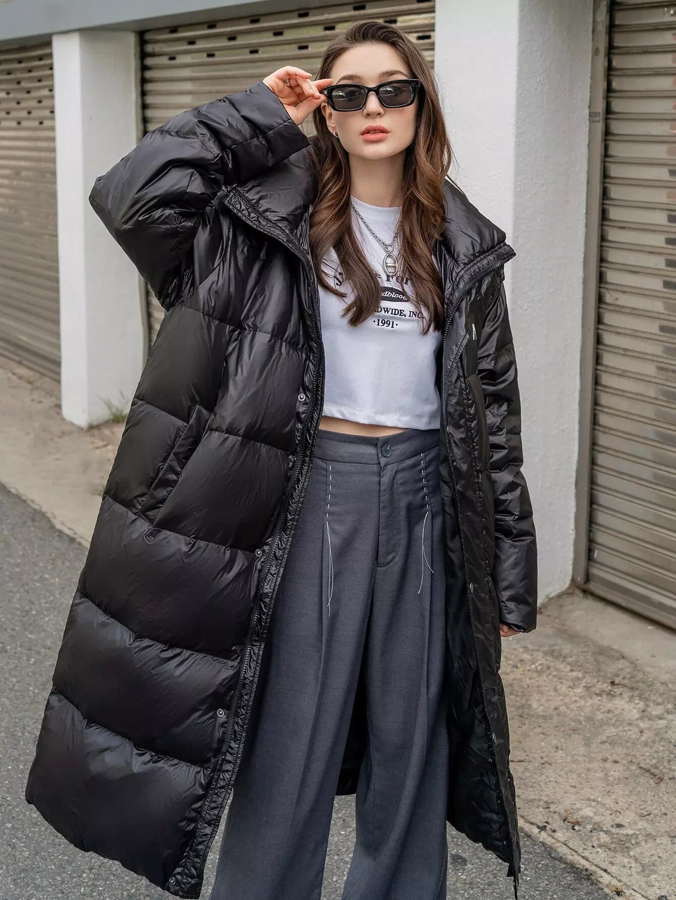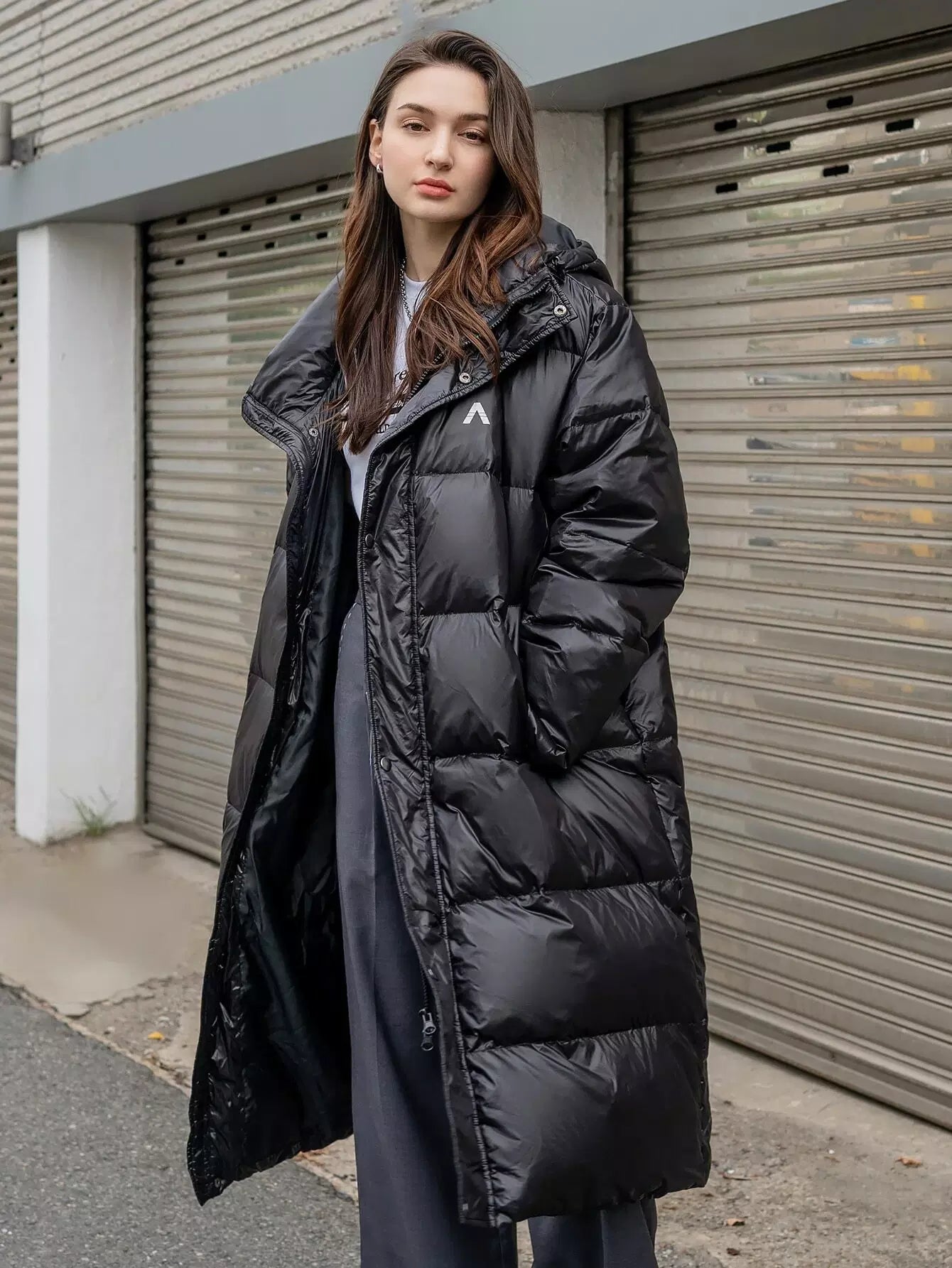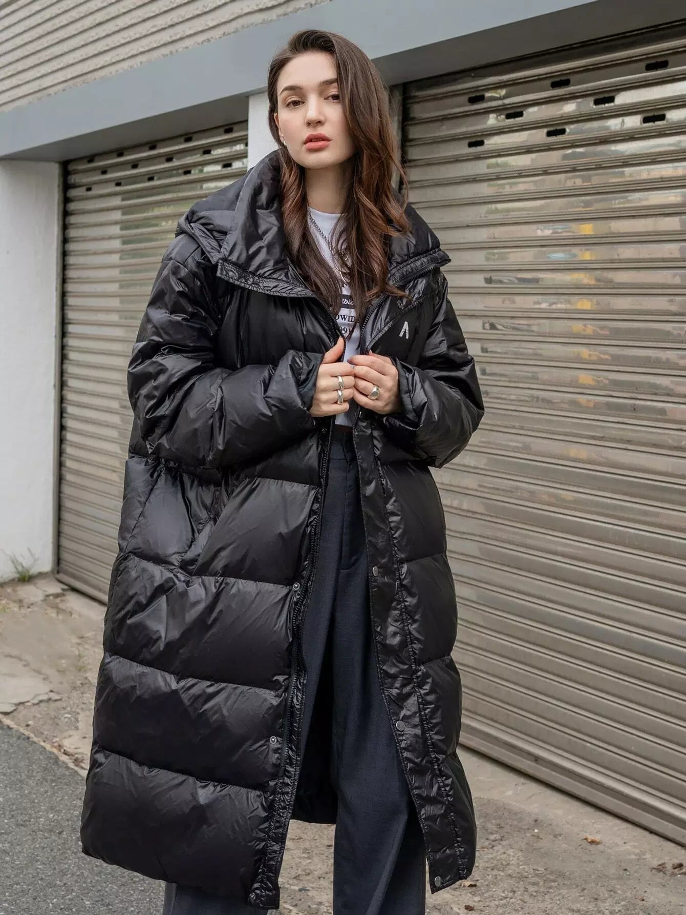 معطف بغطاء طويل منفوخ بقلنسوة برسومات حروف