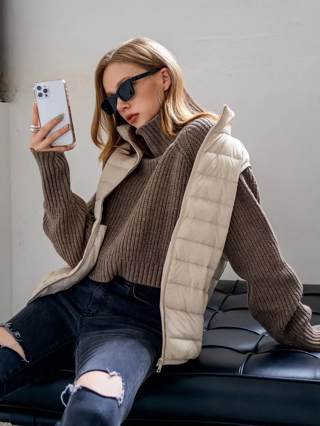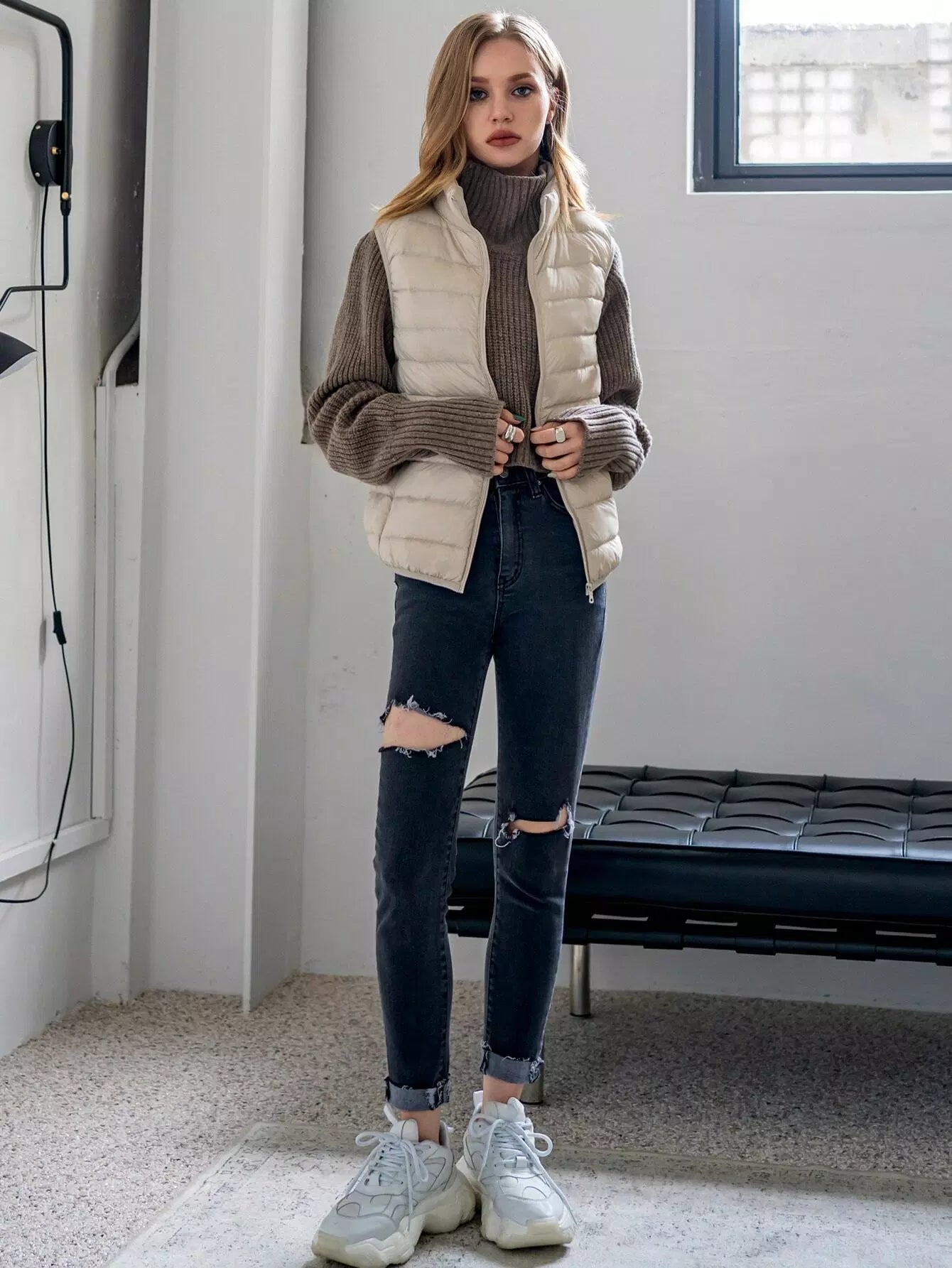 معطف سادة بلا أكمام سادة بلا أكمام خفيف الوزن قابل للتعبئة