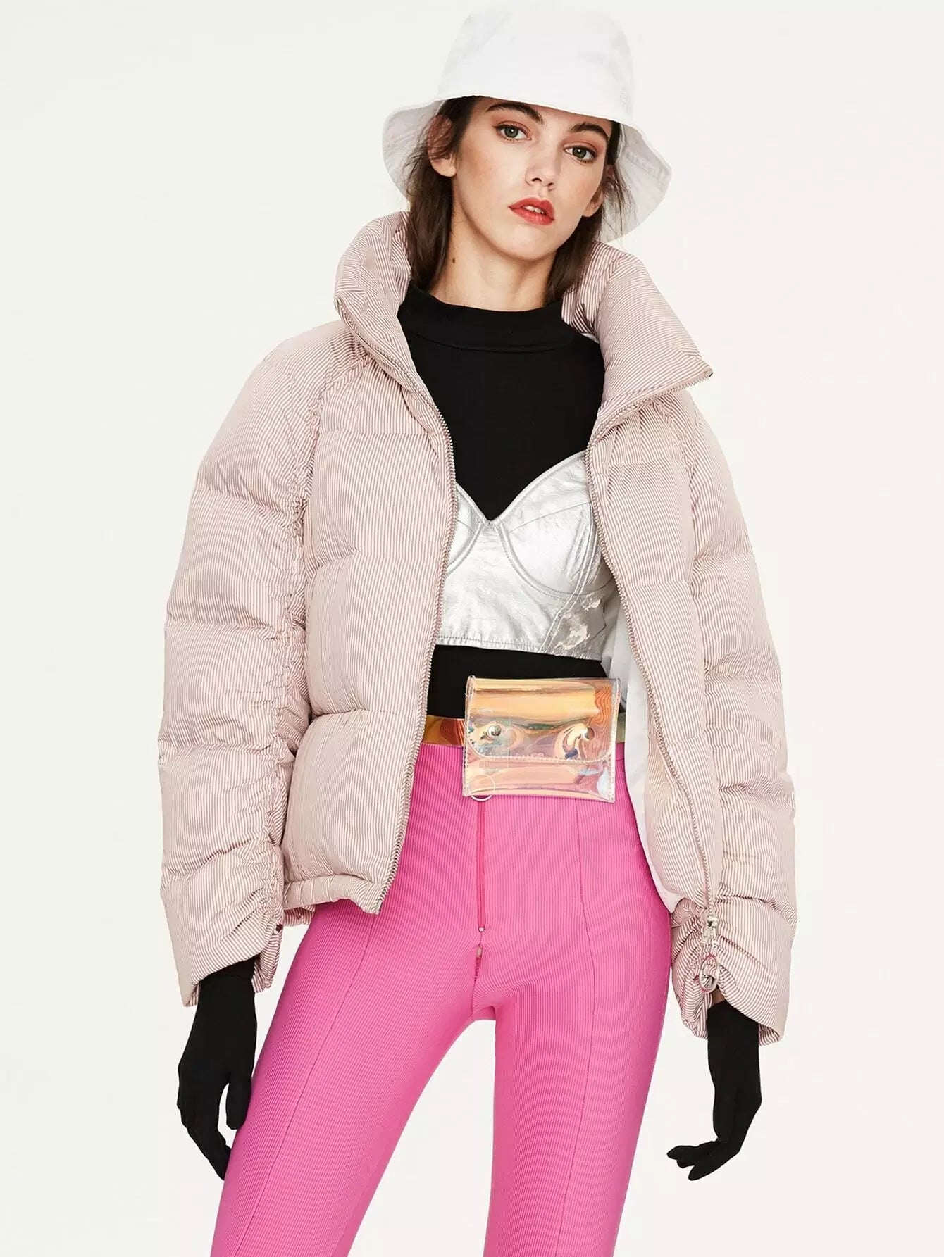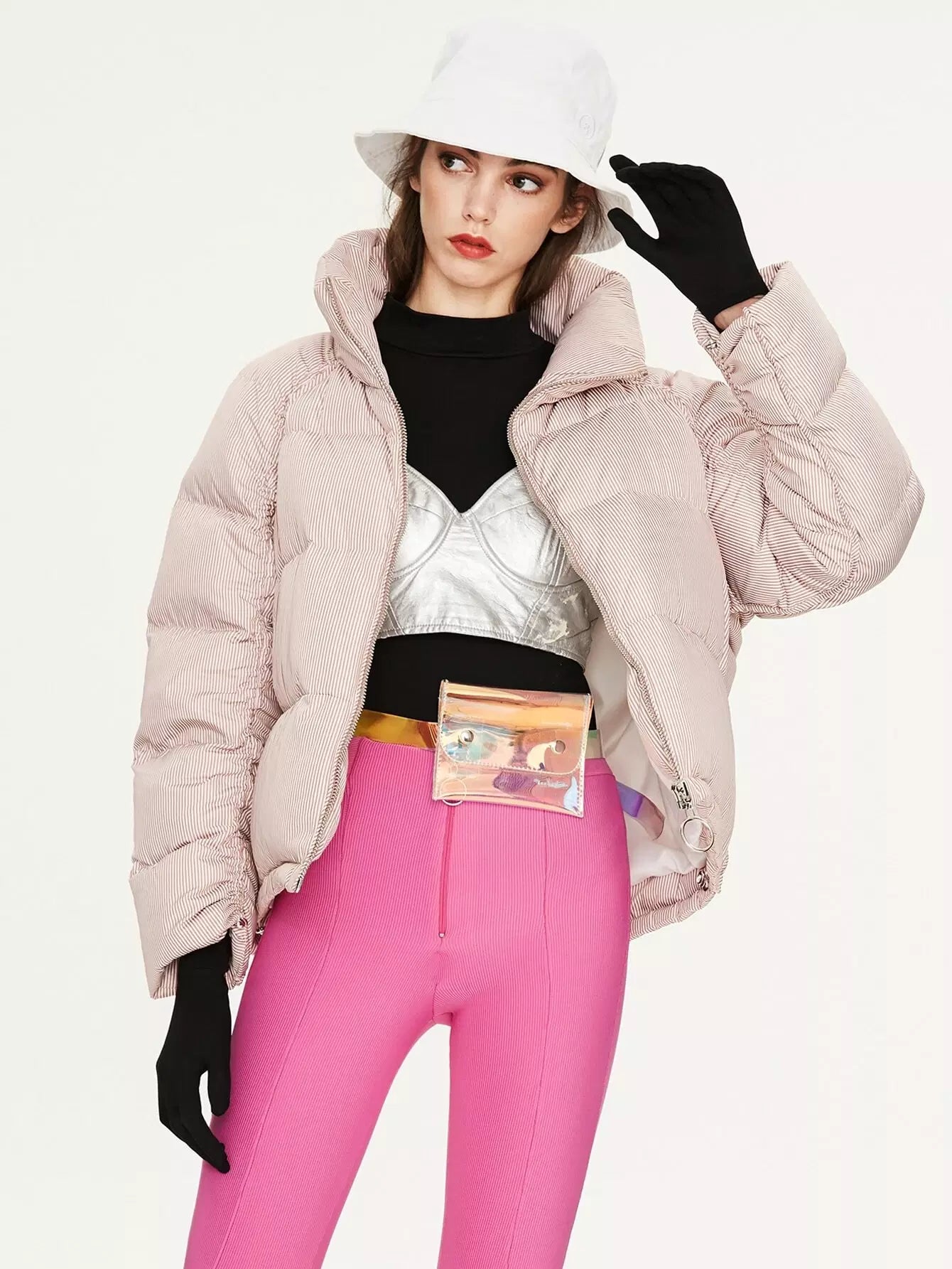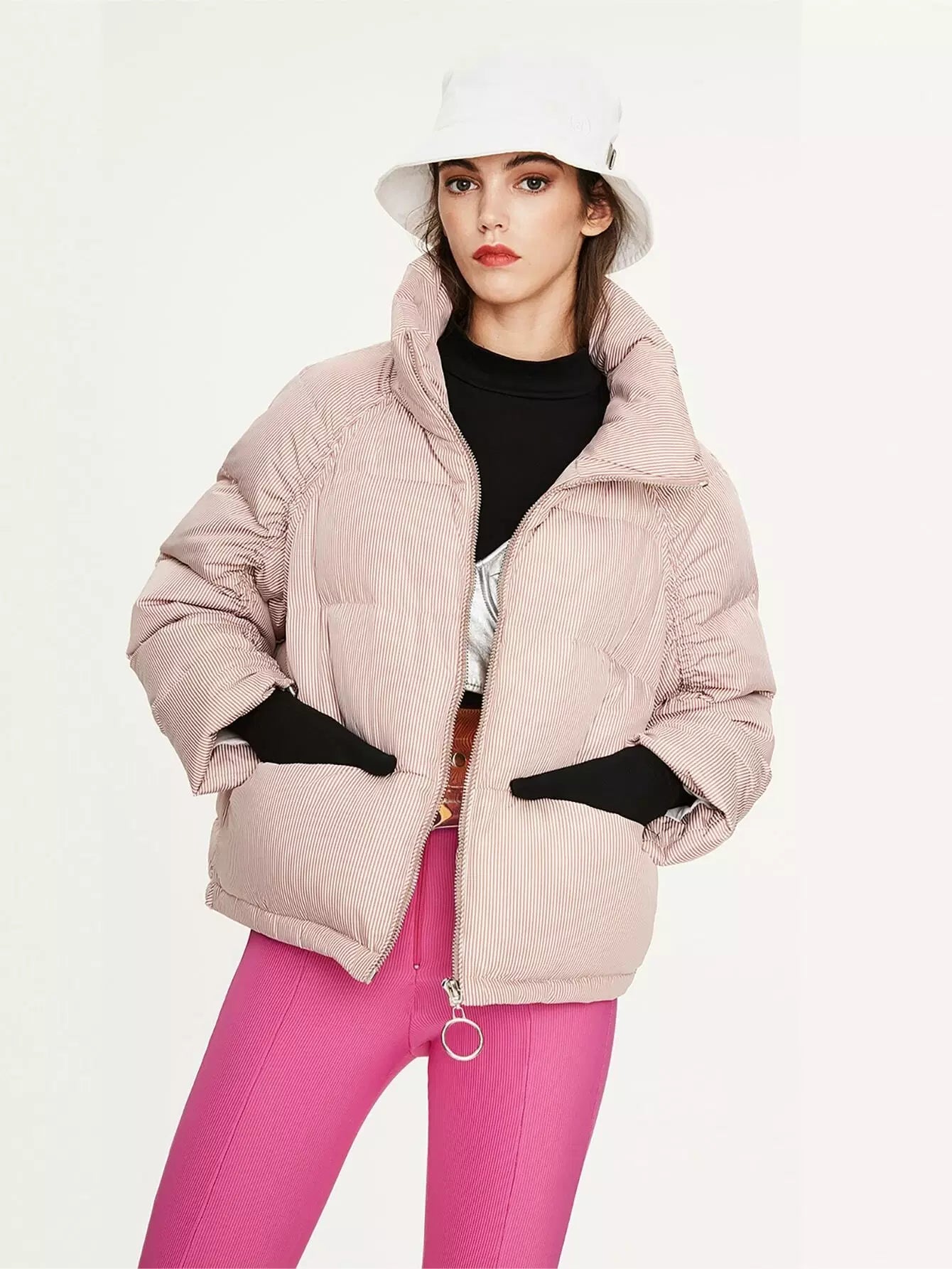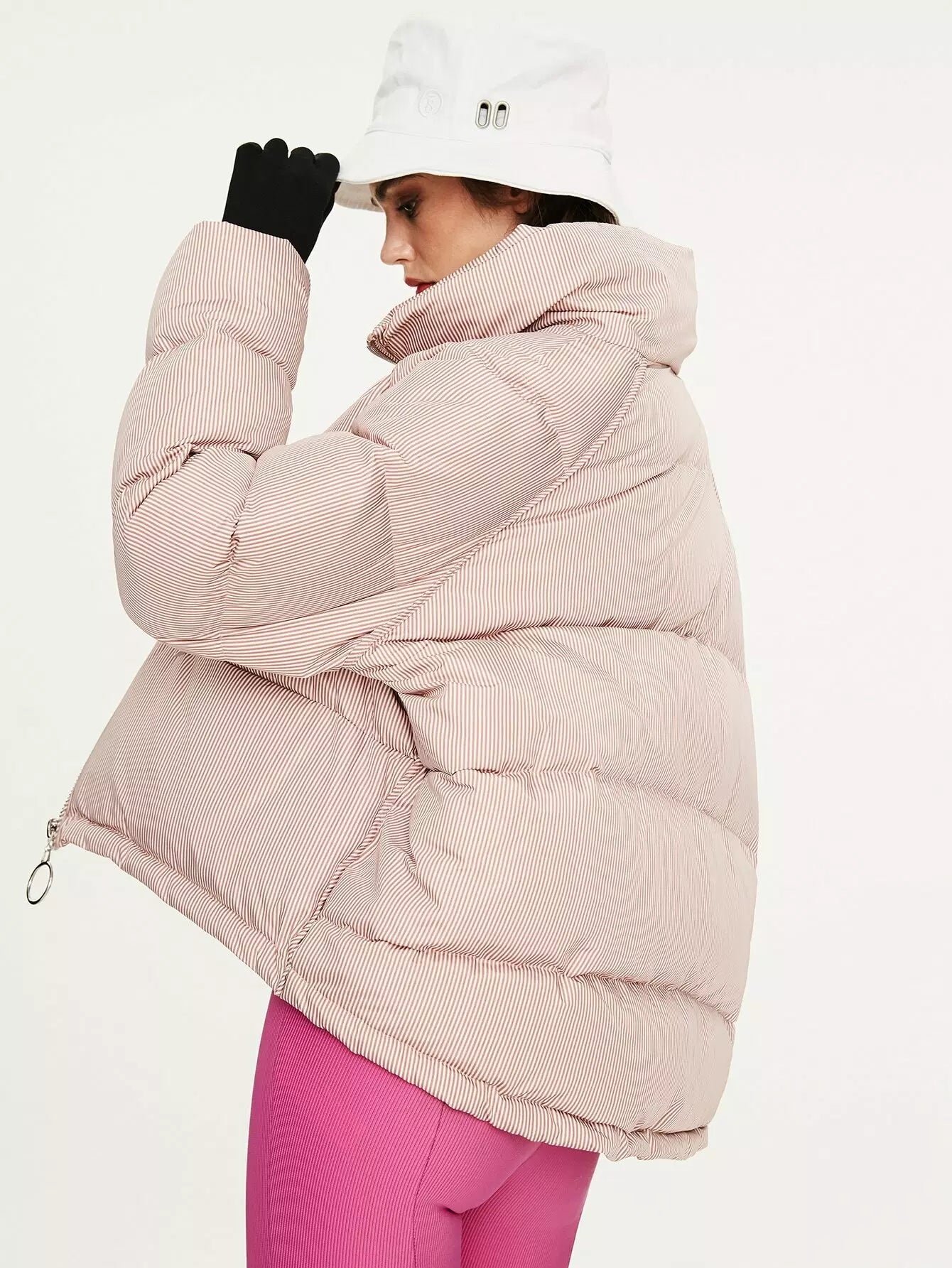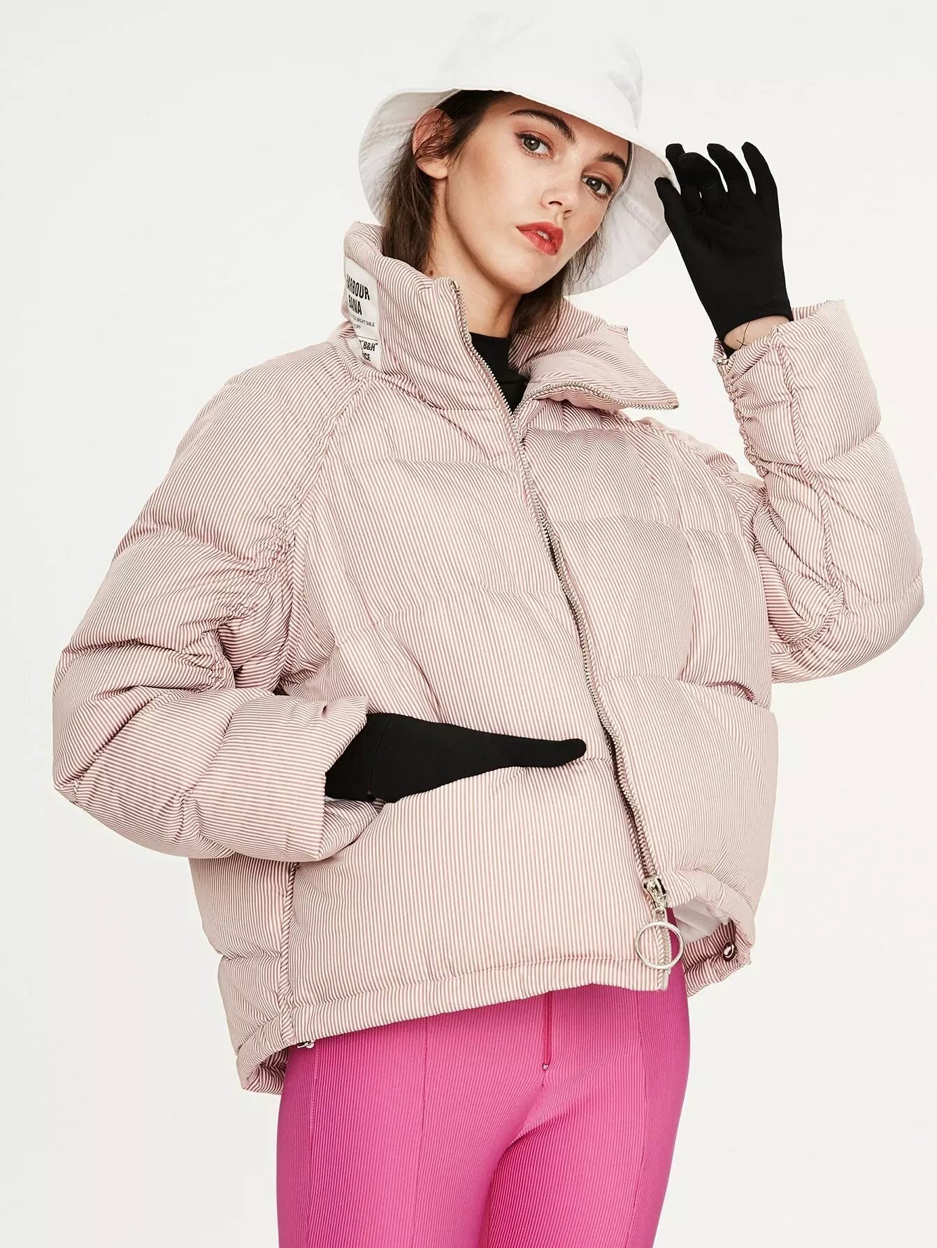 معطف بأكمام راجلان بأكمام سحاب مخطط من الأسفل