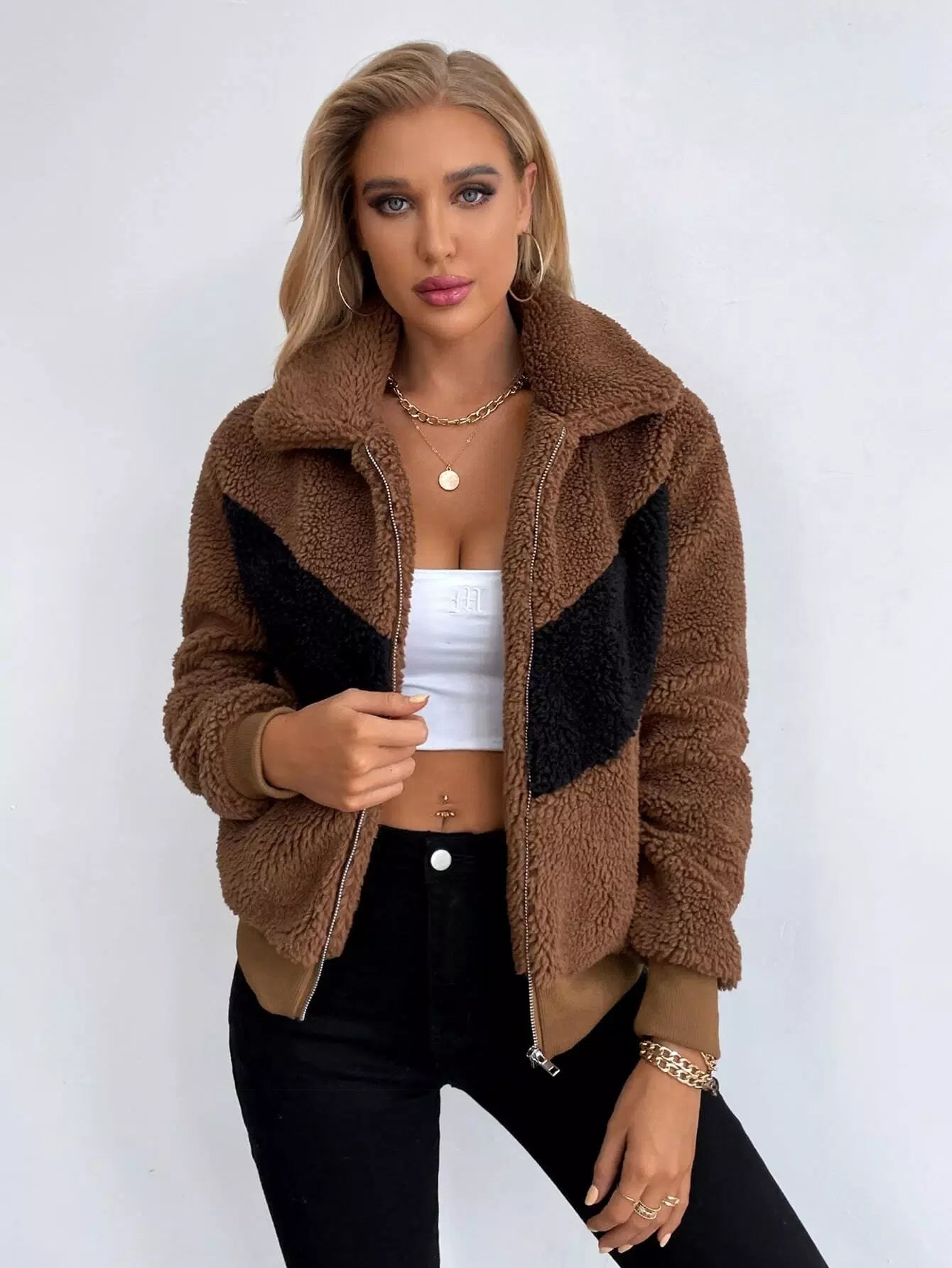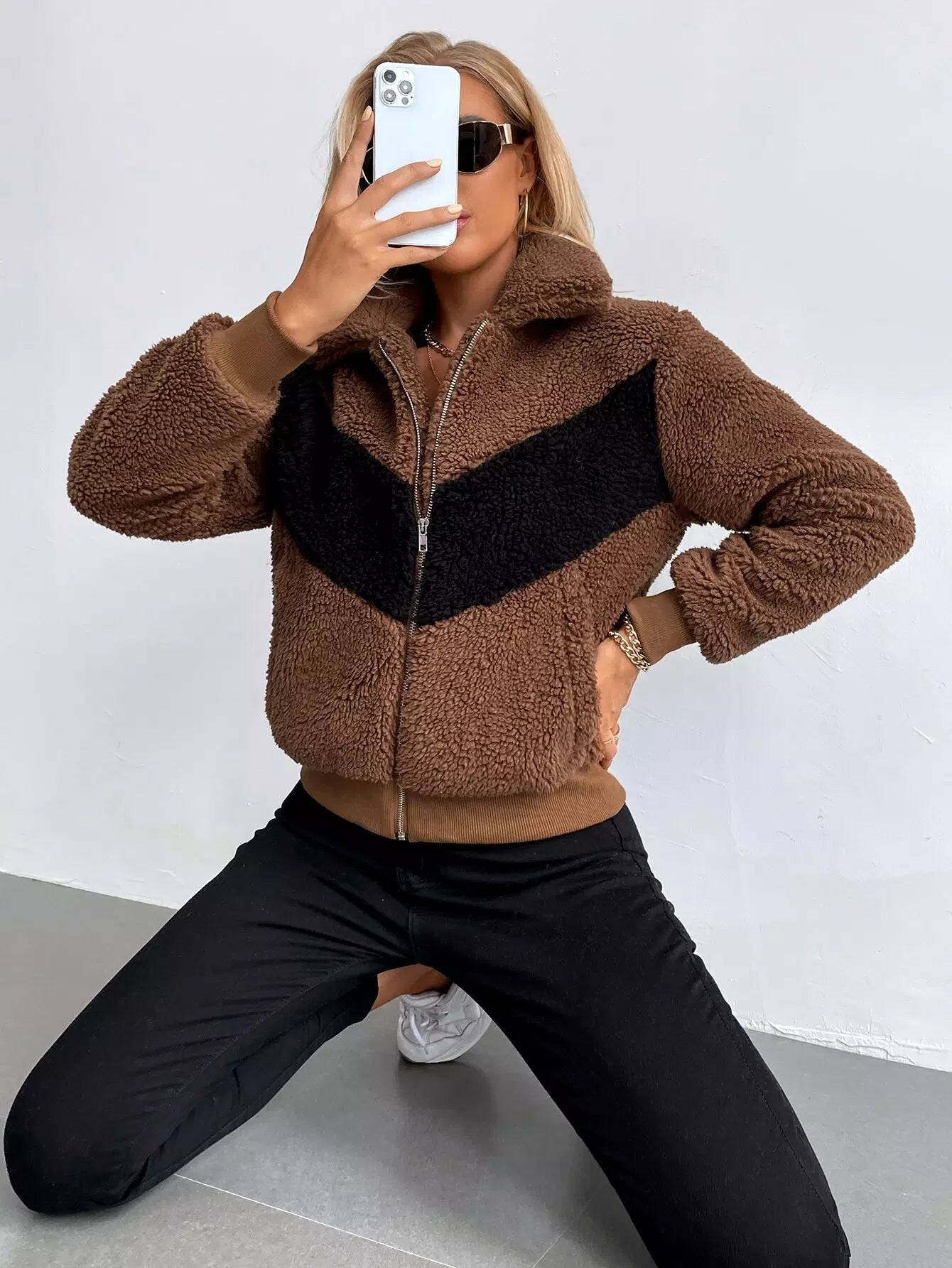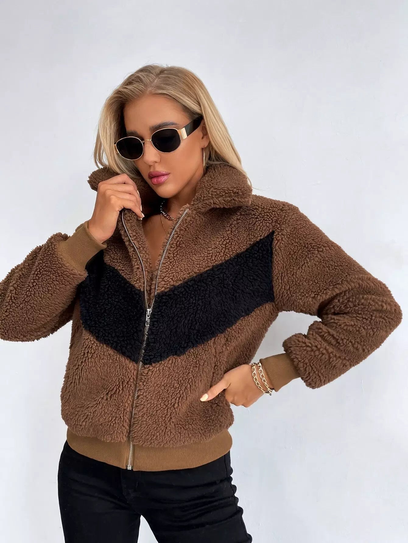 جاكيت تيدي بطبعة شيفرون بسحاب بلونين