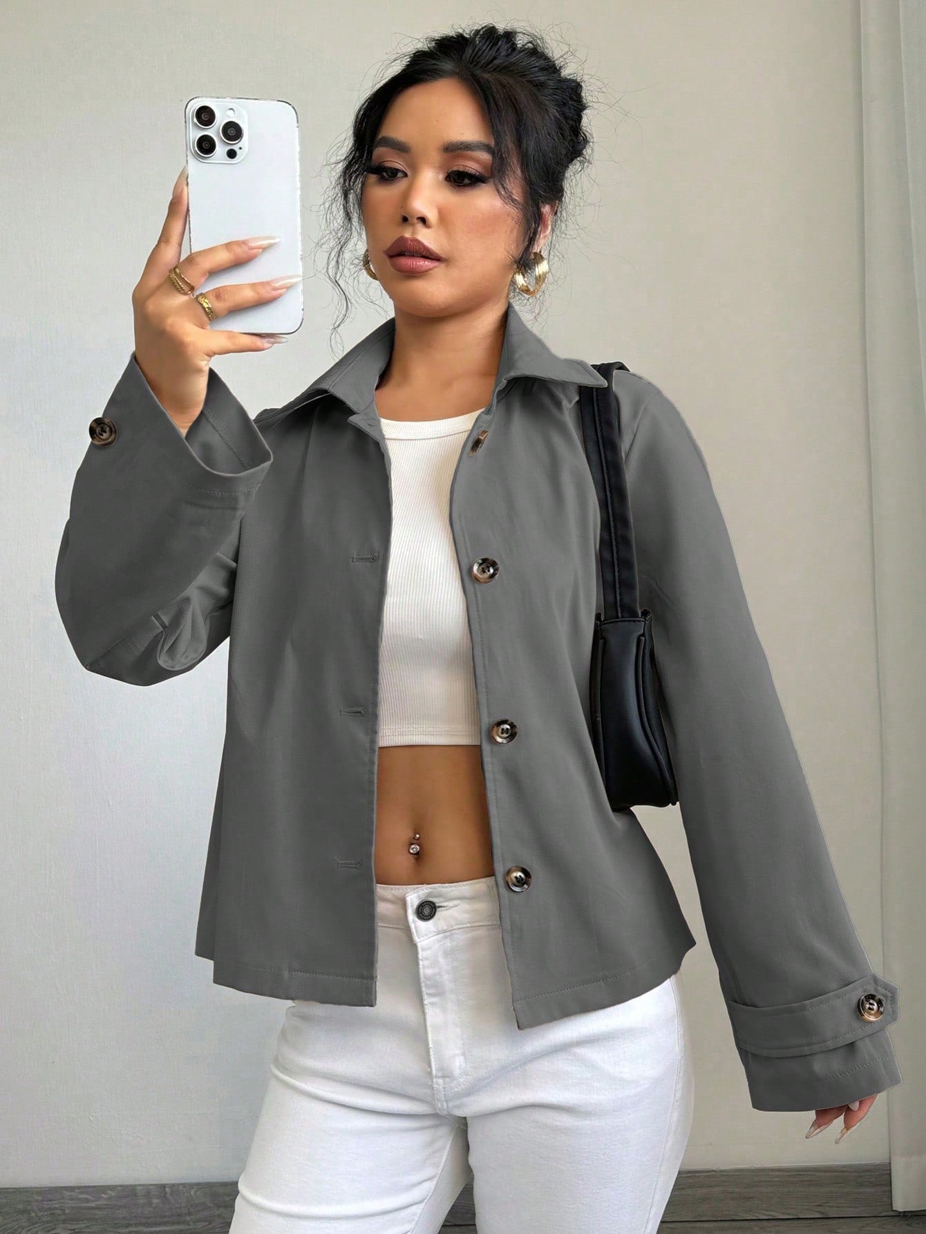 معطف ترنش قصير فضفاض بتصميم مستقيم للنساء من Chiquease