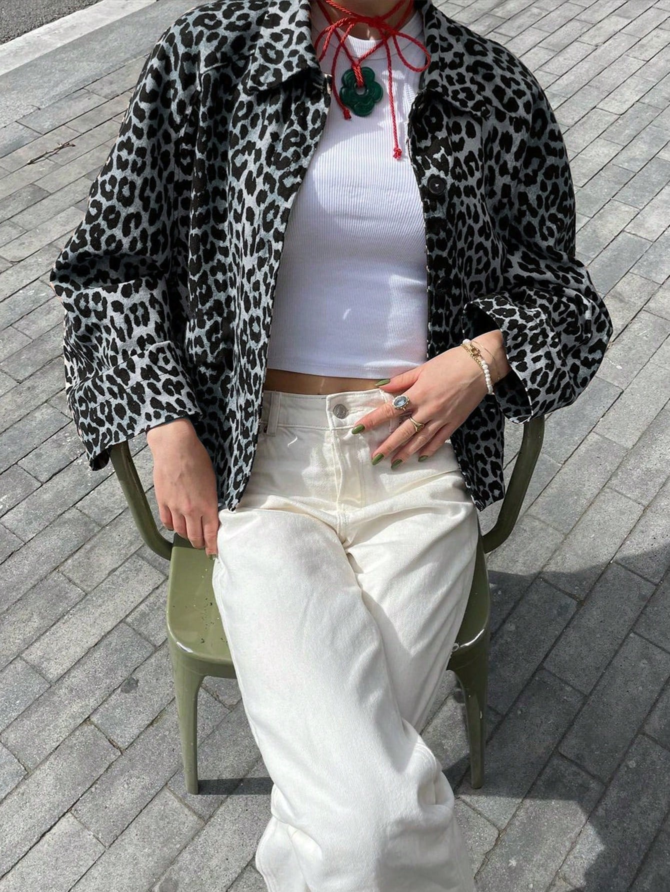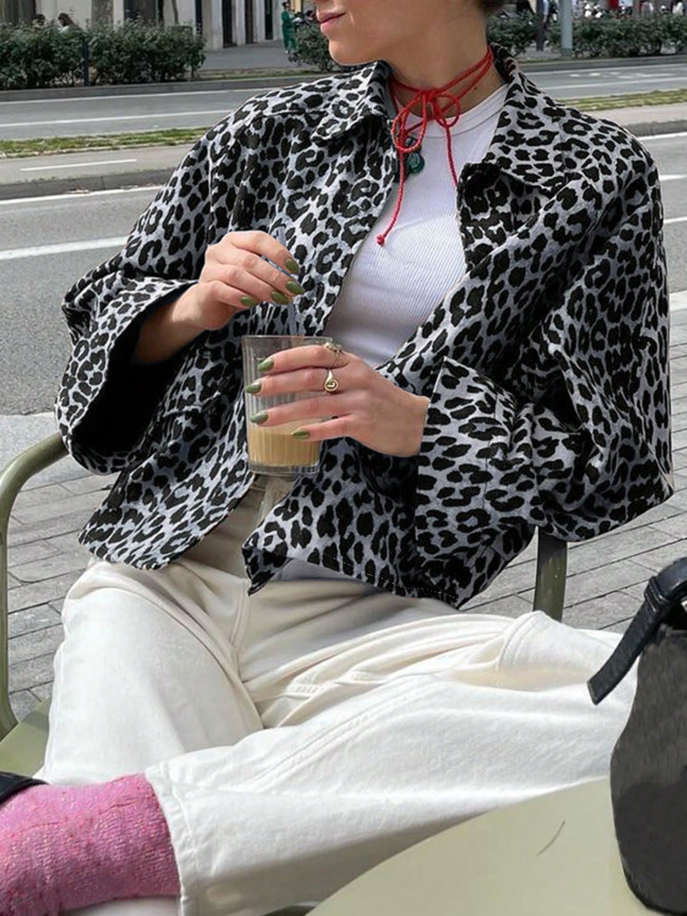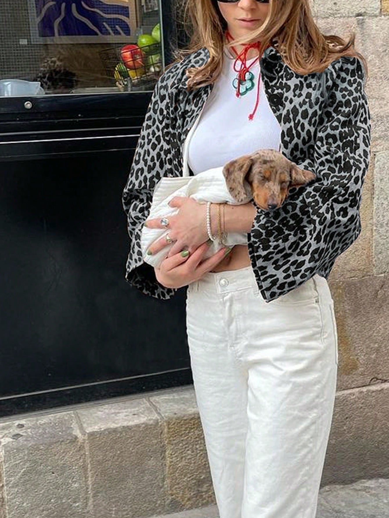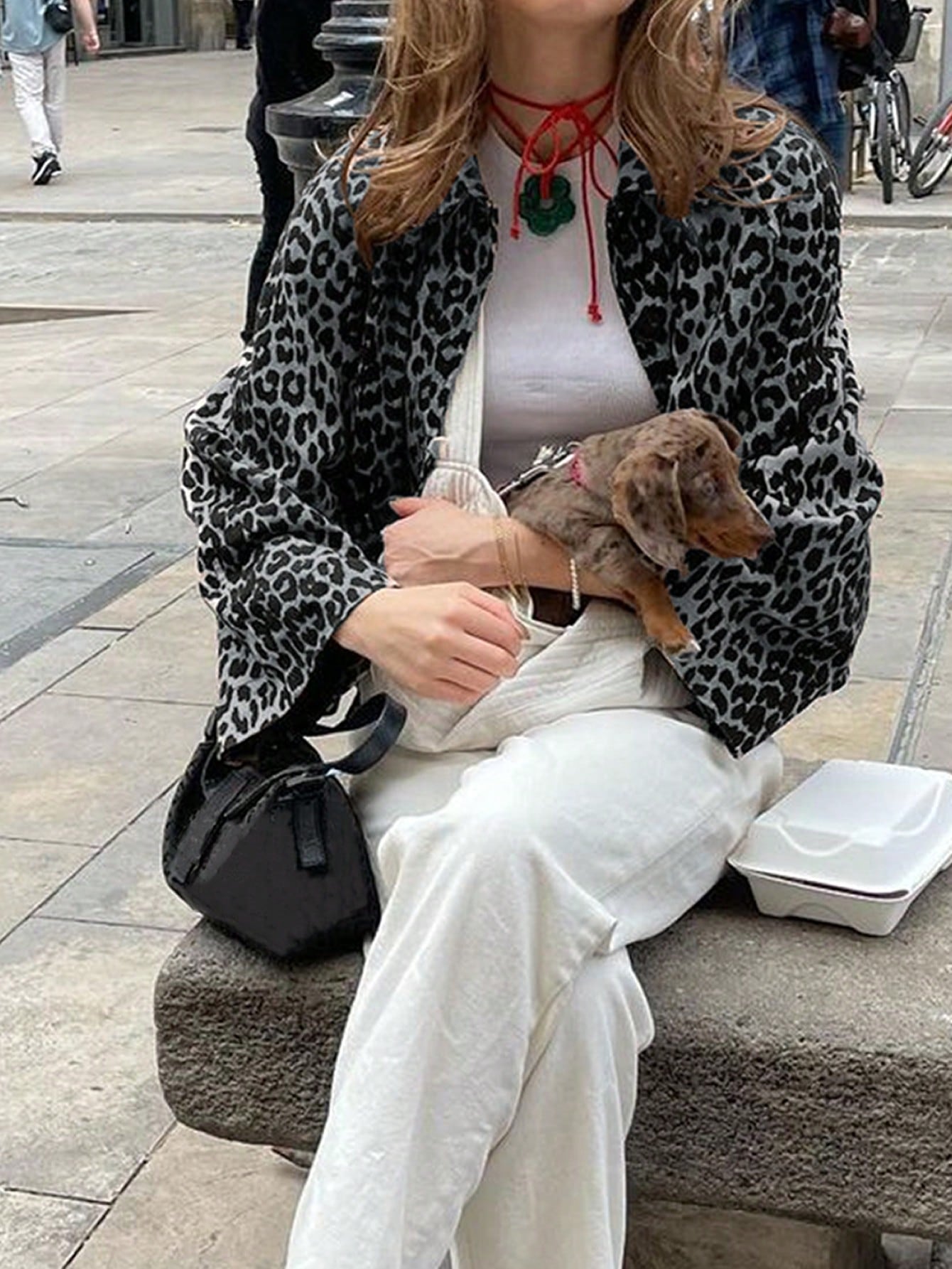 Chiquease Women's Open Front Long Sleeve Fashionable Leopard Print Street Style Jacket