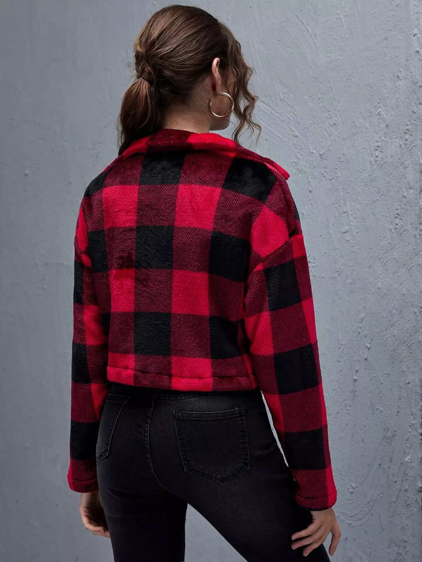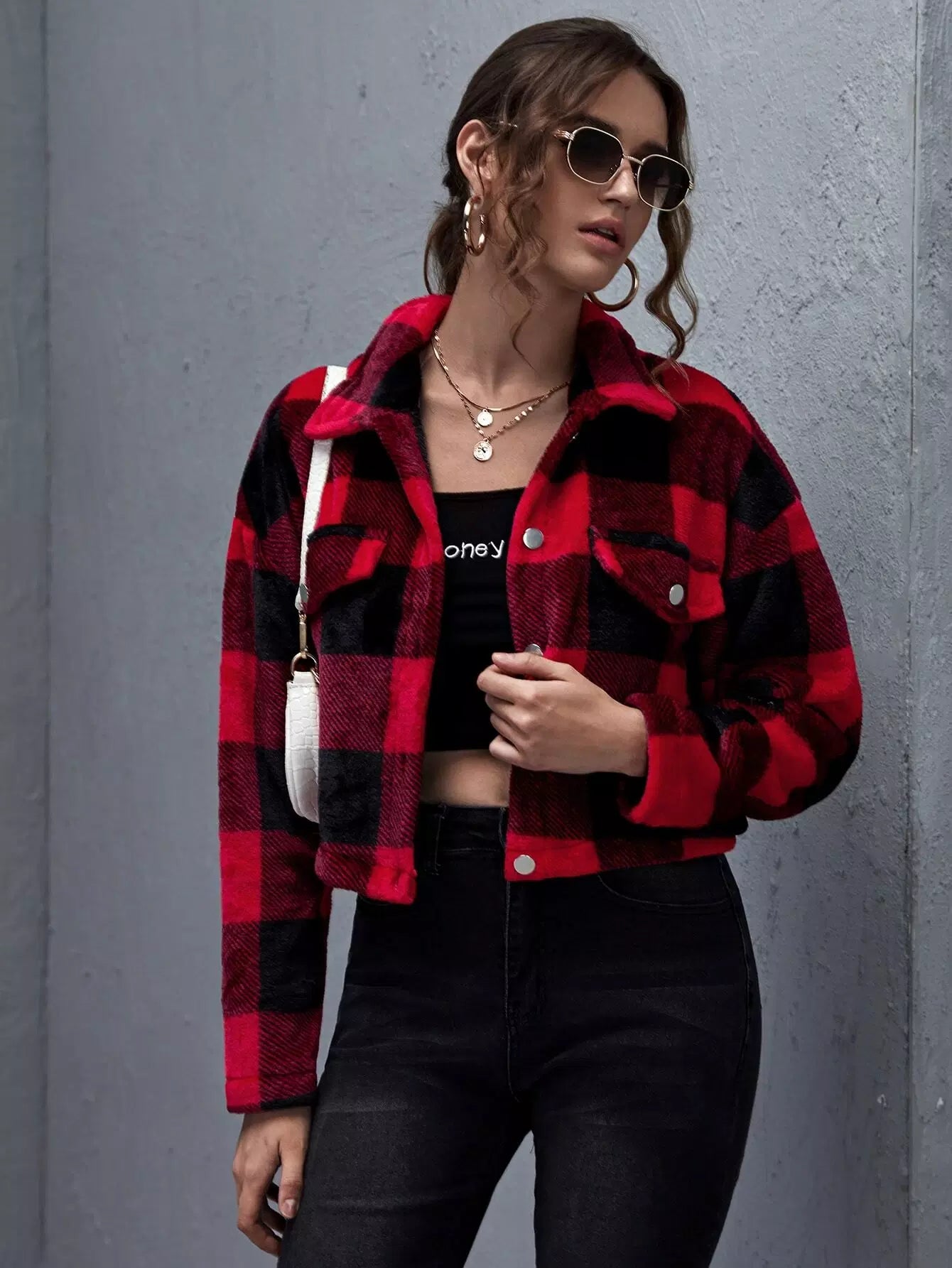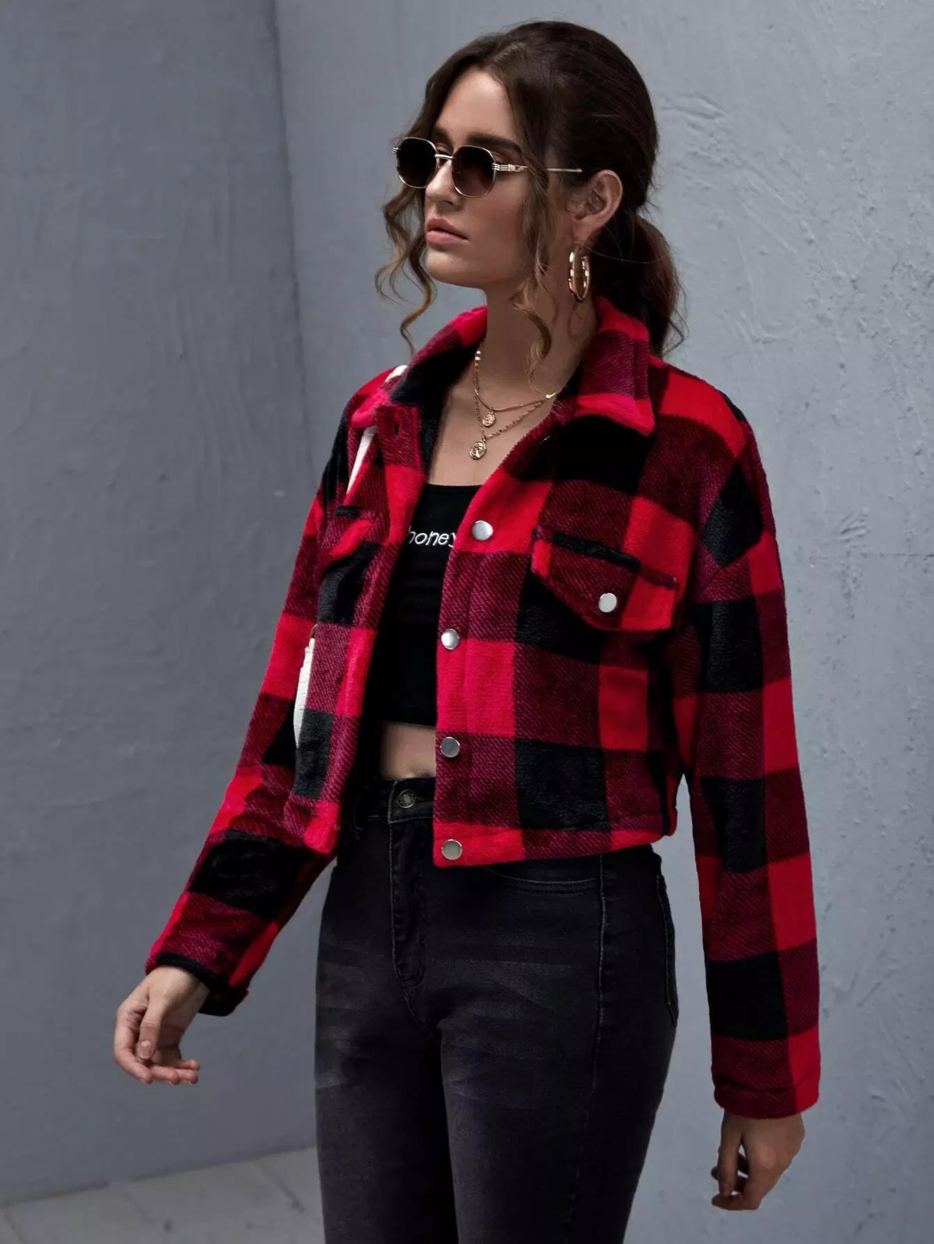 جاكيت بياقة بأزرار أمامية منقوشة بأزرار منقوشة من جلد الجاموس