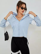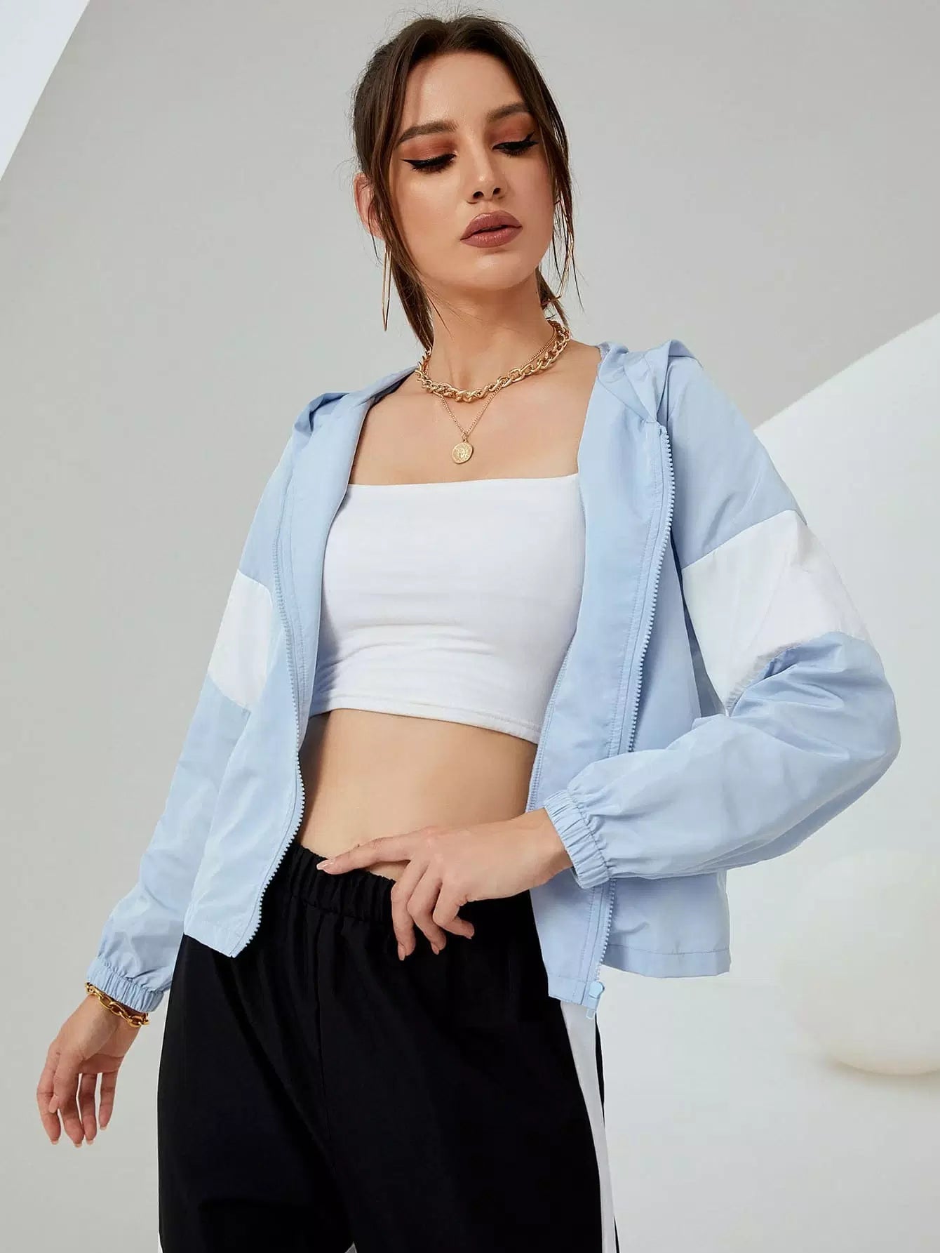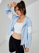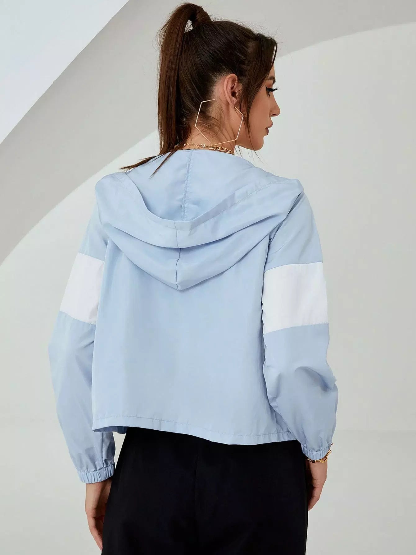 جاكيت بغطاء بلون مغاير بسحّاب بغطاء رأس بلون مغاير