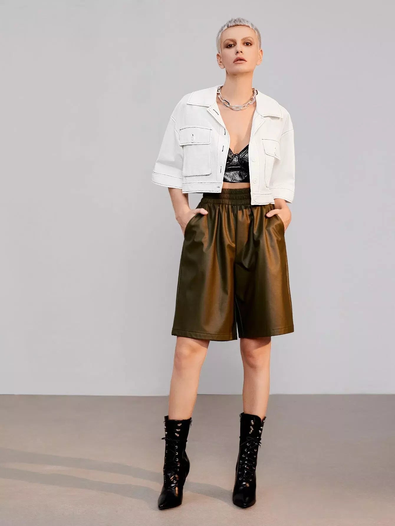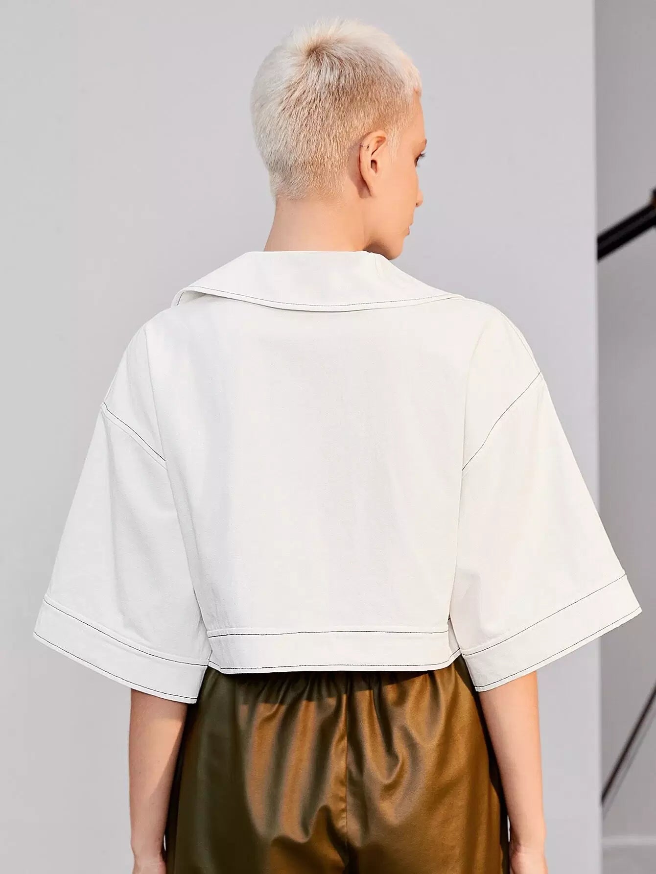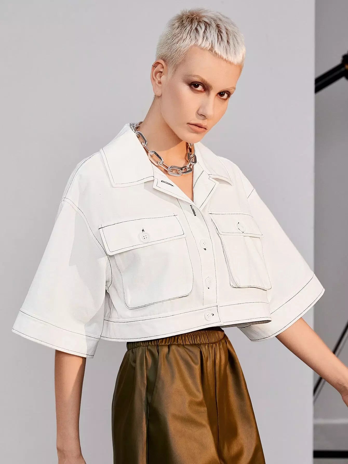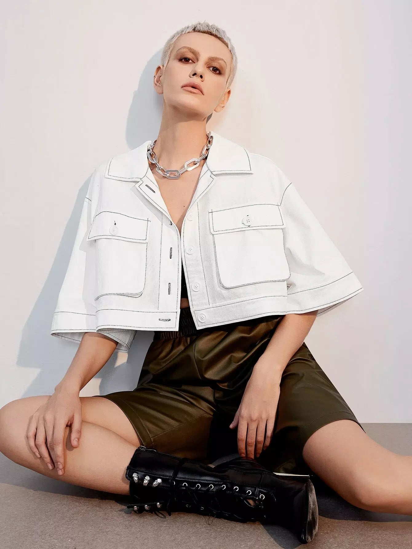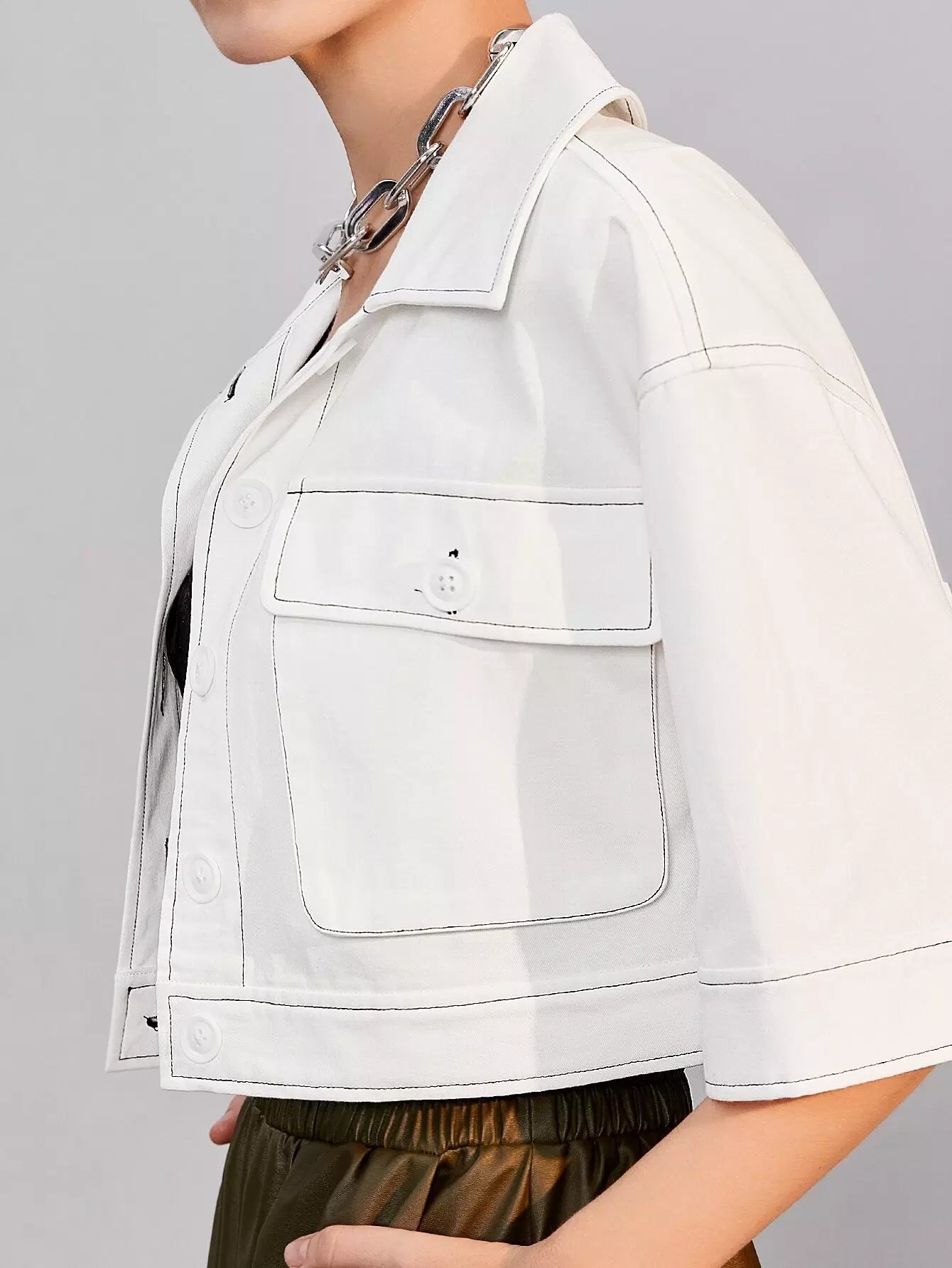 سترة قصيرة بخياطة متباينة وجيب خلفي
