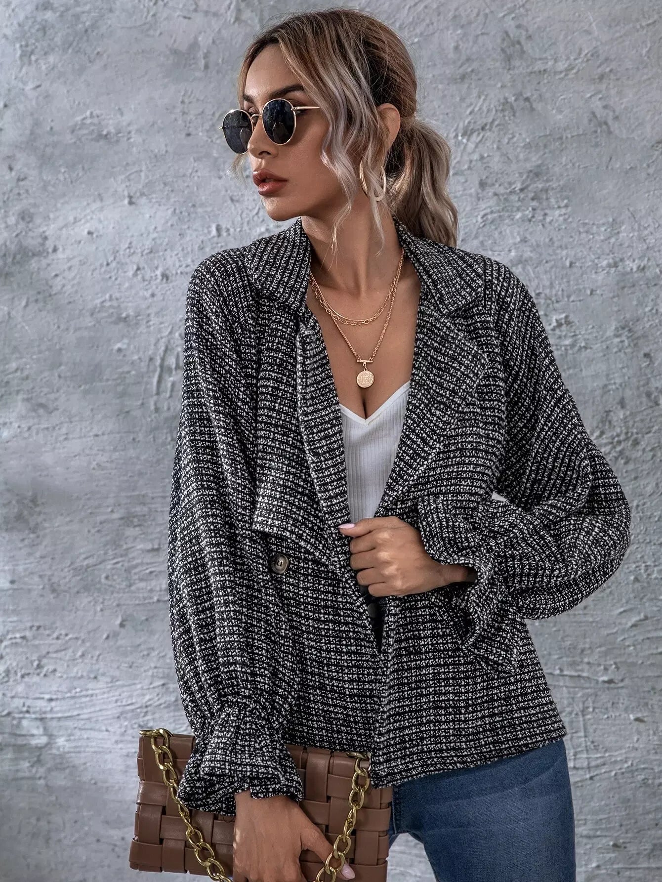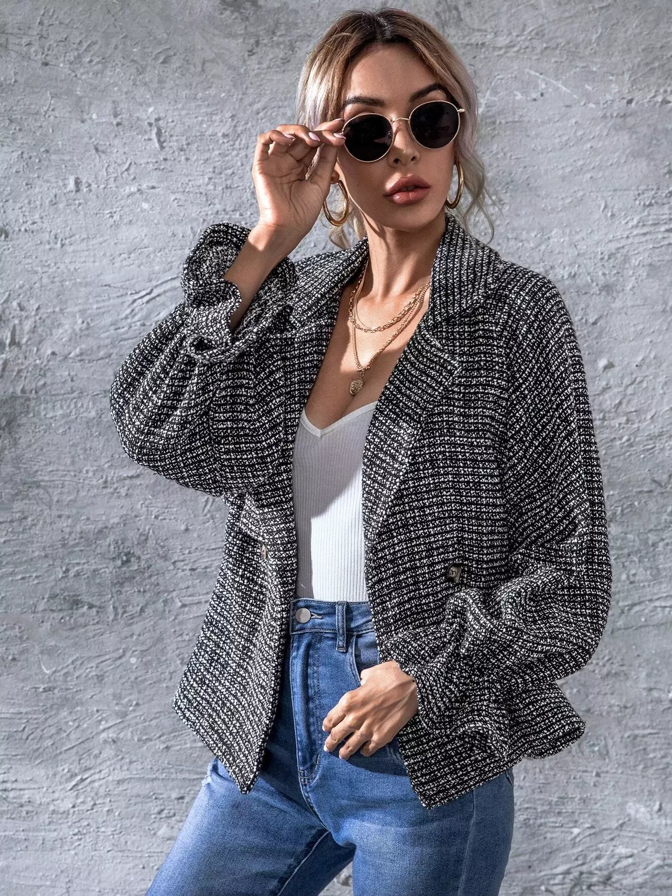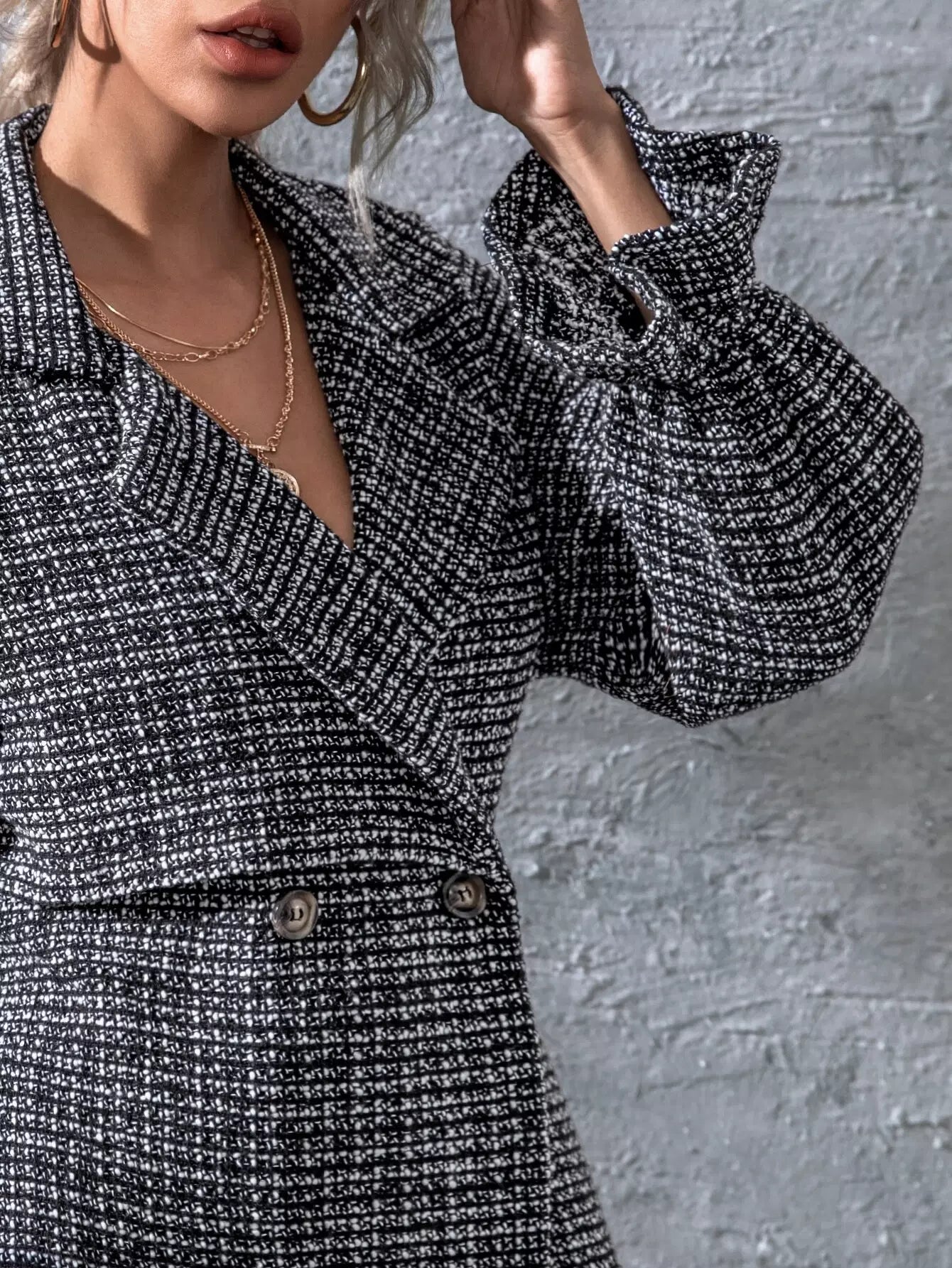 جاكيت تويد بأكمام بأزرار مزدوجة بأزرار مزدوجة