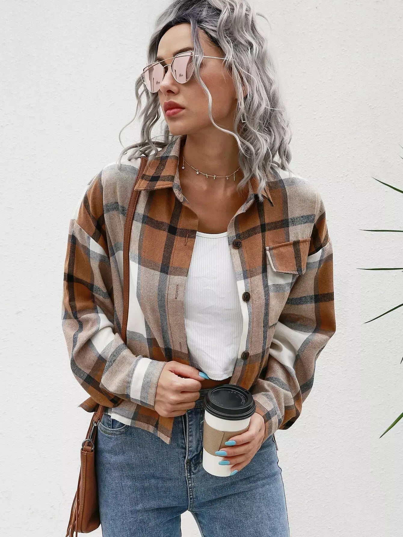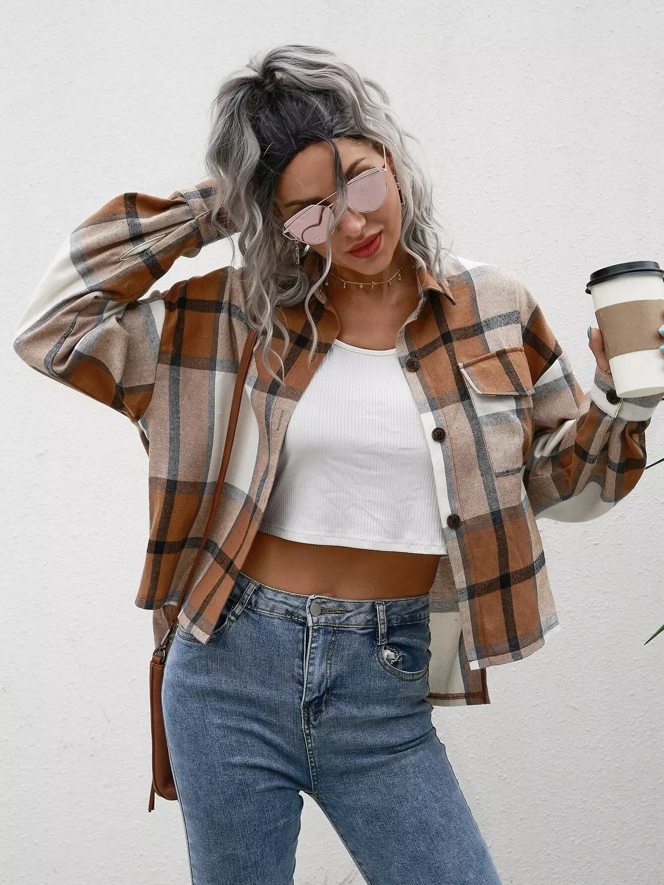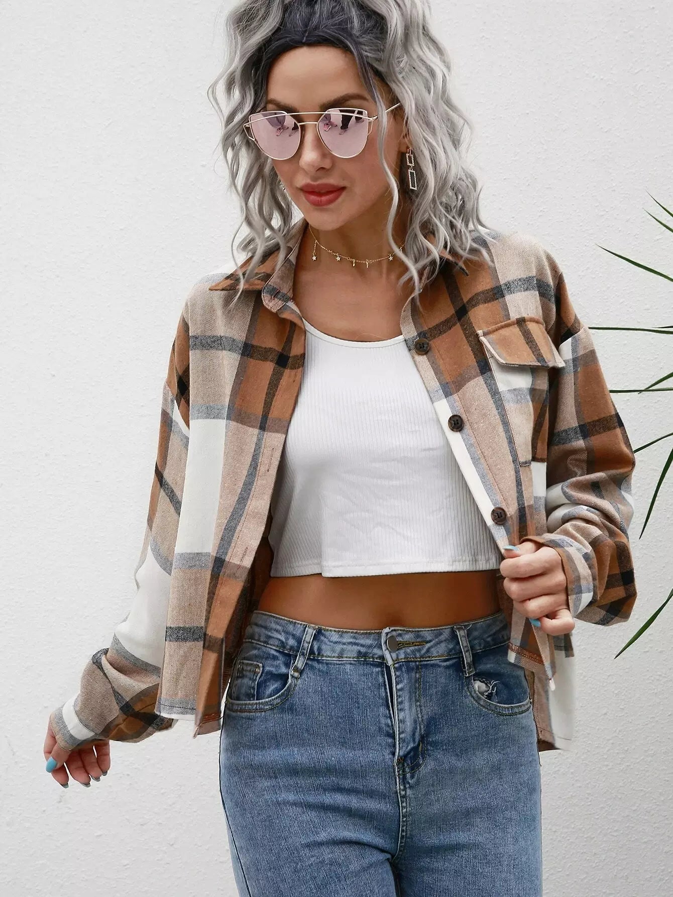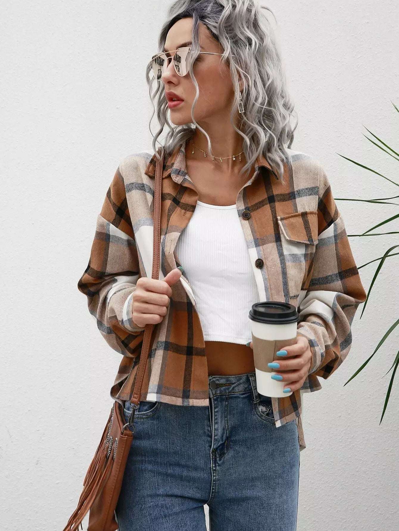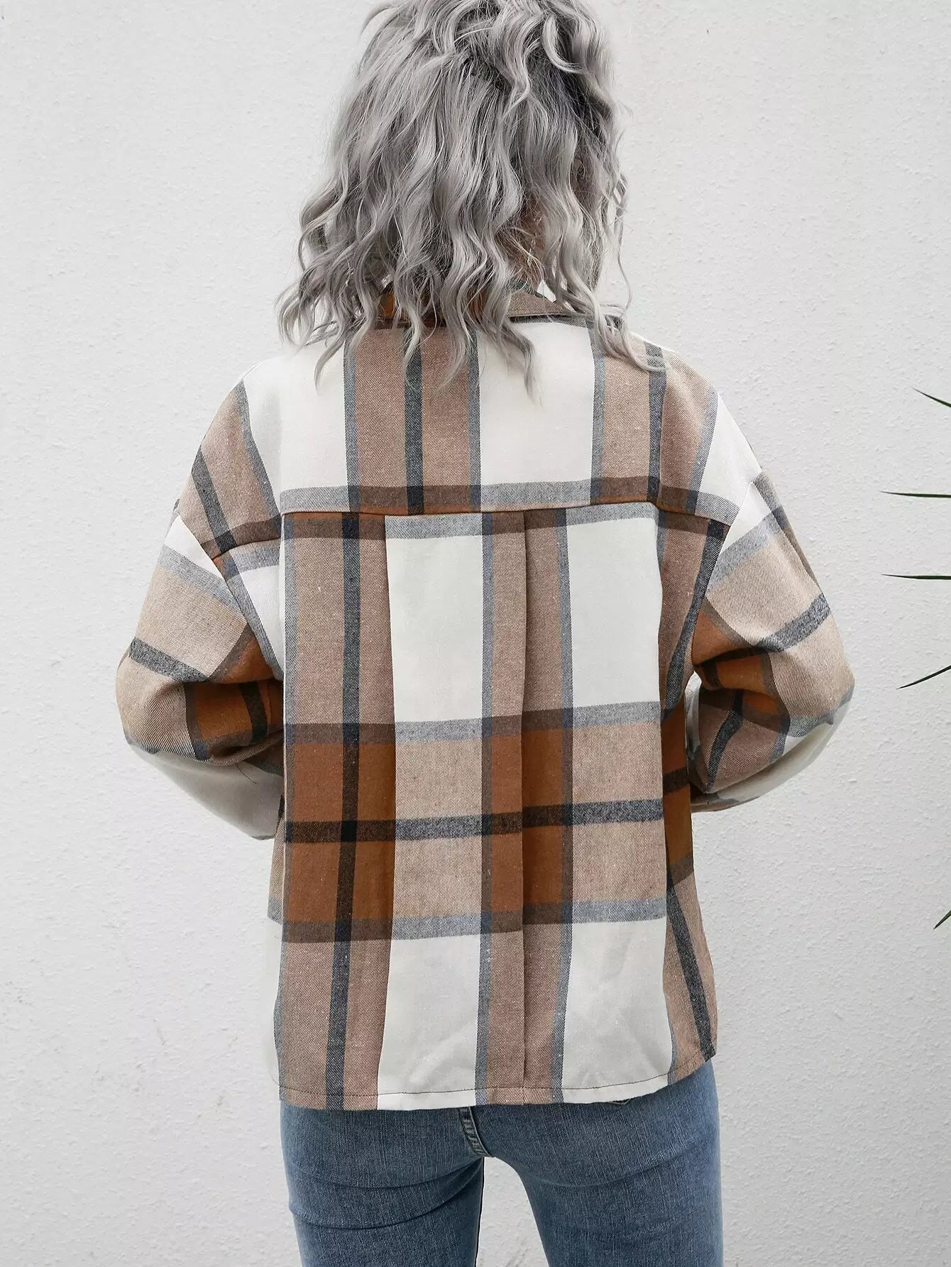 جاكيت منسدل الكتفين بأزرار أمامية منقوشة بأزرار