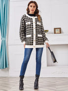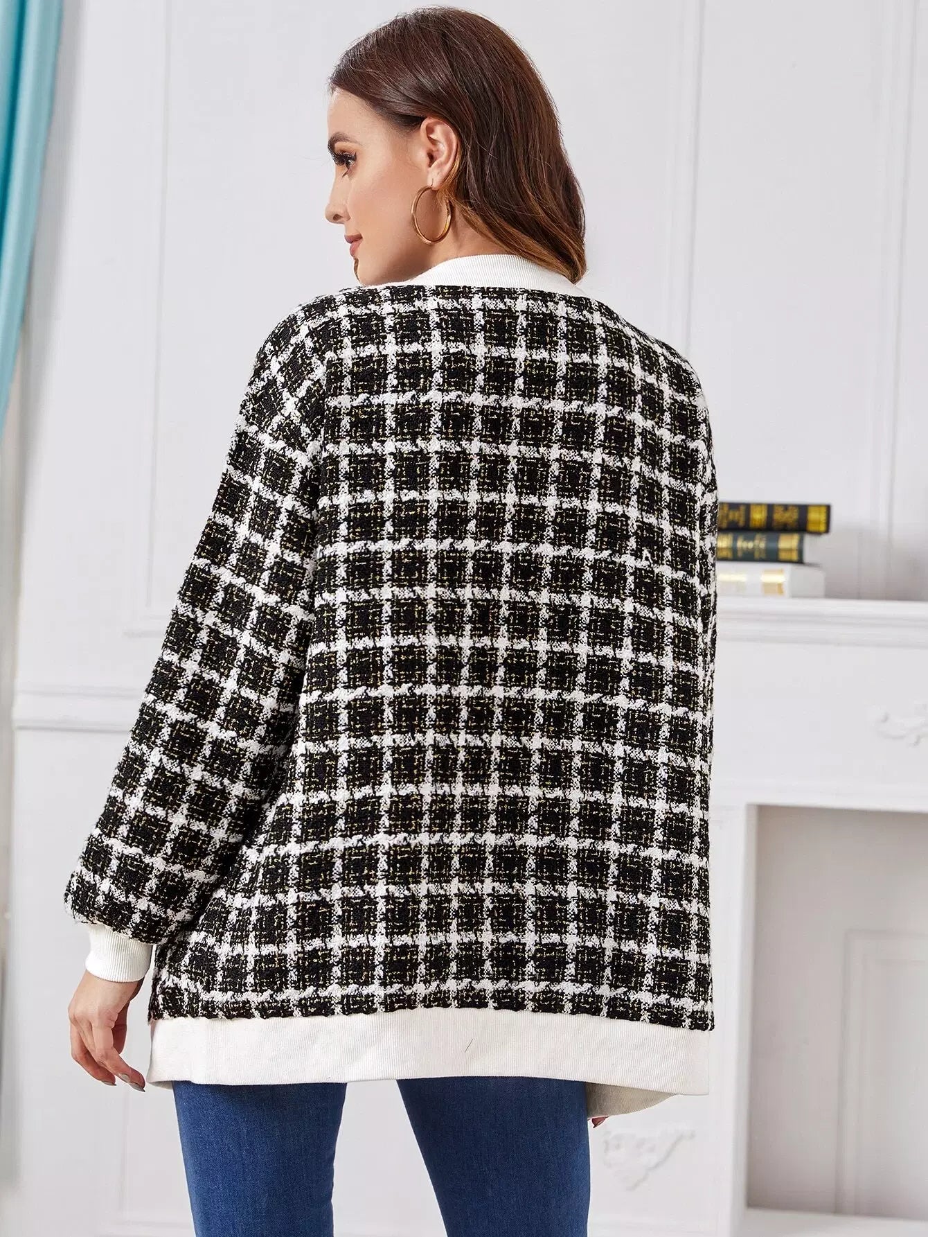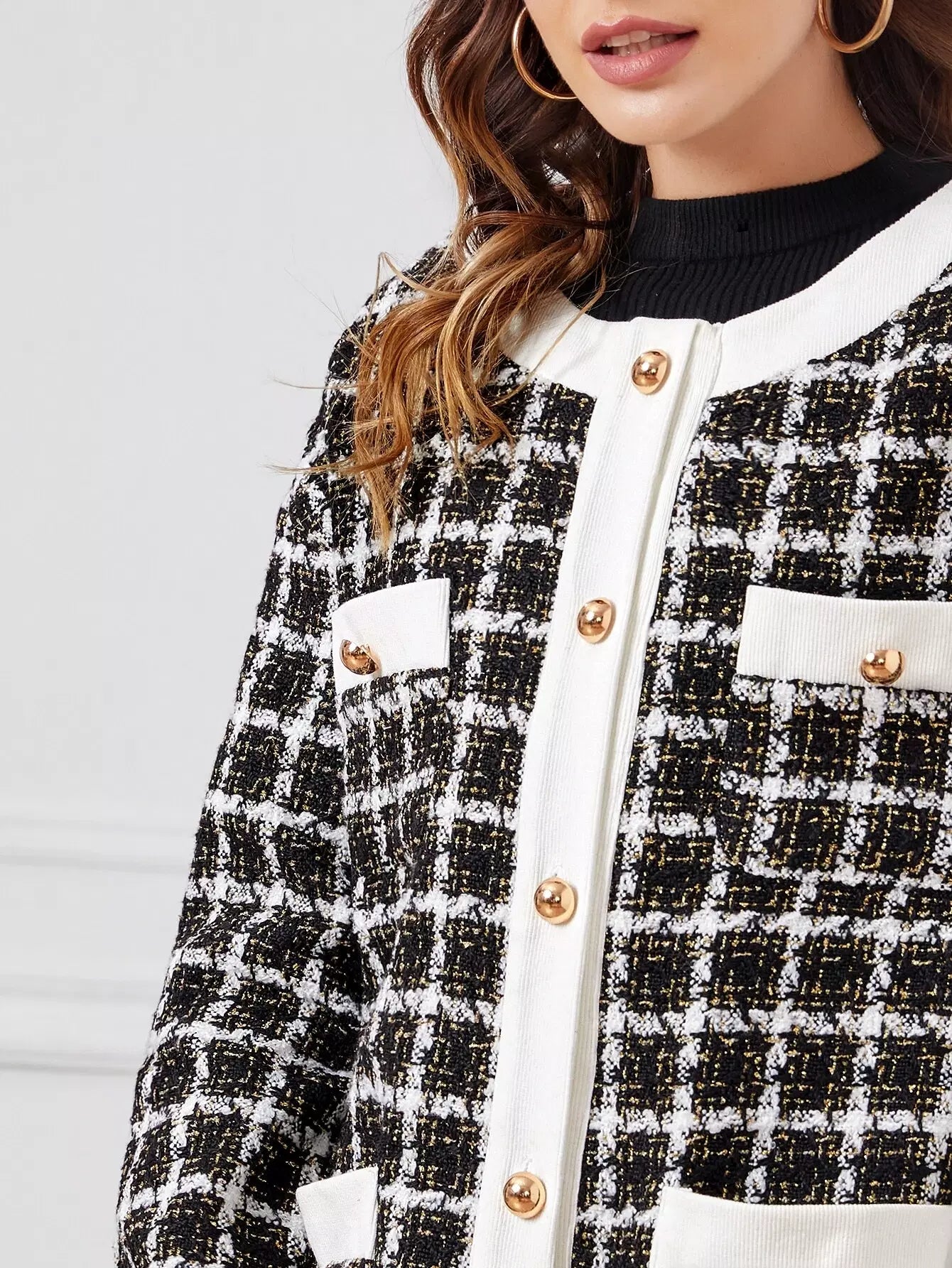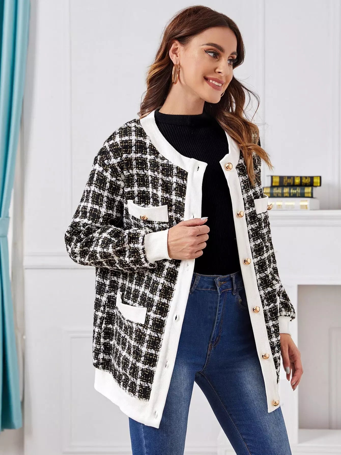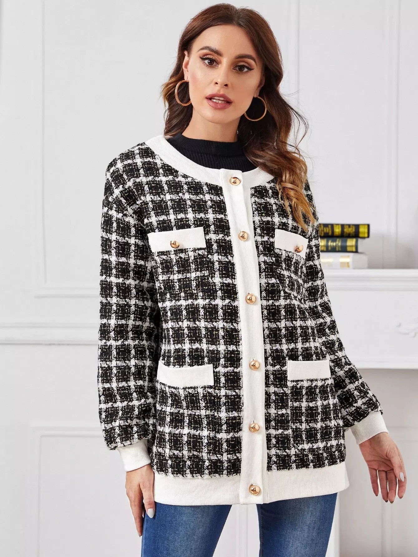 سترة تويد منقوشة بأزرار وأكتاف منسدلة
