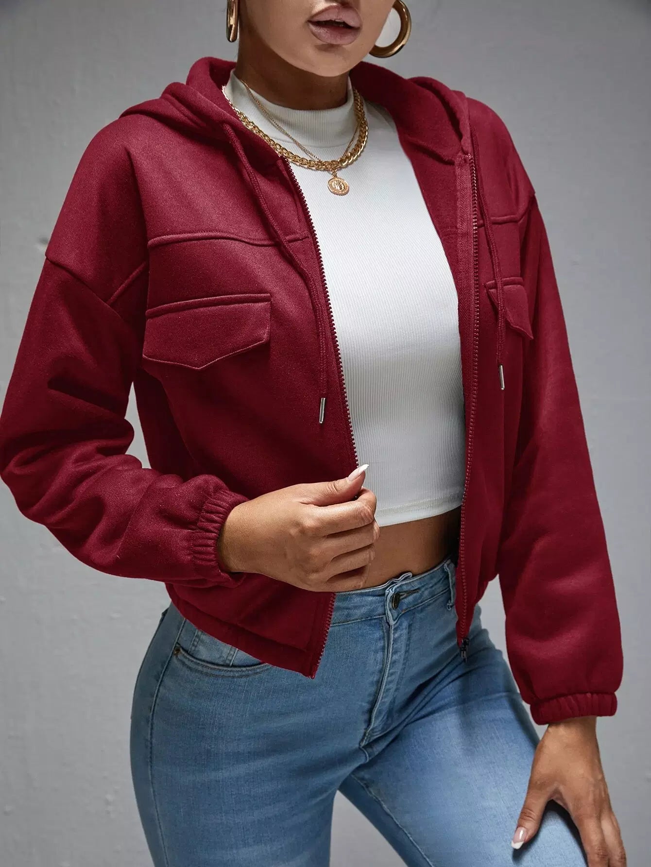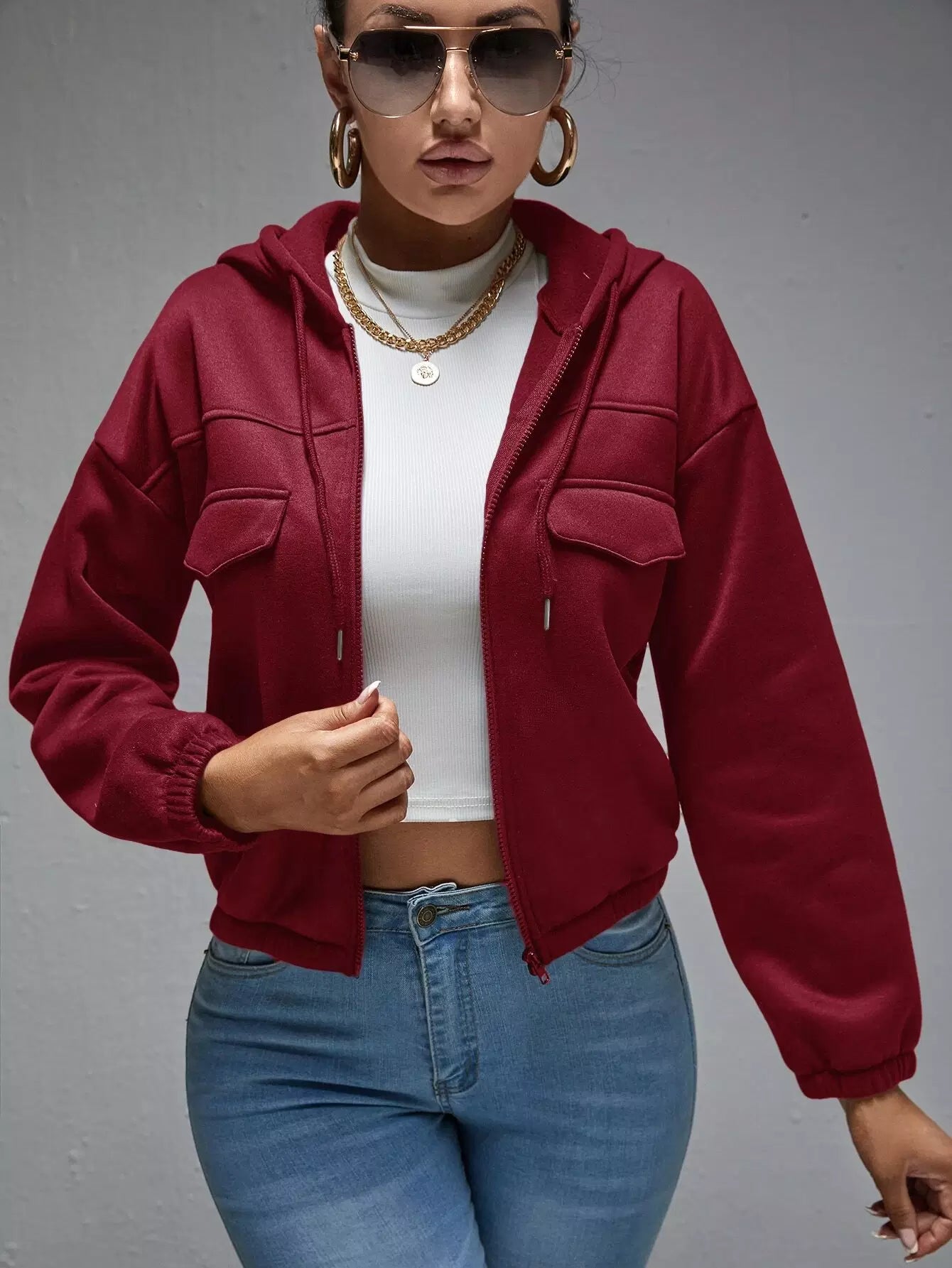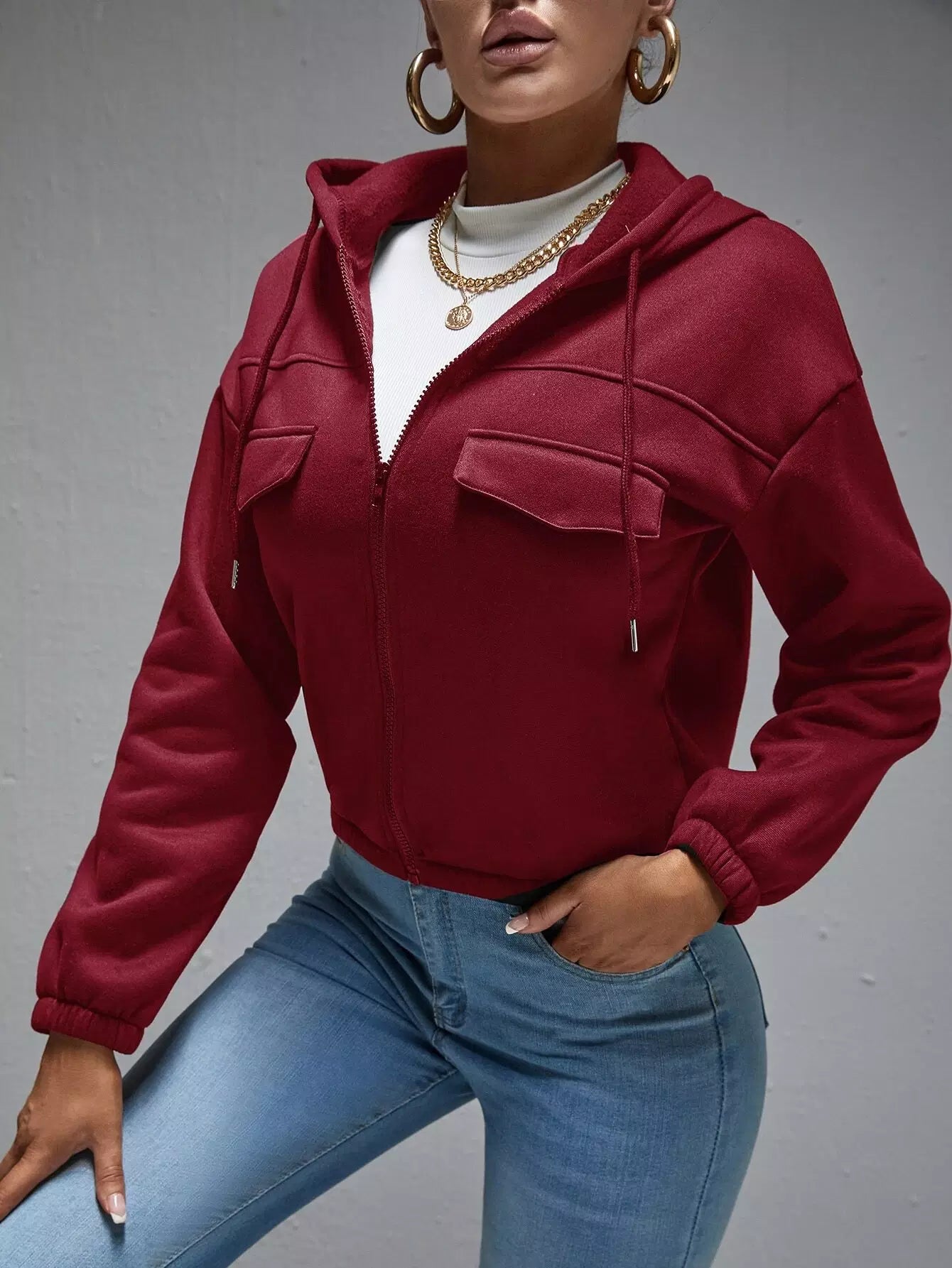 جاكيت بغطاء رأس وسحّاب ورباط وتفاصيل غطاء الرأس