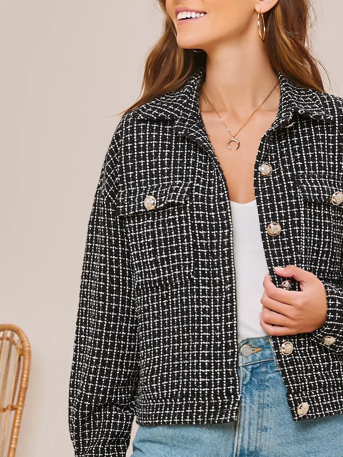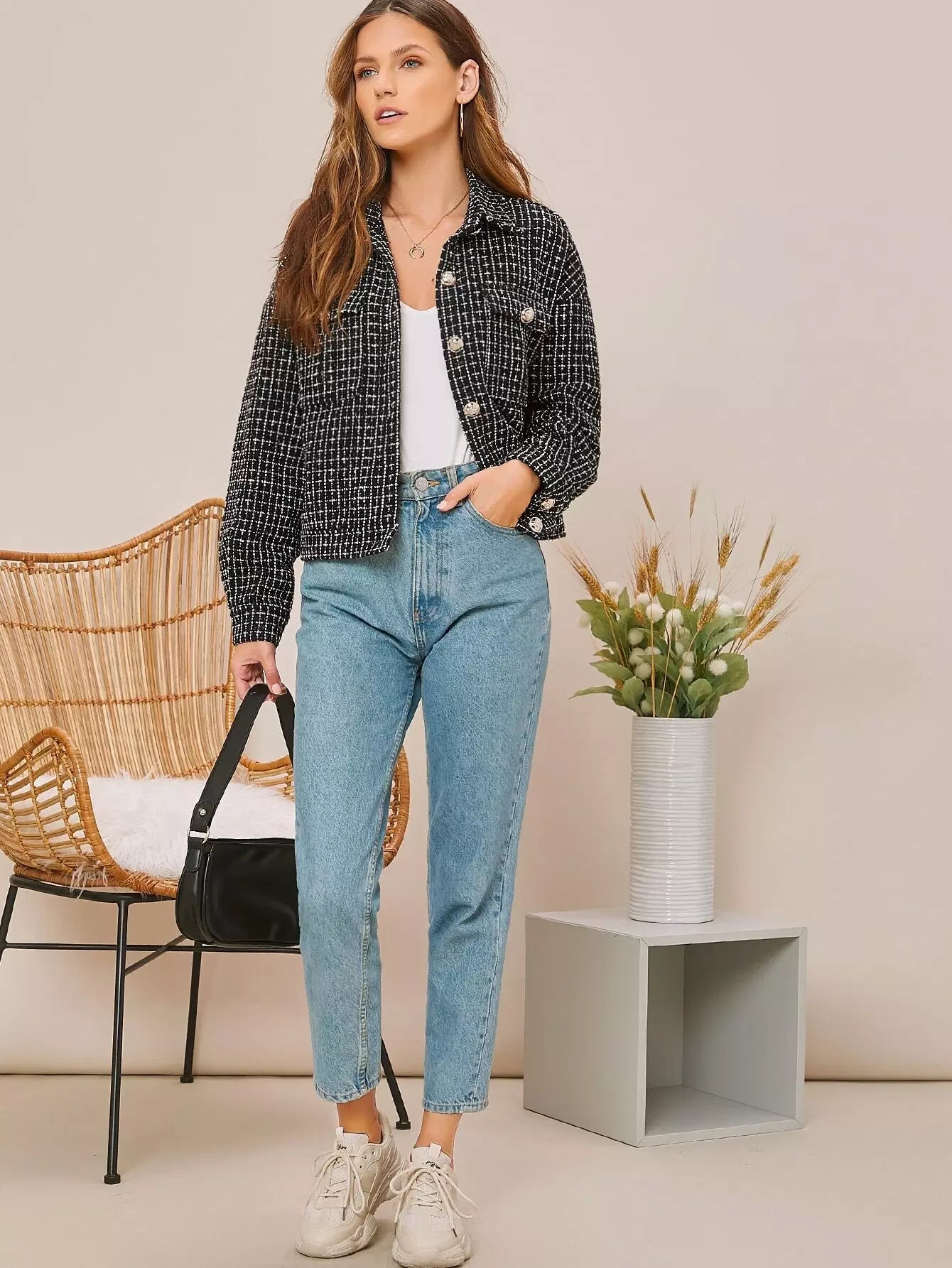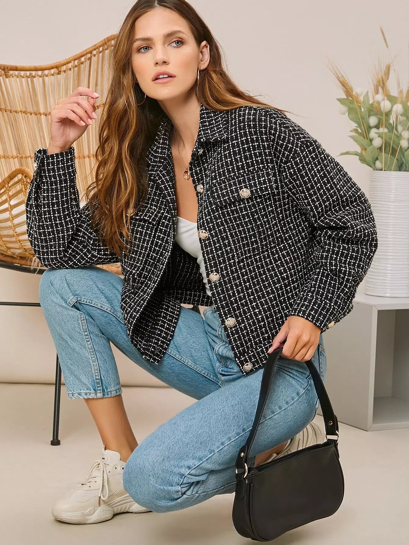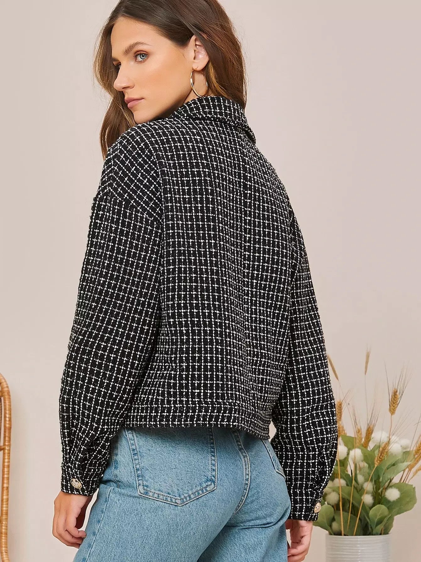 جاكيت من التويد بجيب بغطاء جيب بأزرار أمامي بأزرار