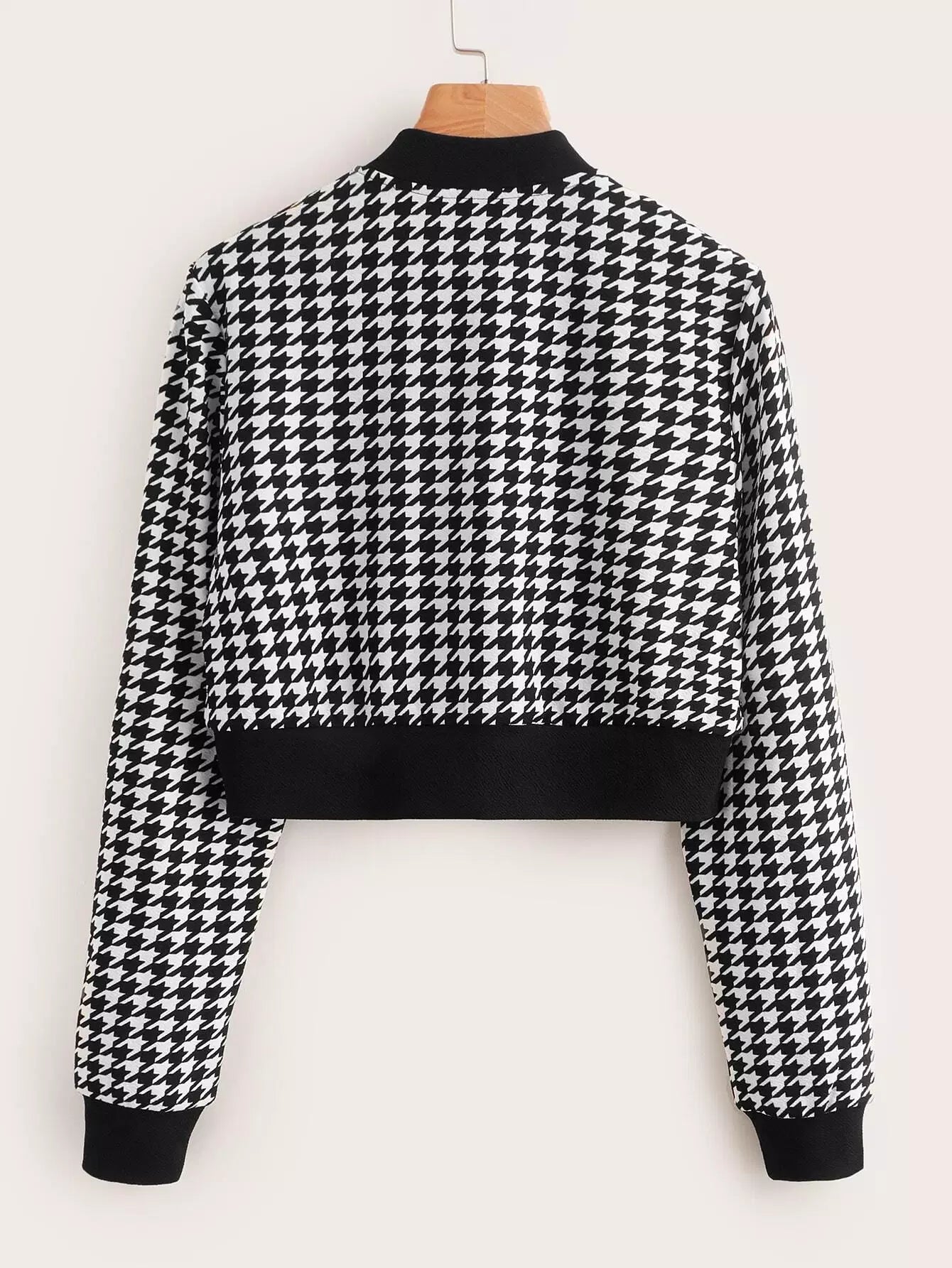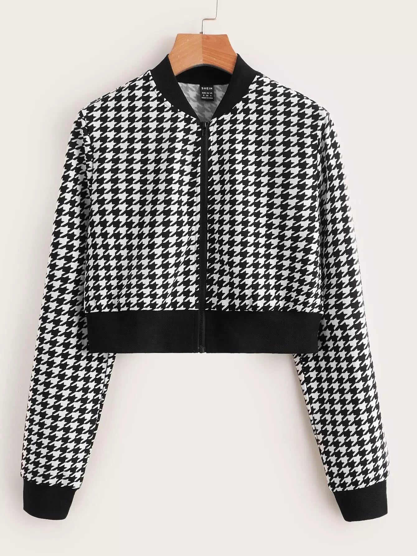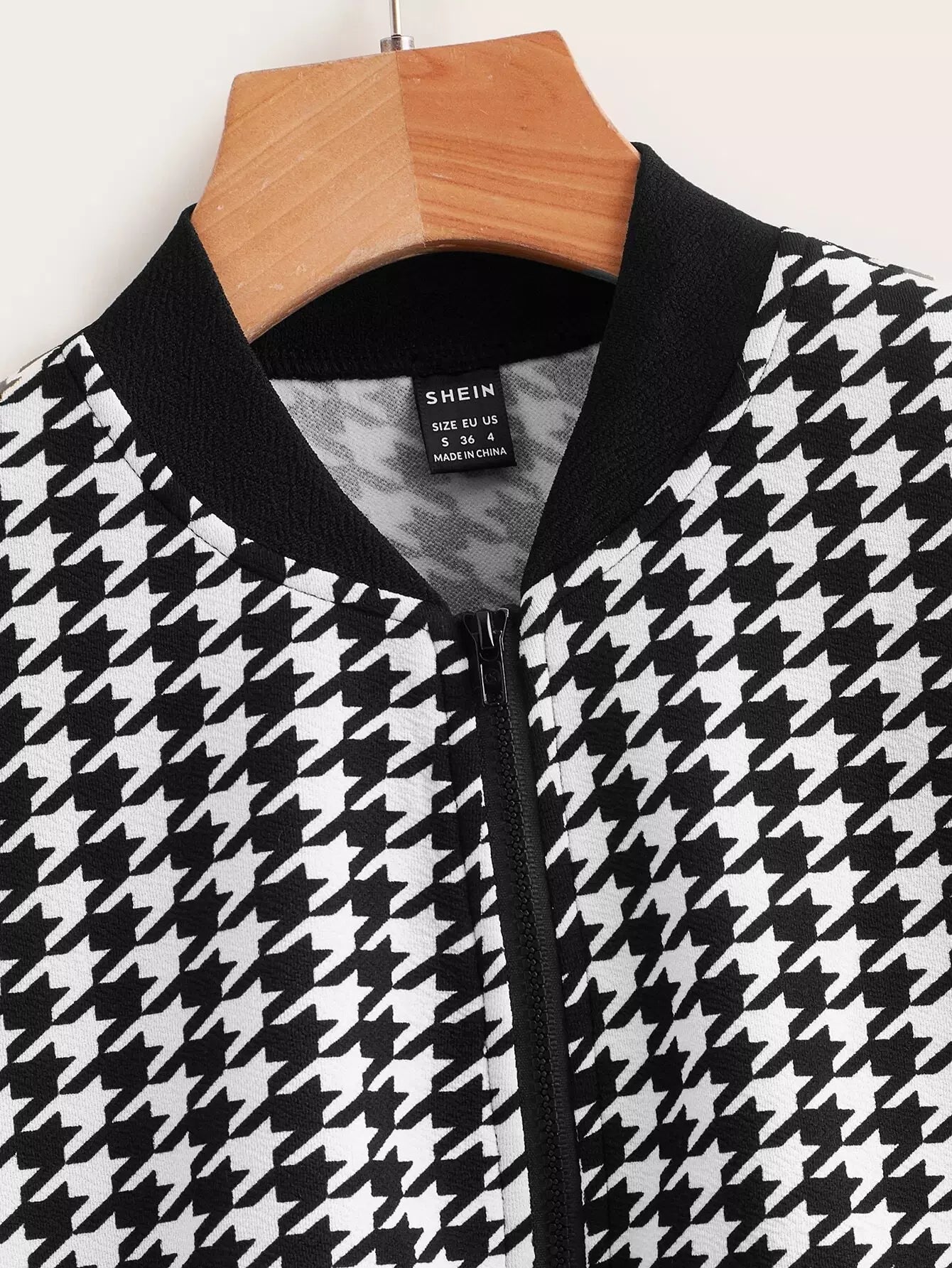 جاكيت بومبر بنقشة هاوندستوث مطبوع عليه سحاب