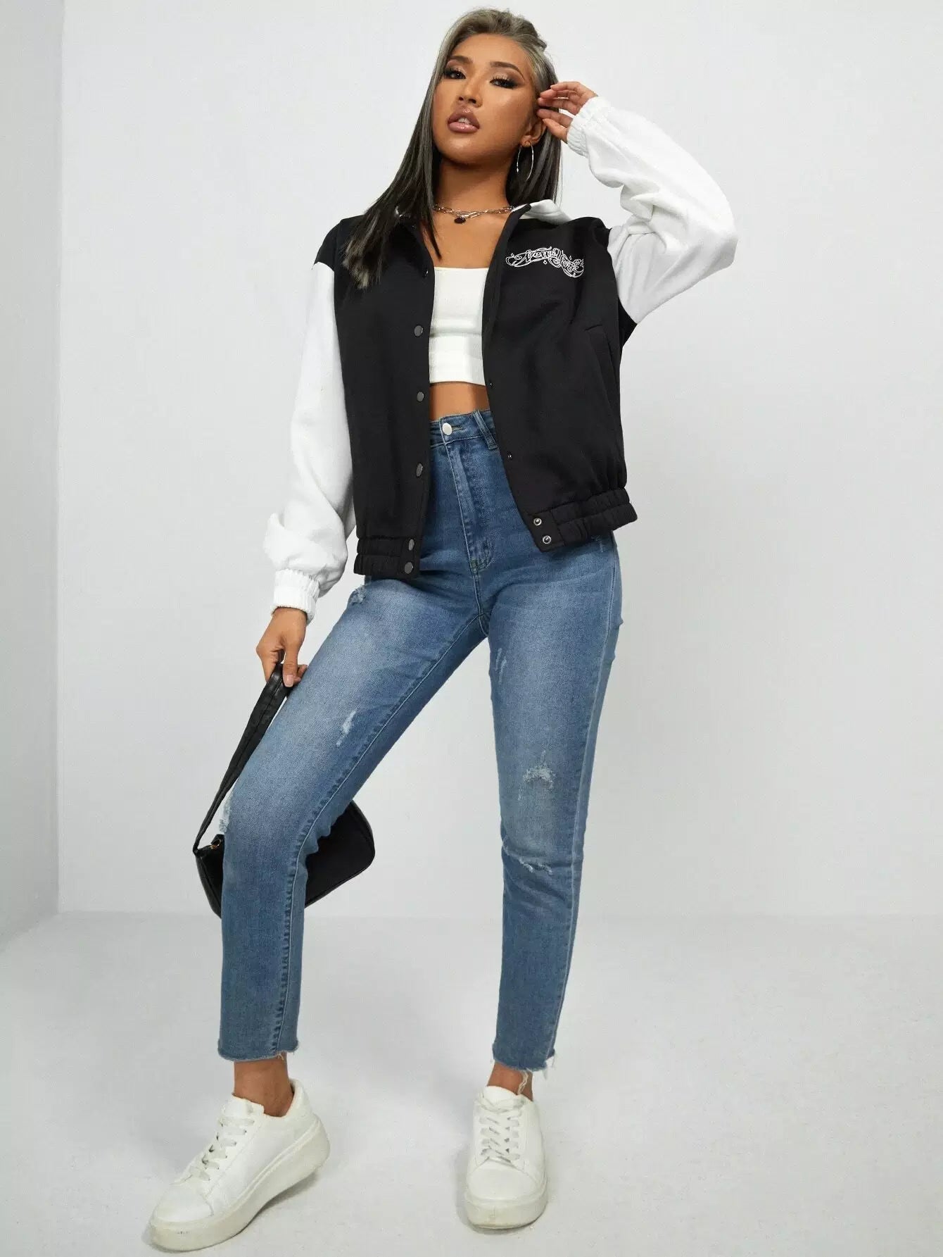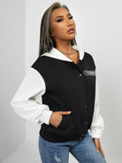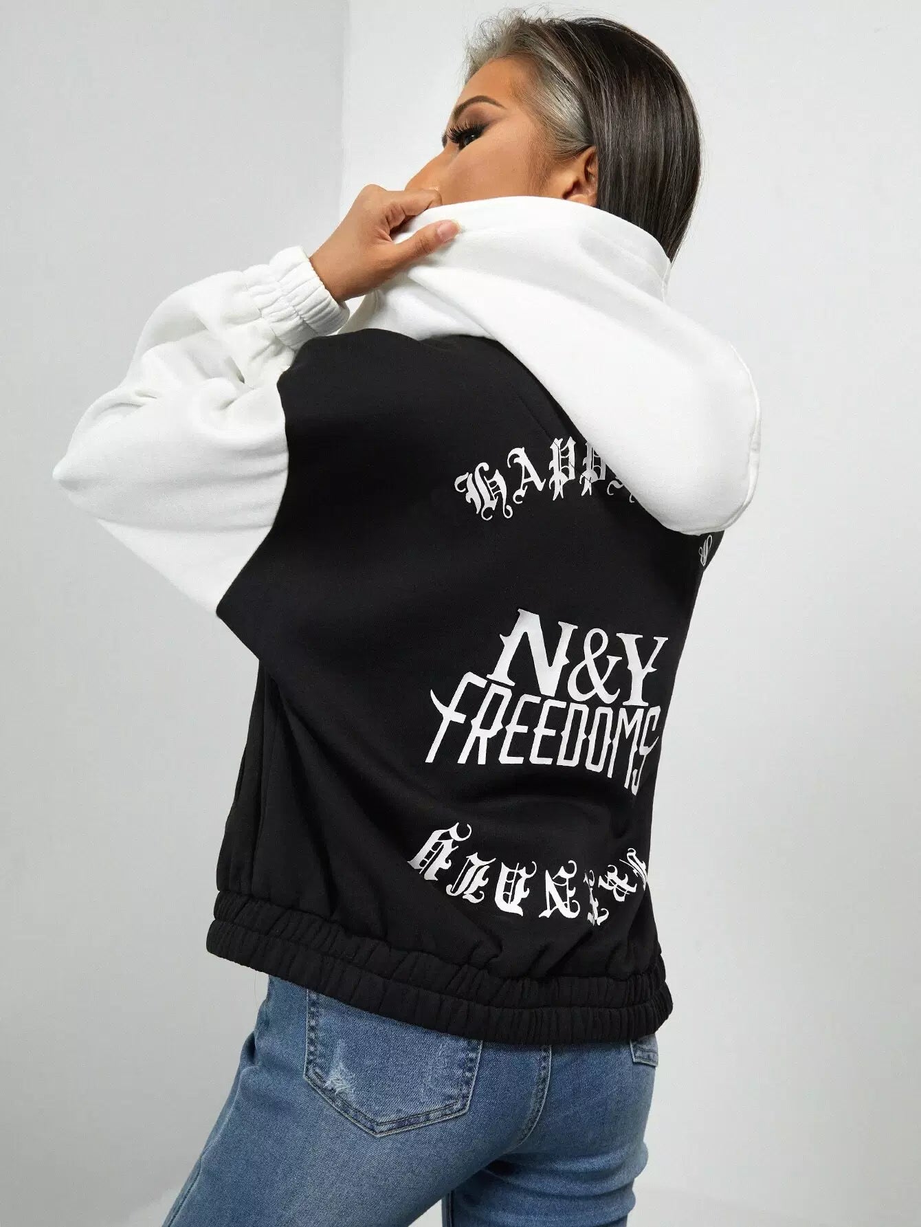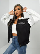 سترة بغطاء رأس برسومات الحروف ثنائية اللون