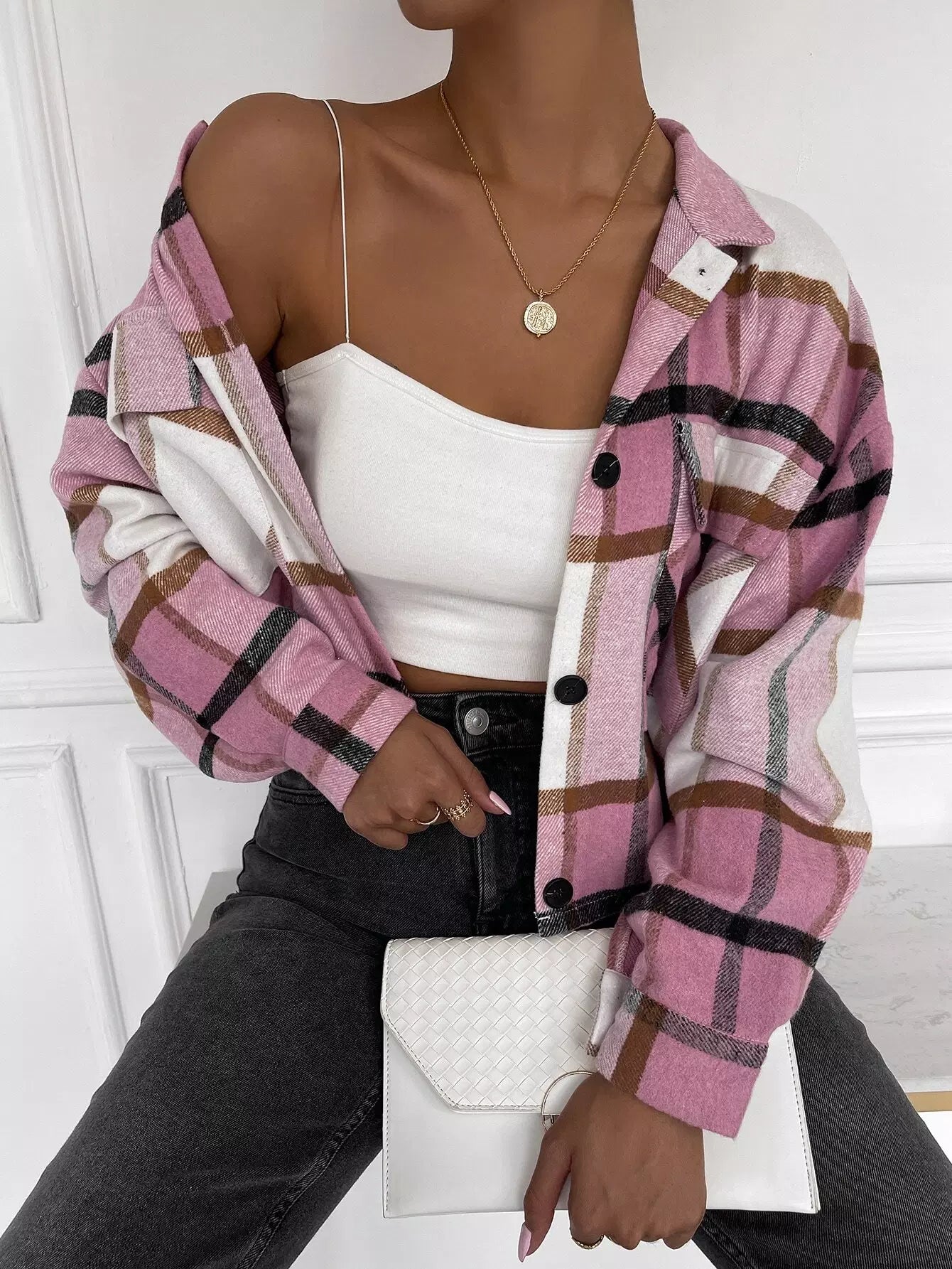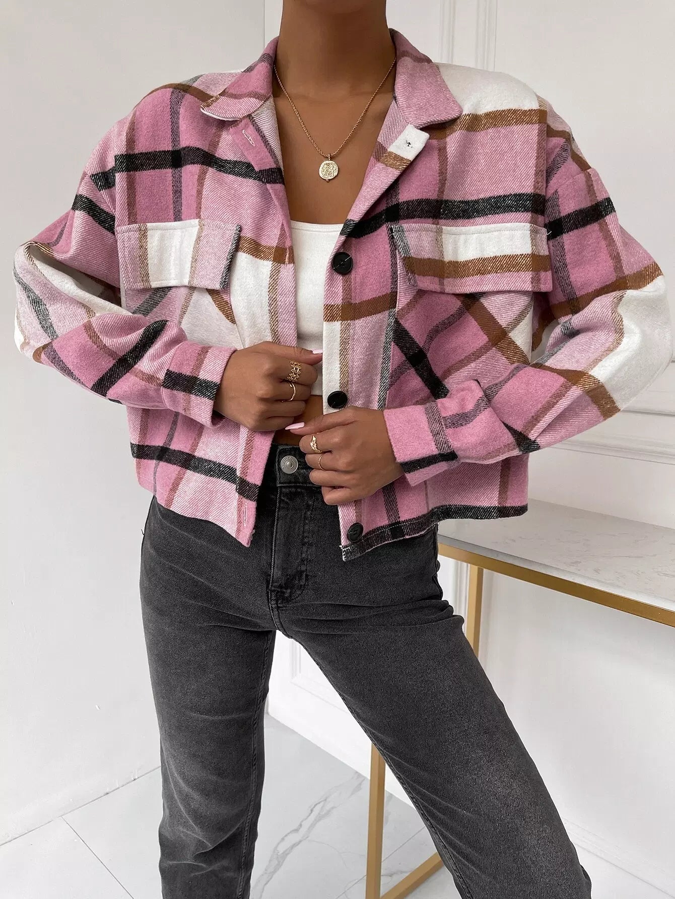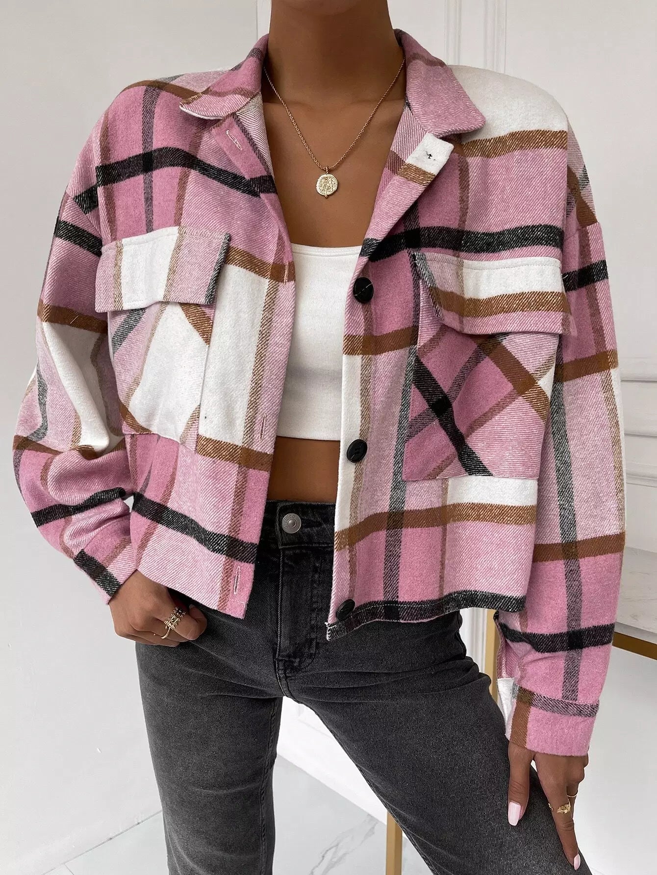جاكيت منقوش منسدل الكتف بجيب منسدل منقوش