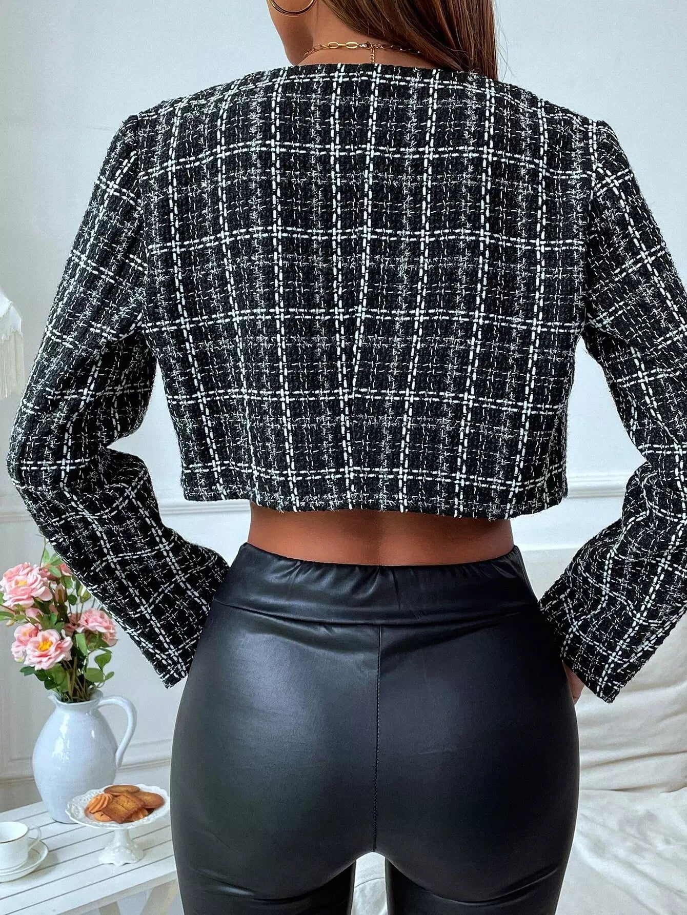 جاكيت تويد بنقشة منقوشة بنقشة من التويد