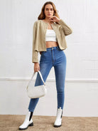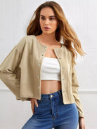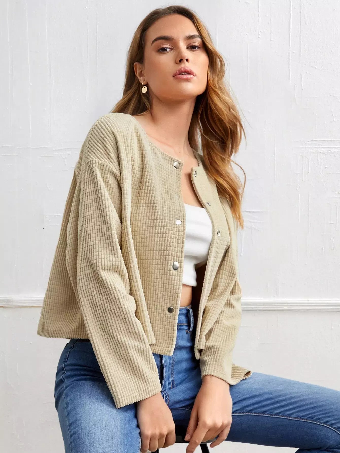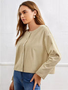سترة سادة منسدلة الكتفين بأزرار أمامية بأزرار متماسكة منفوشة