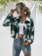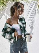 سترة قميص منقوشة بأزرار أمامية من الترتان